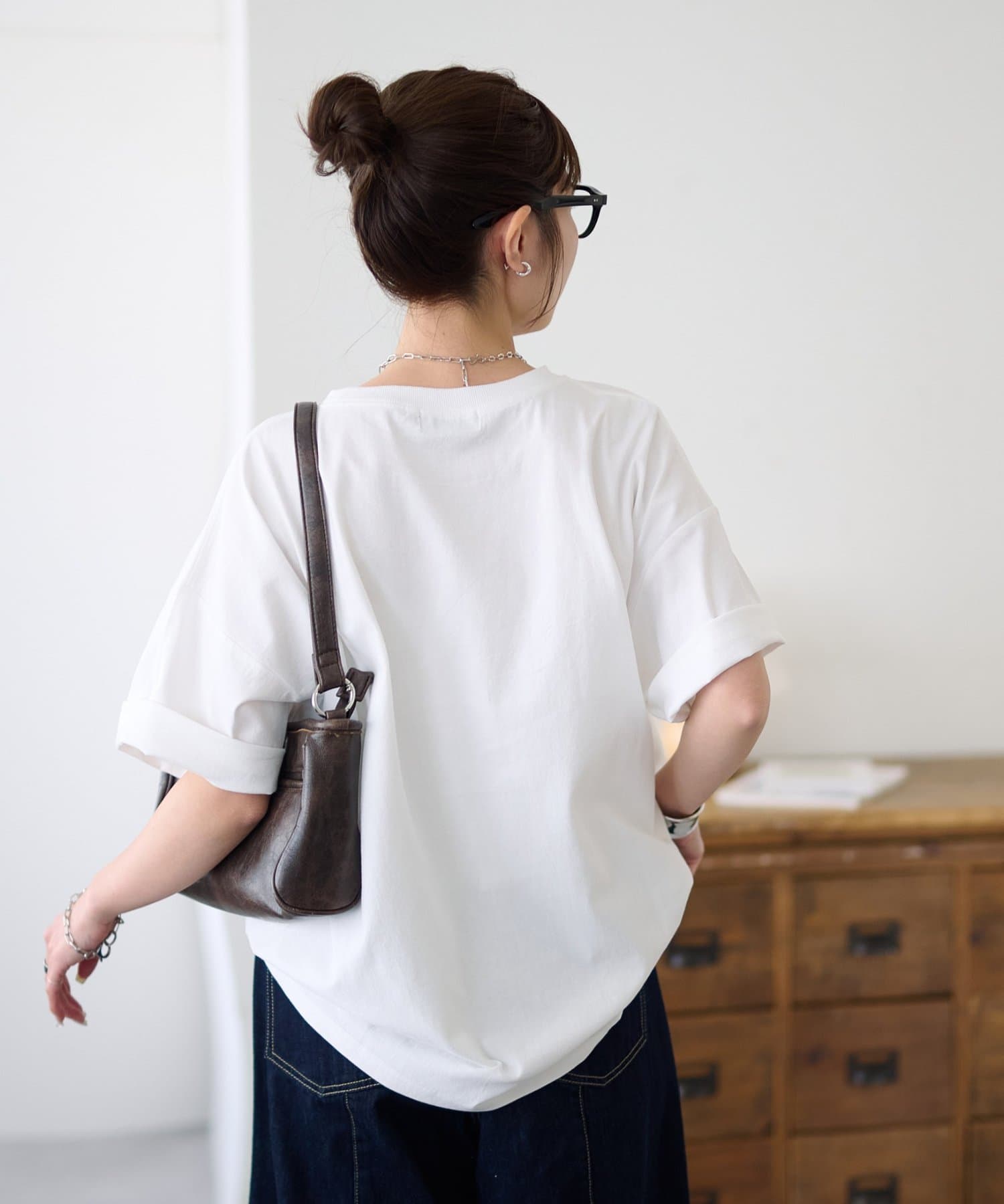 ・ユニセックスのサイズ感なので、アウトスタイルでこなれ感を出しても素敵です。