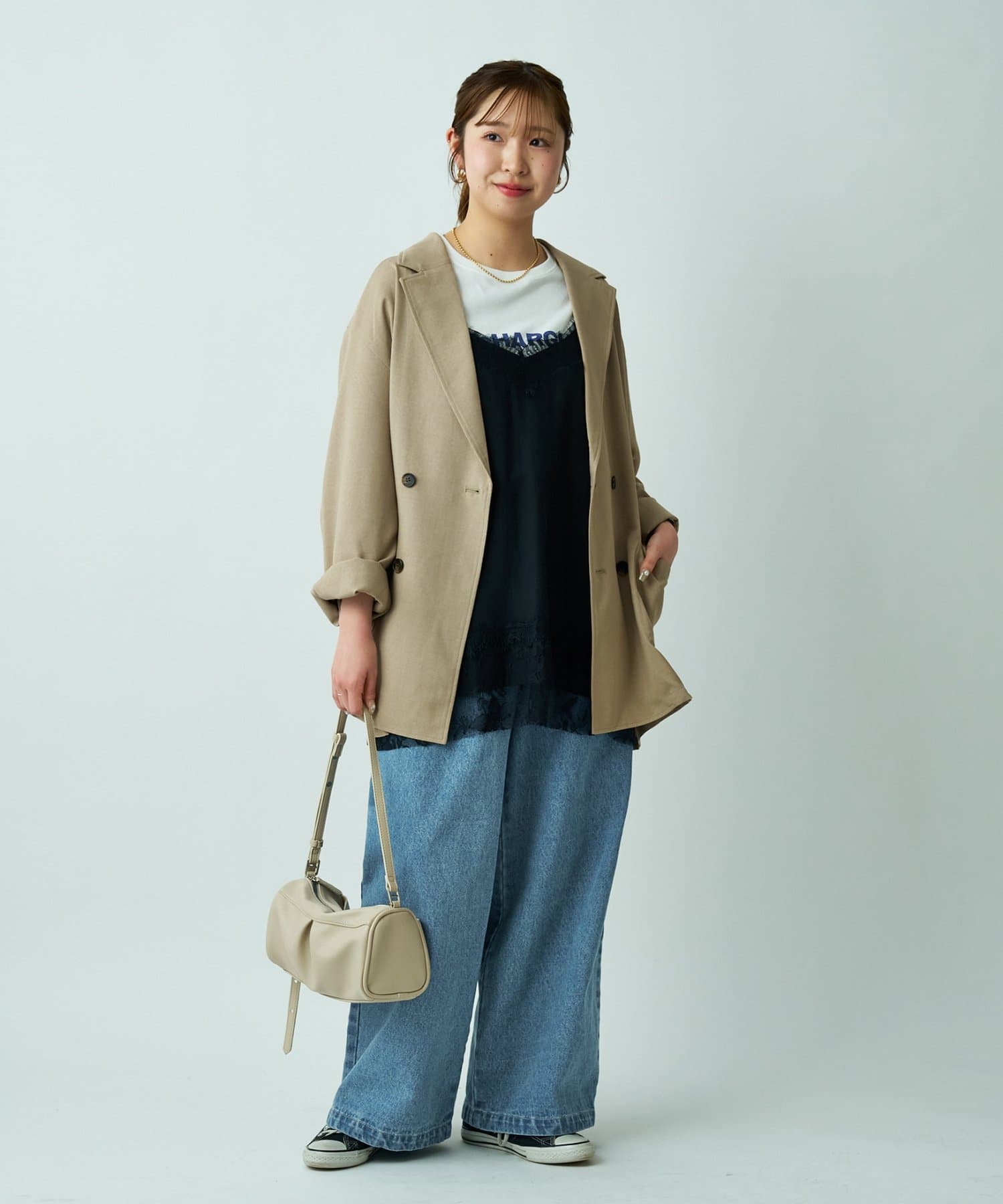 ・ダブルブレストデザインで、きれいめな印象に