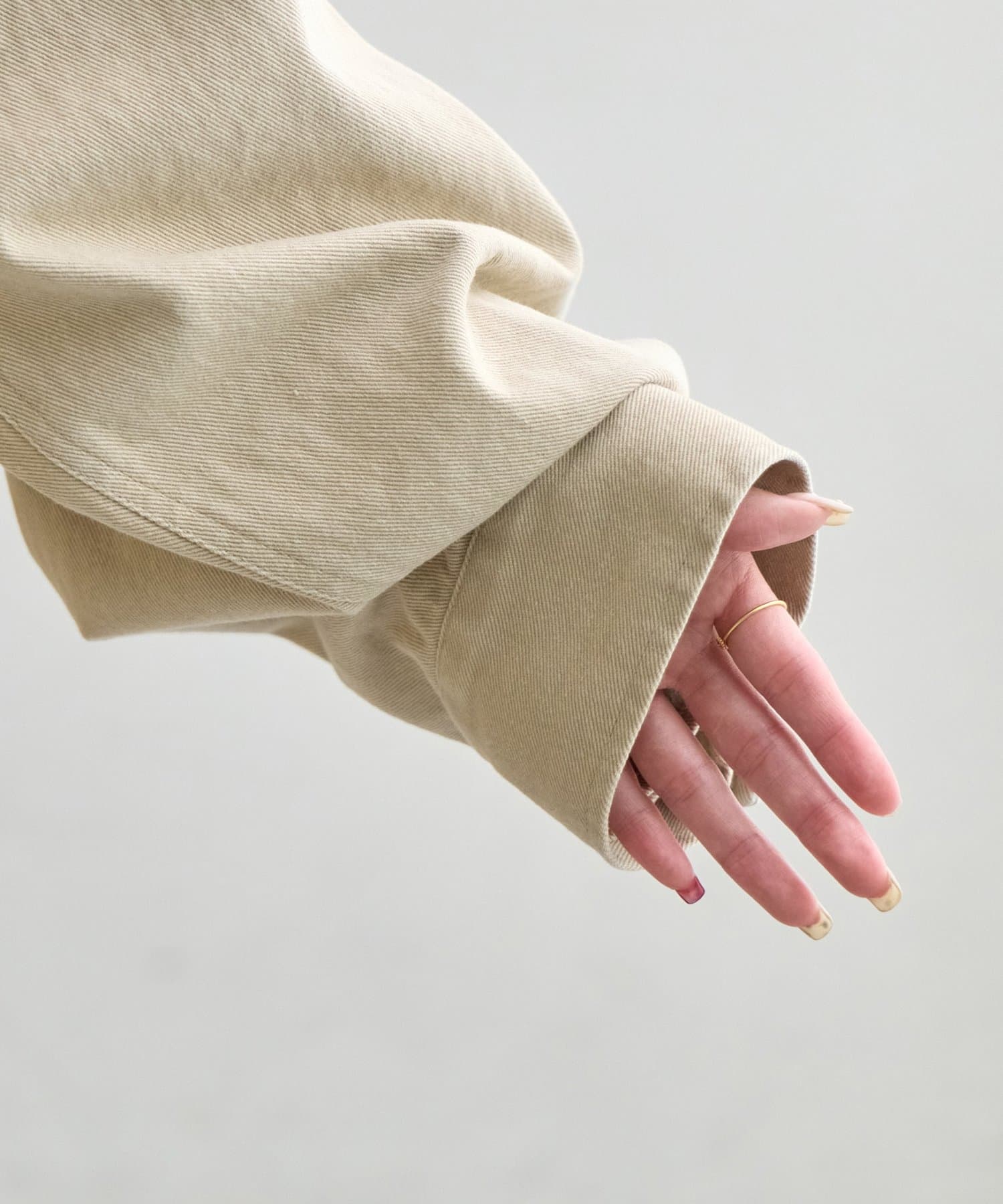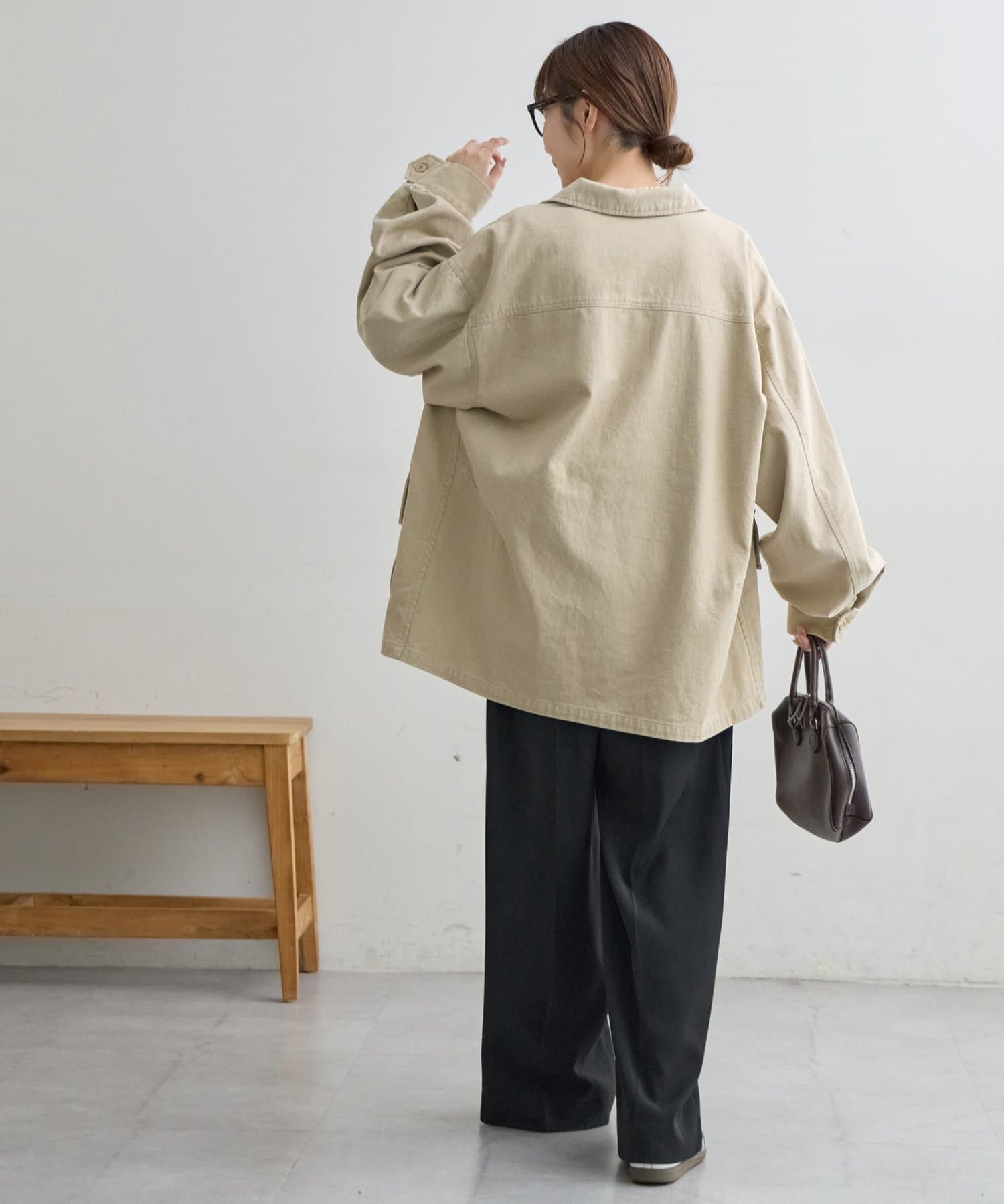 ・肩を落としたゆとりのあるシルエットで、かっちりしすぎない印象