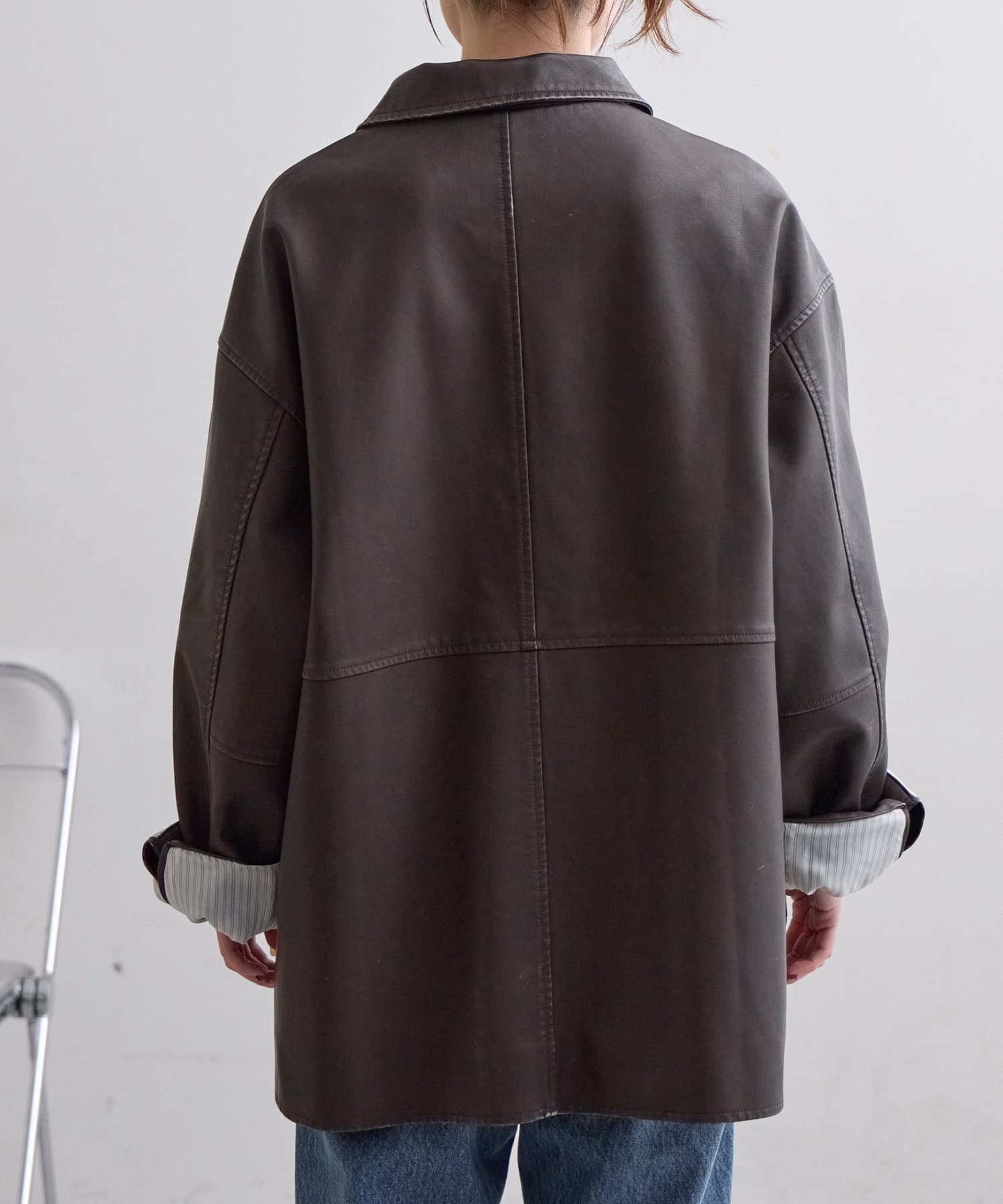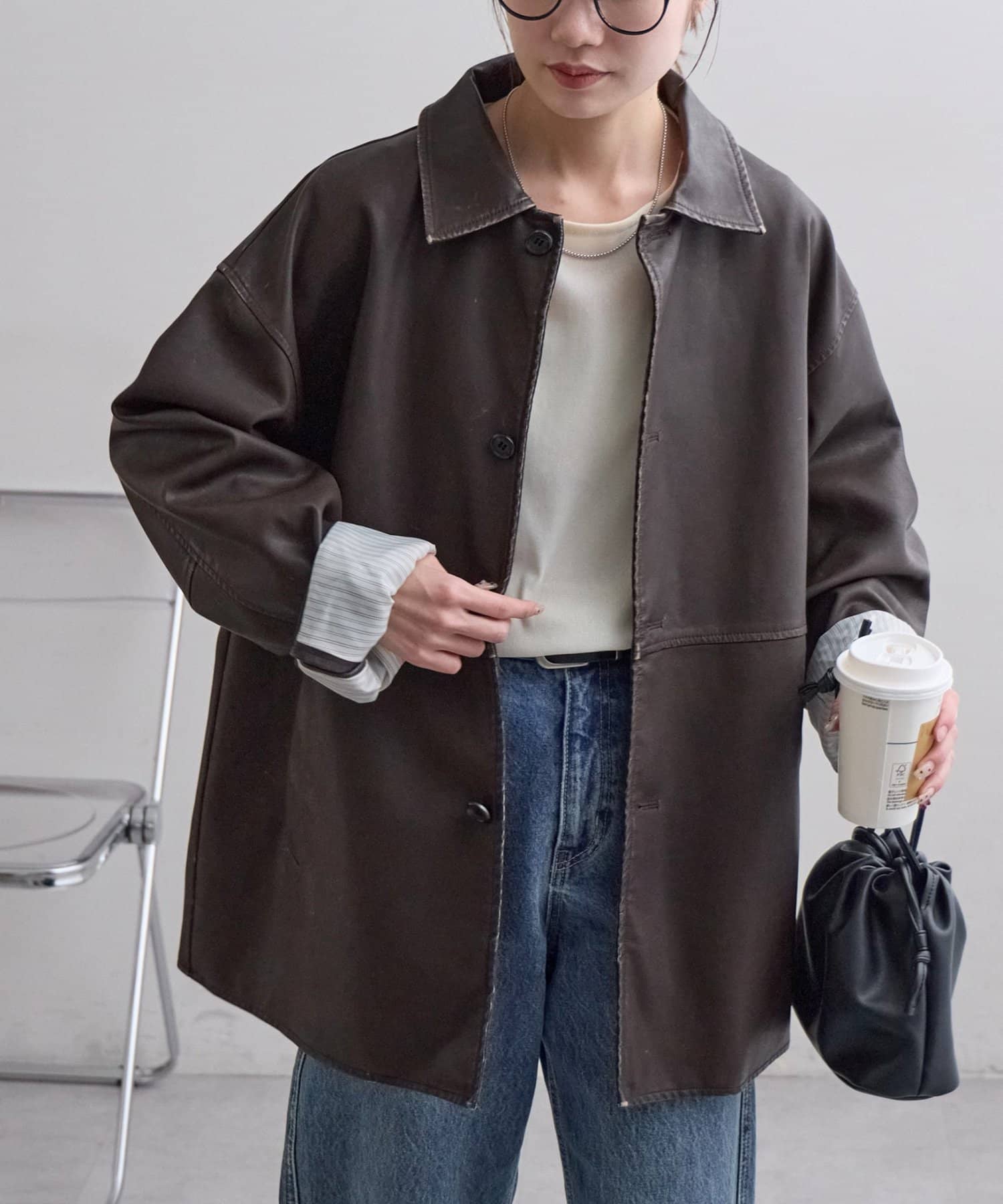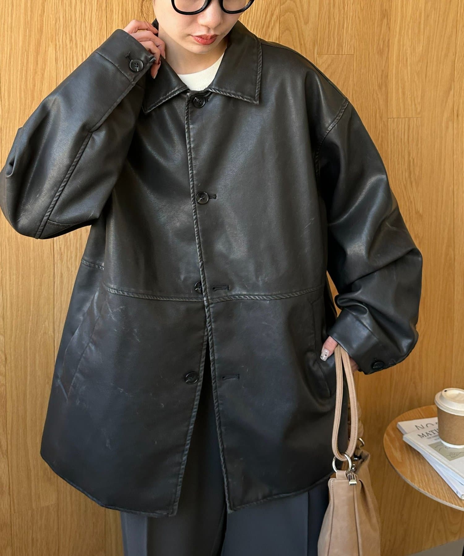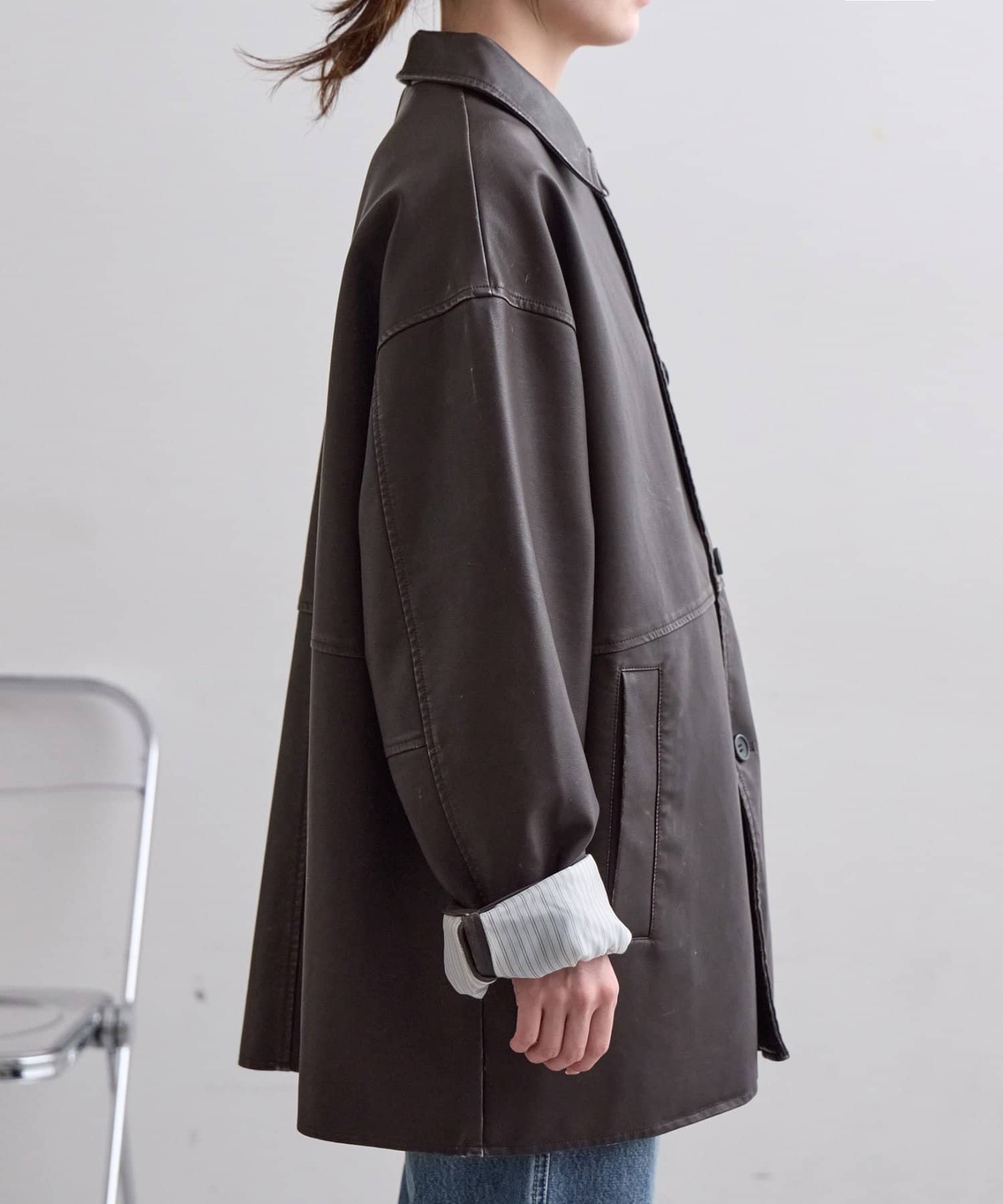 【Enlude/ユニセックス】フェイクレザーショートコート