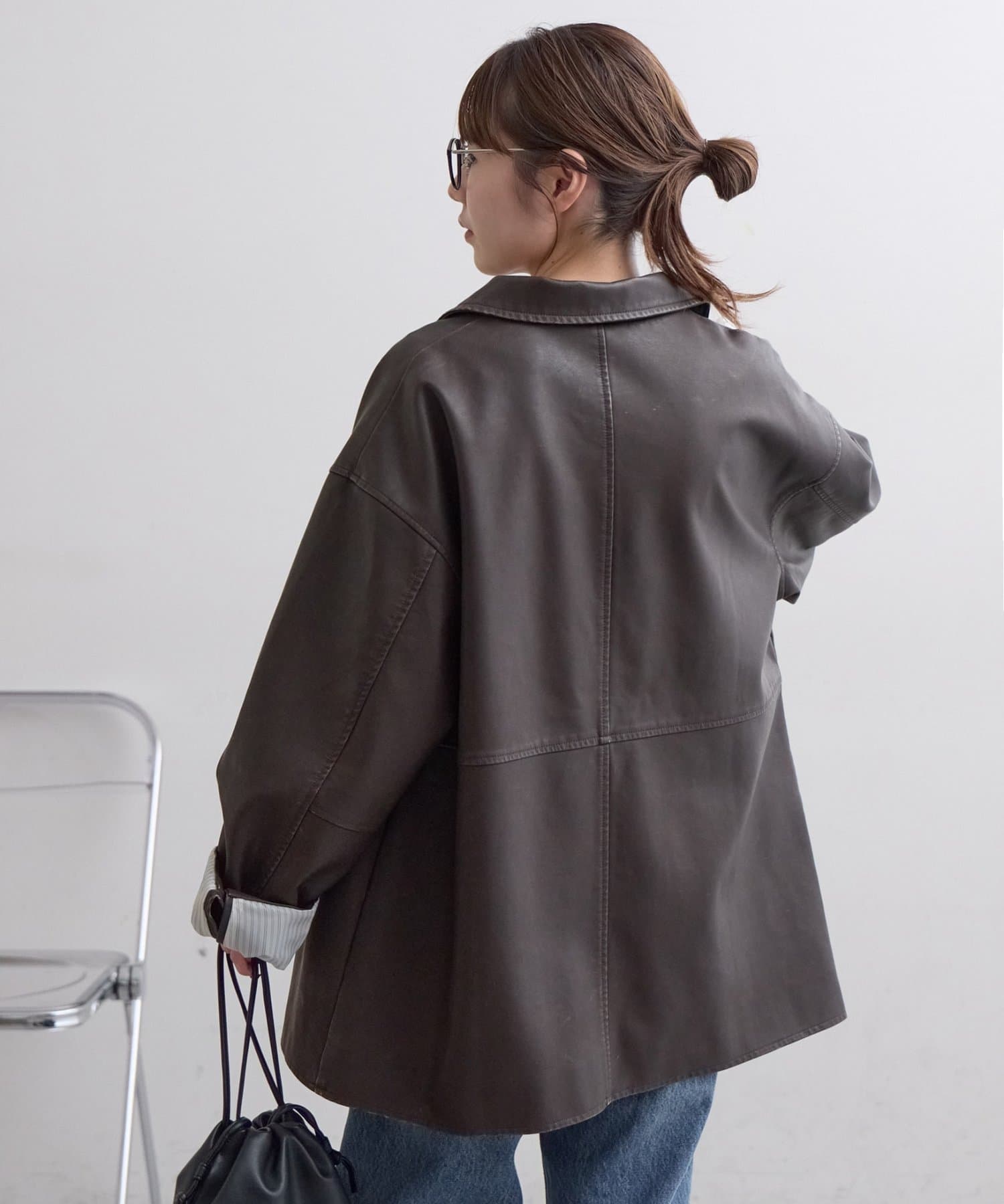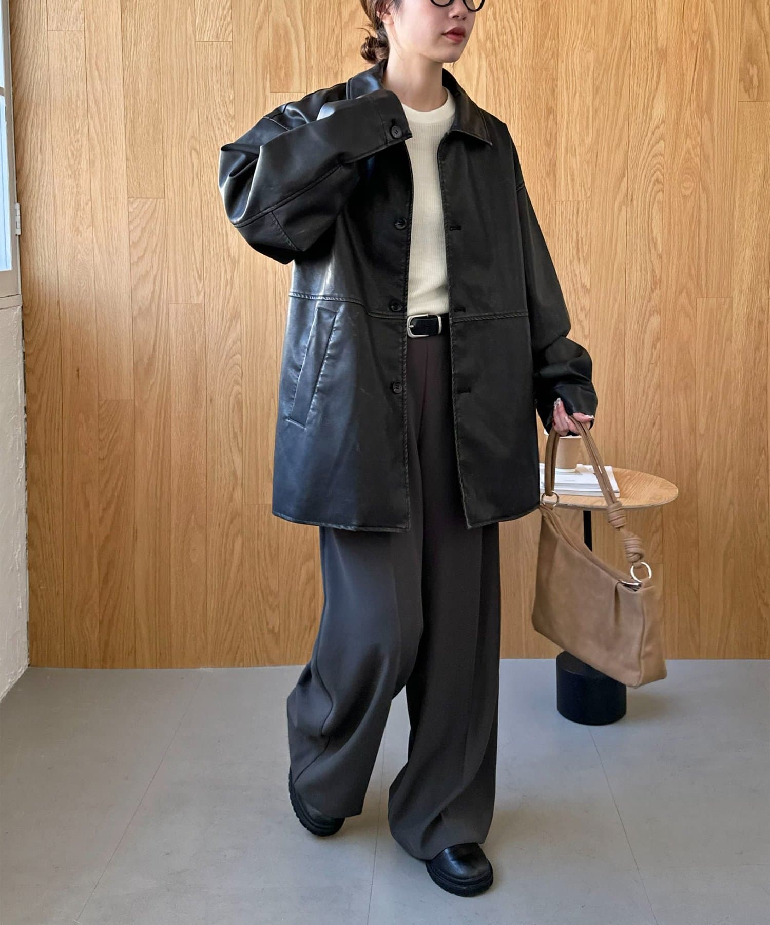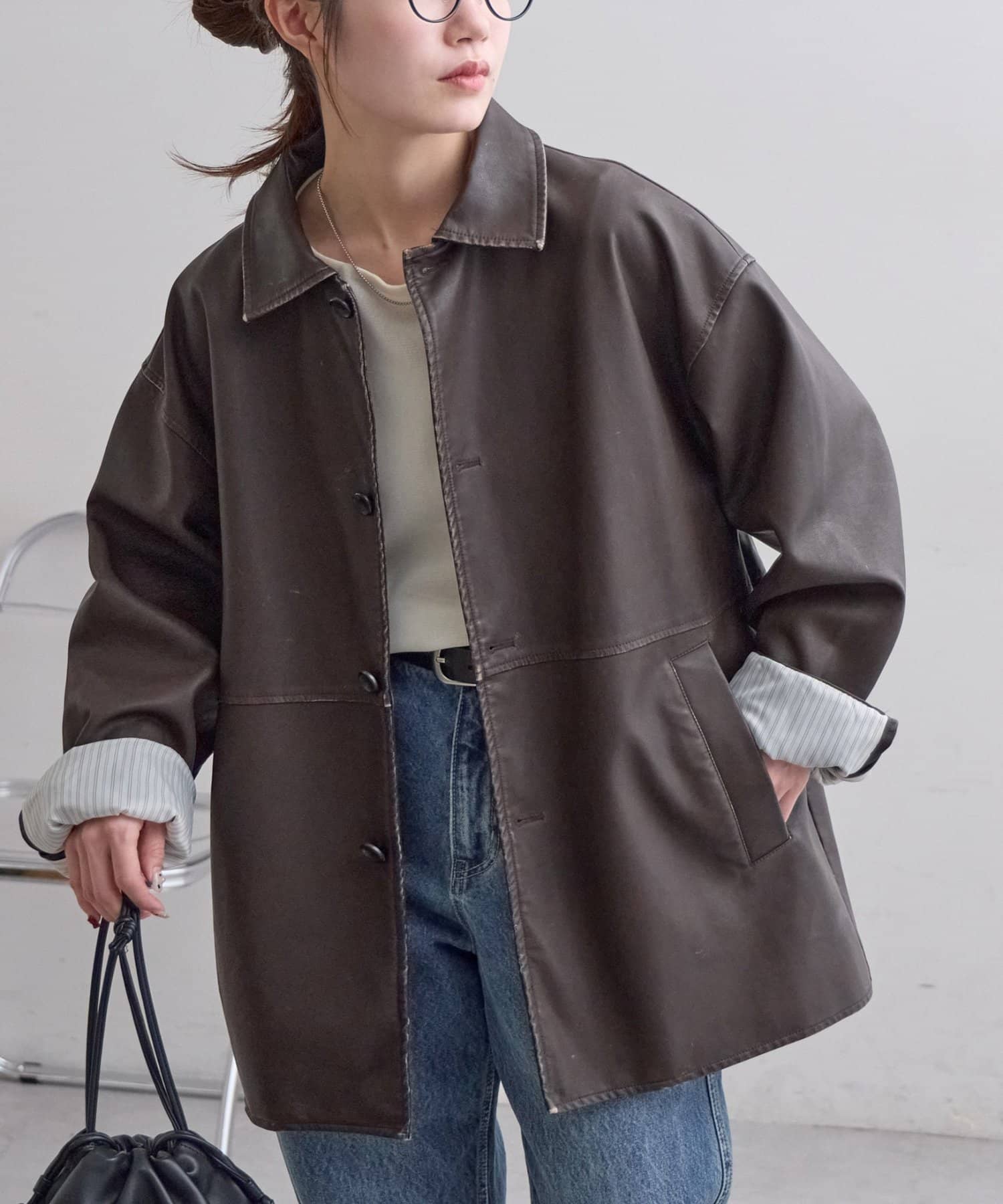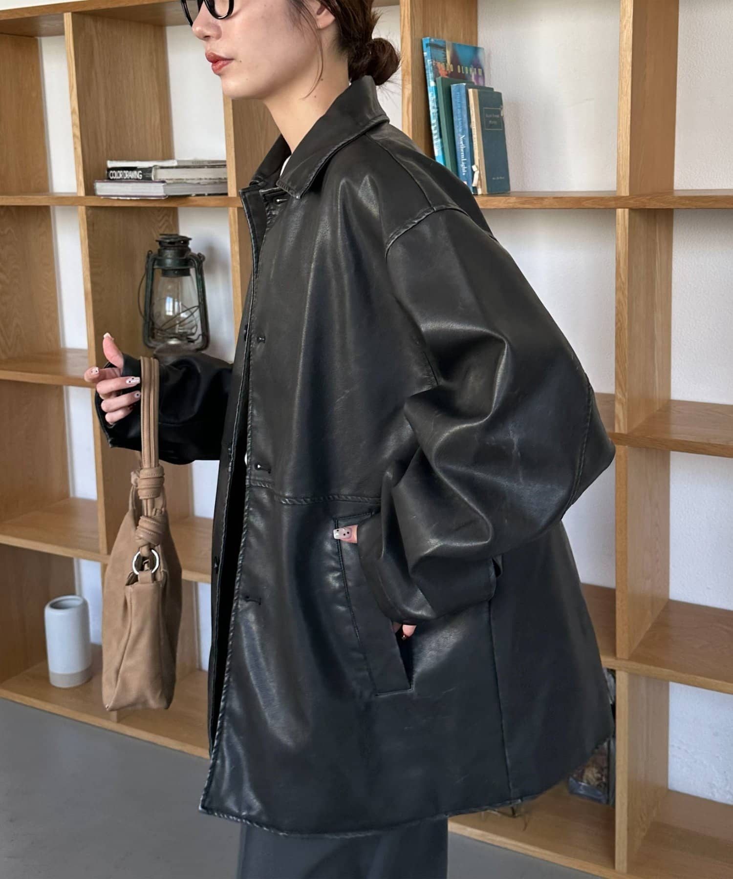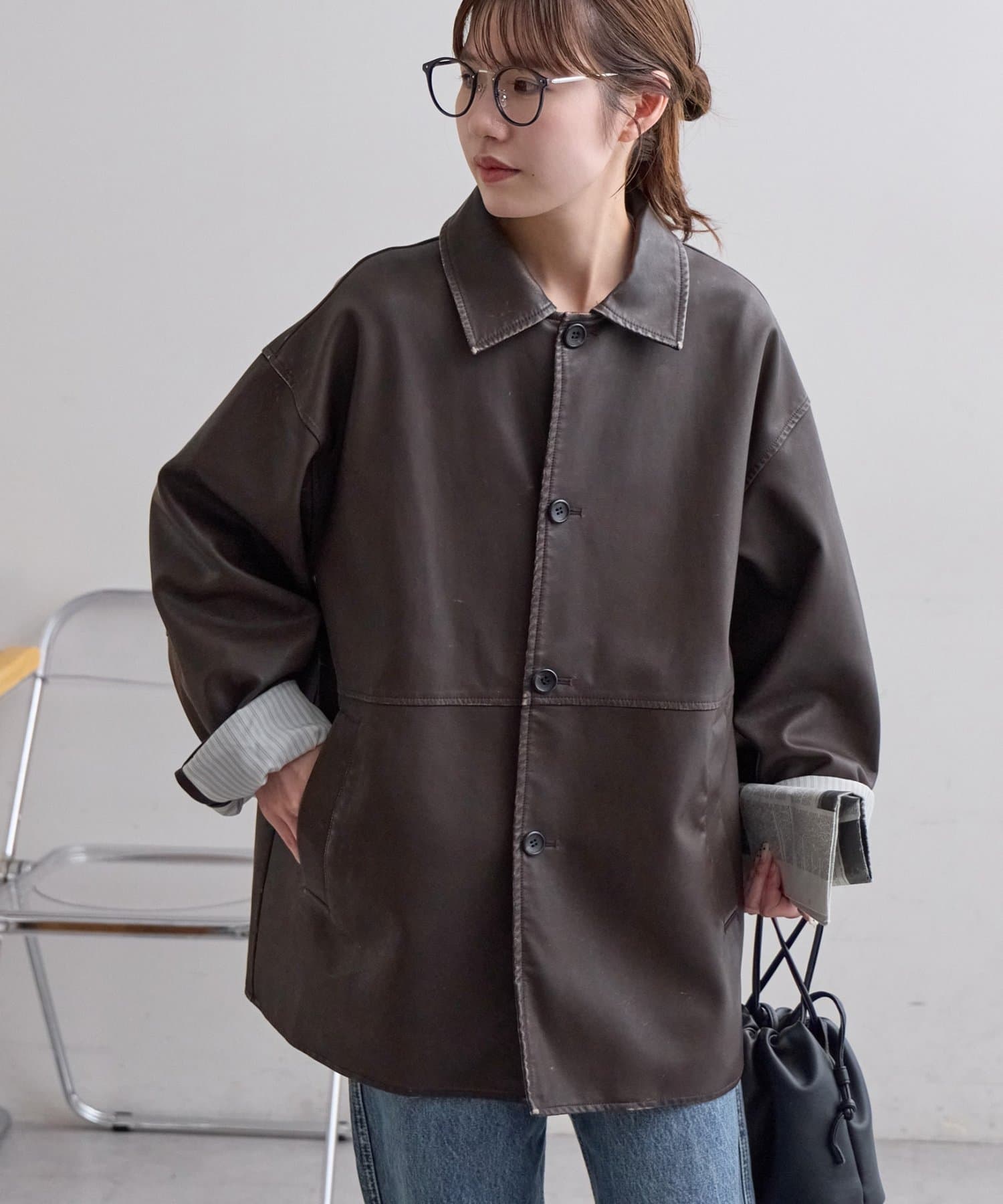 【Enlude/ユニセックス】フェイクレザーショートコート