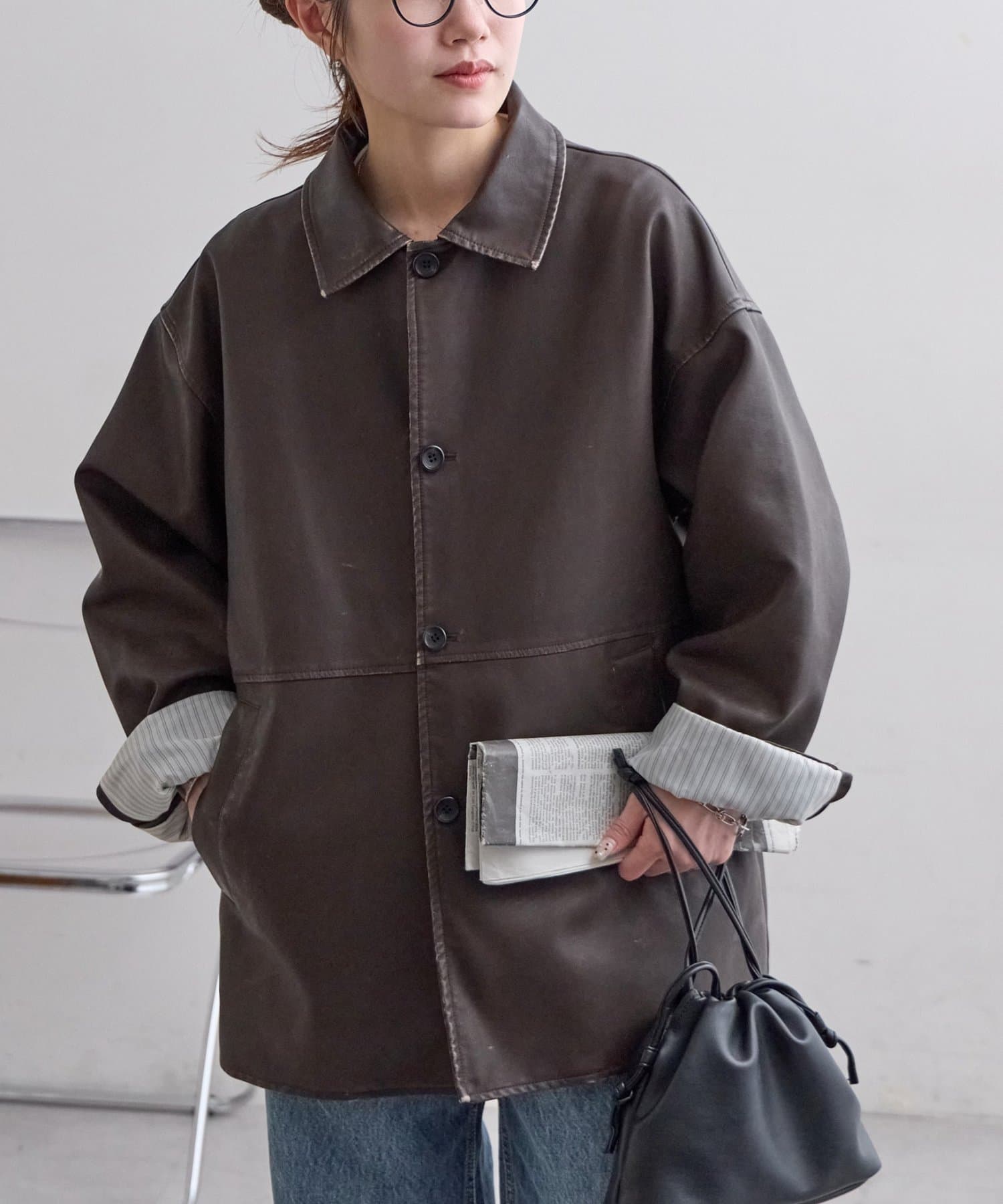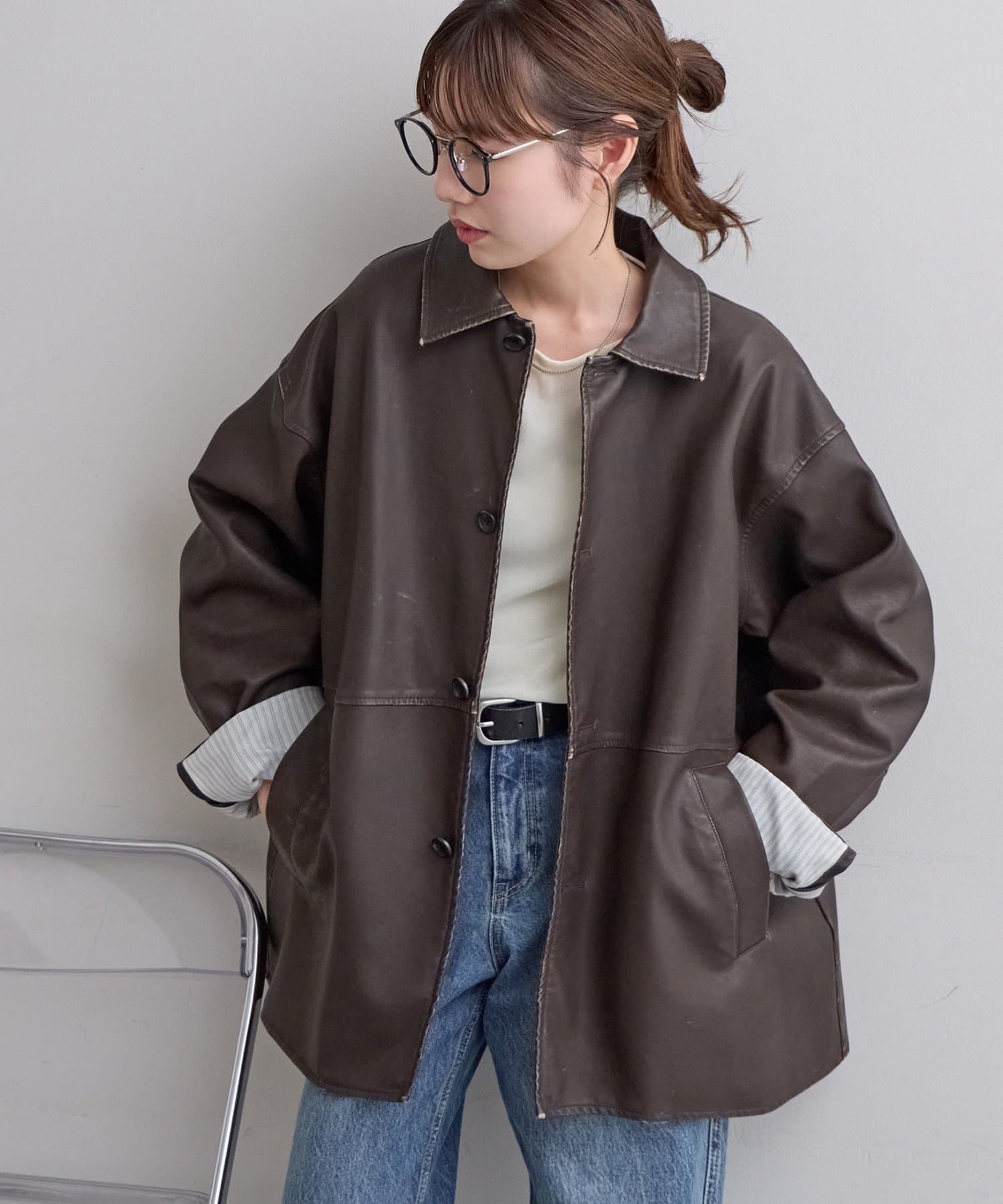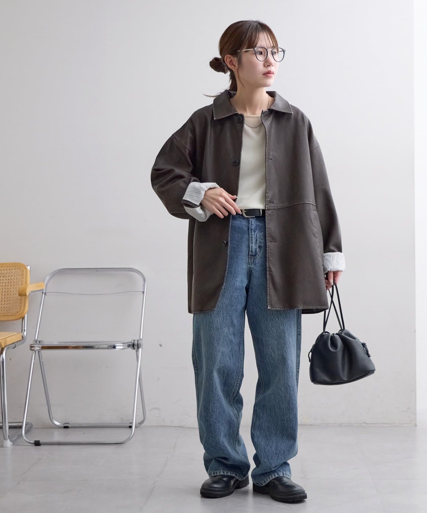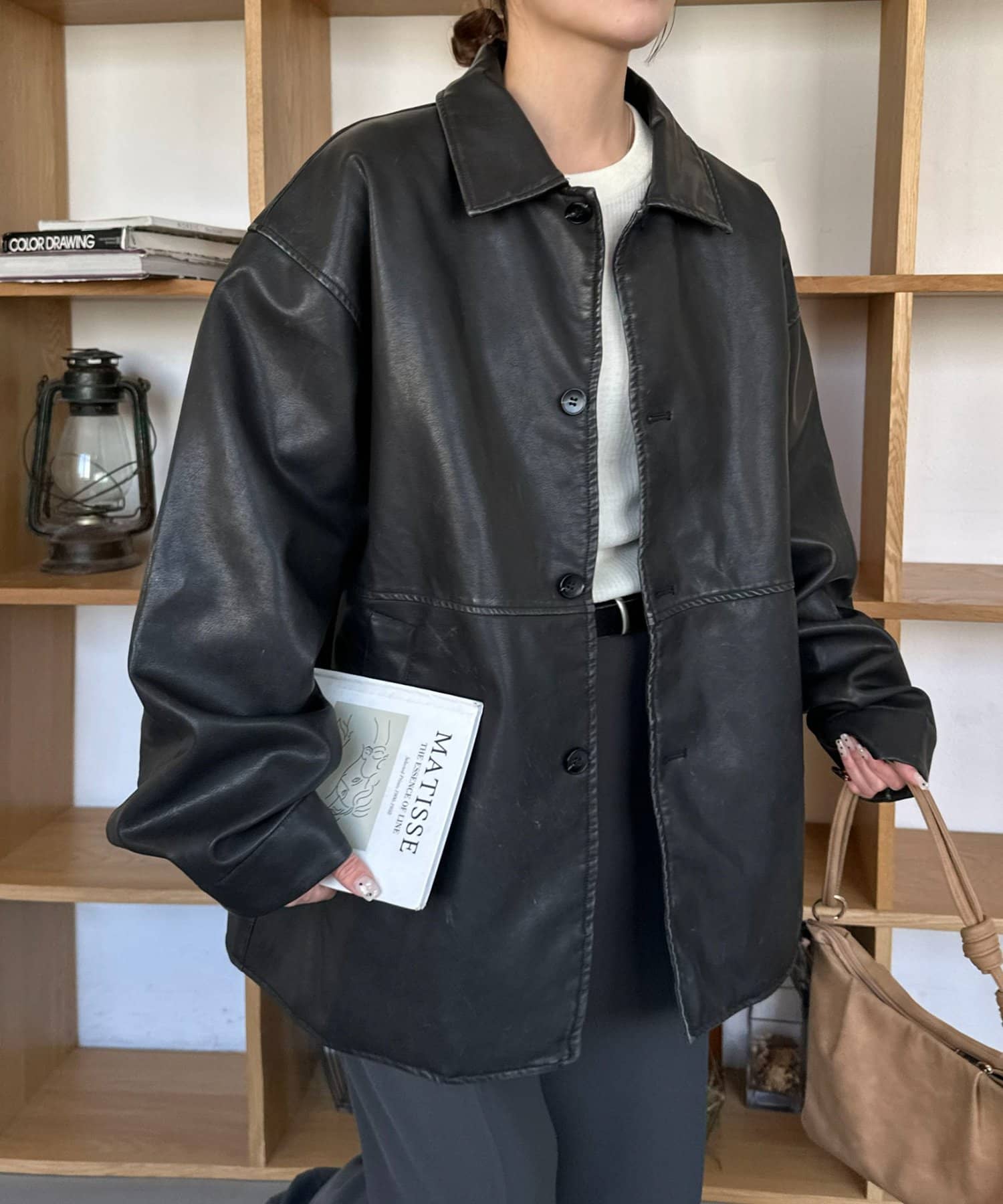 【Enlude/ユニセックス】フェイクレザーショートコート