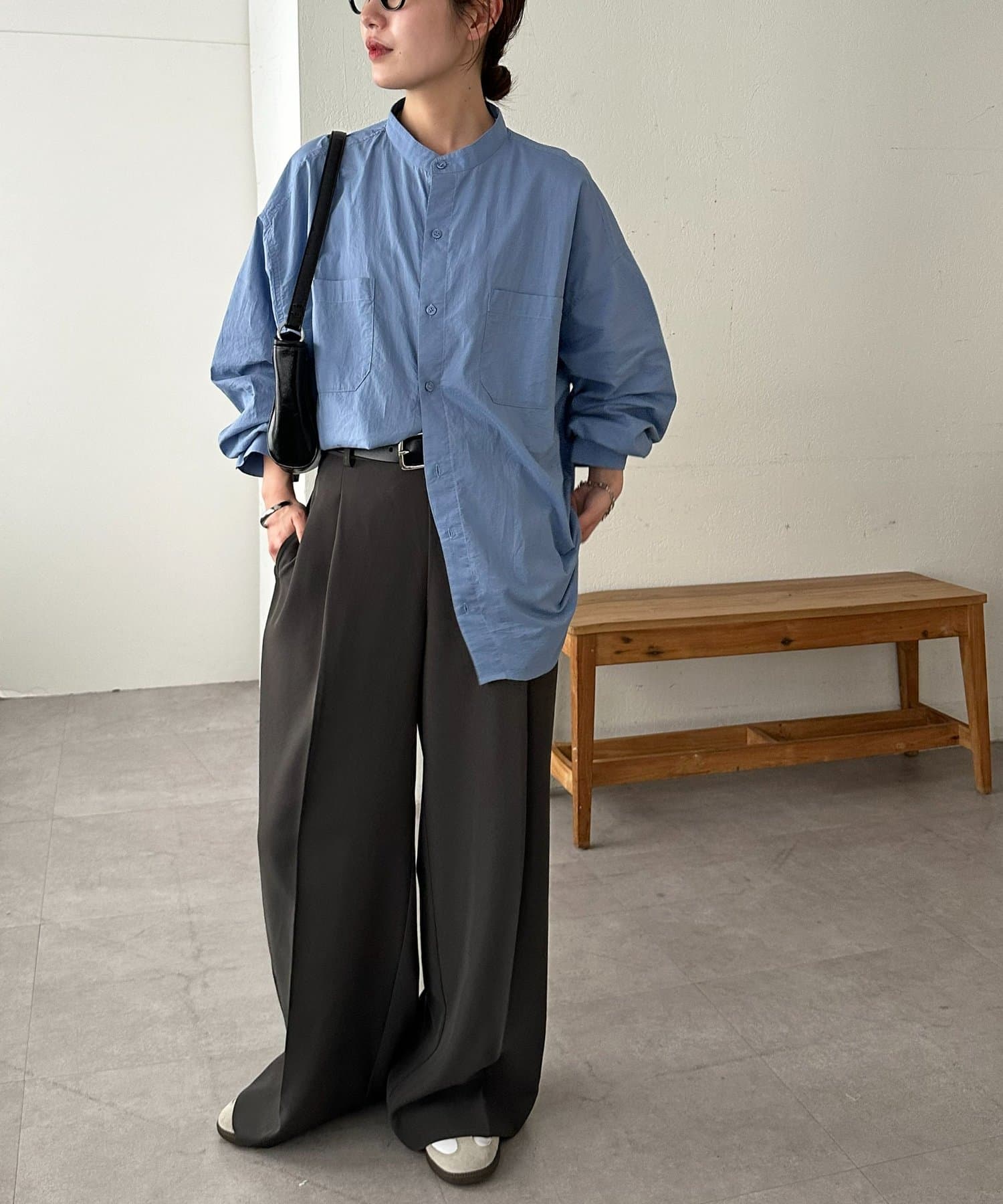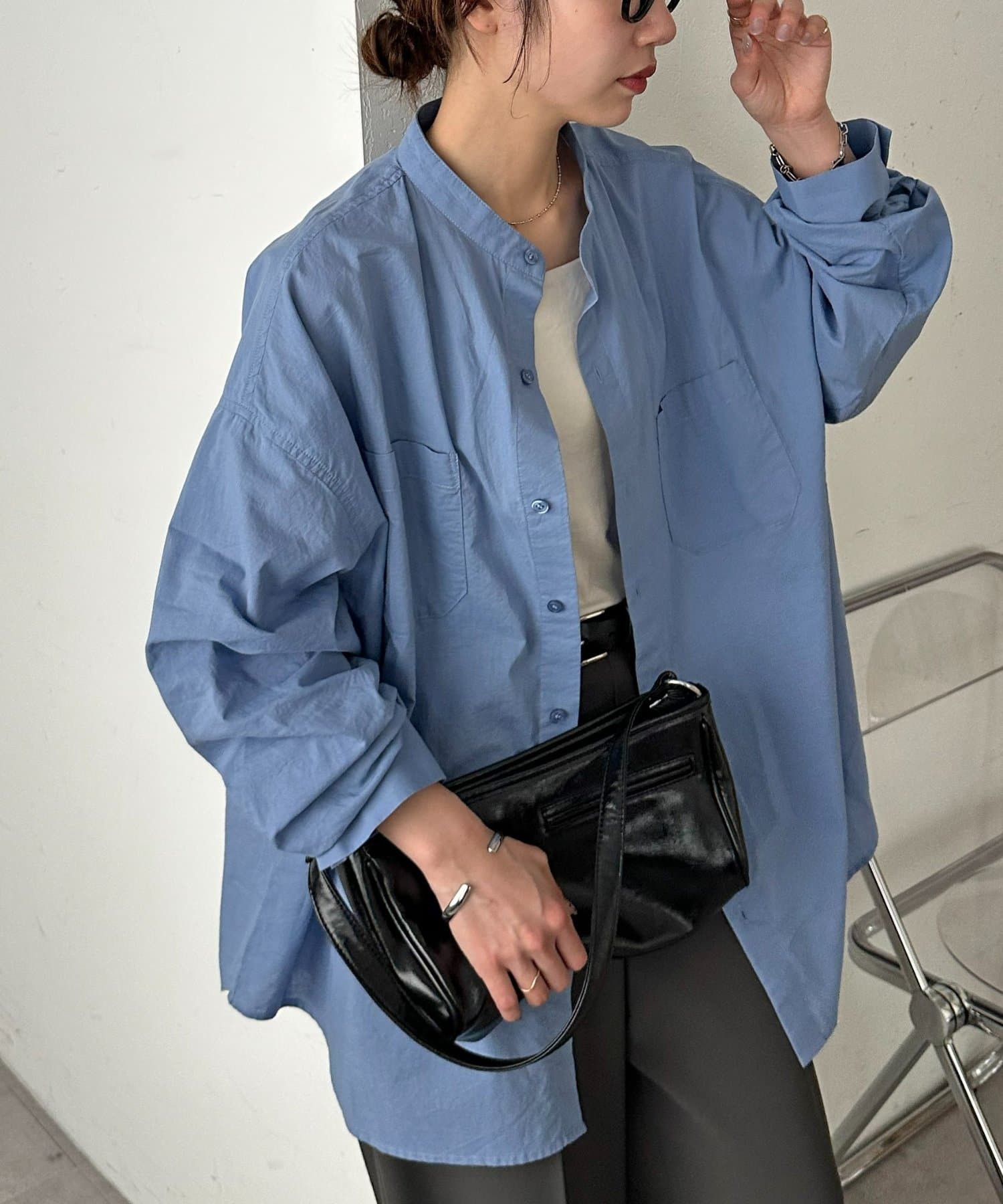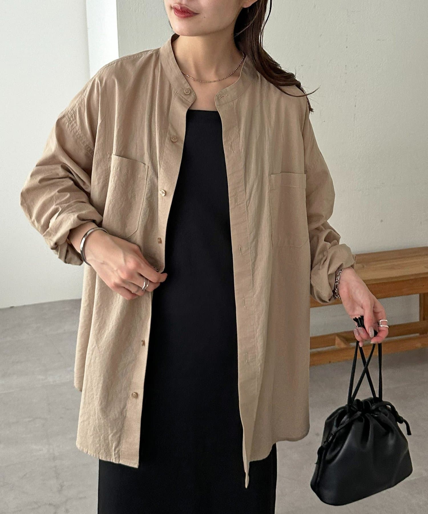 【Enlude】70ポプリンバンドカラーシャツ