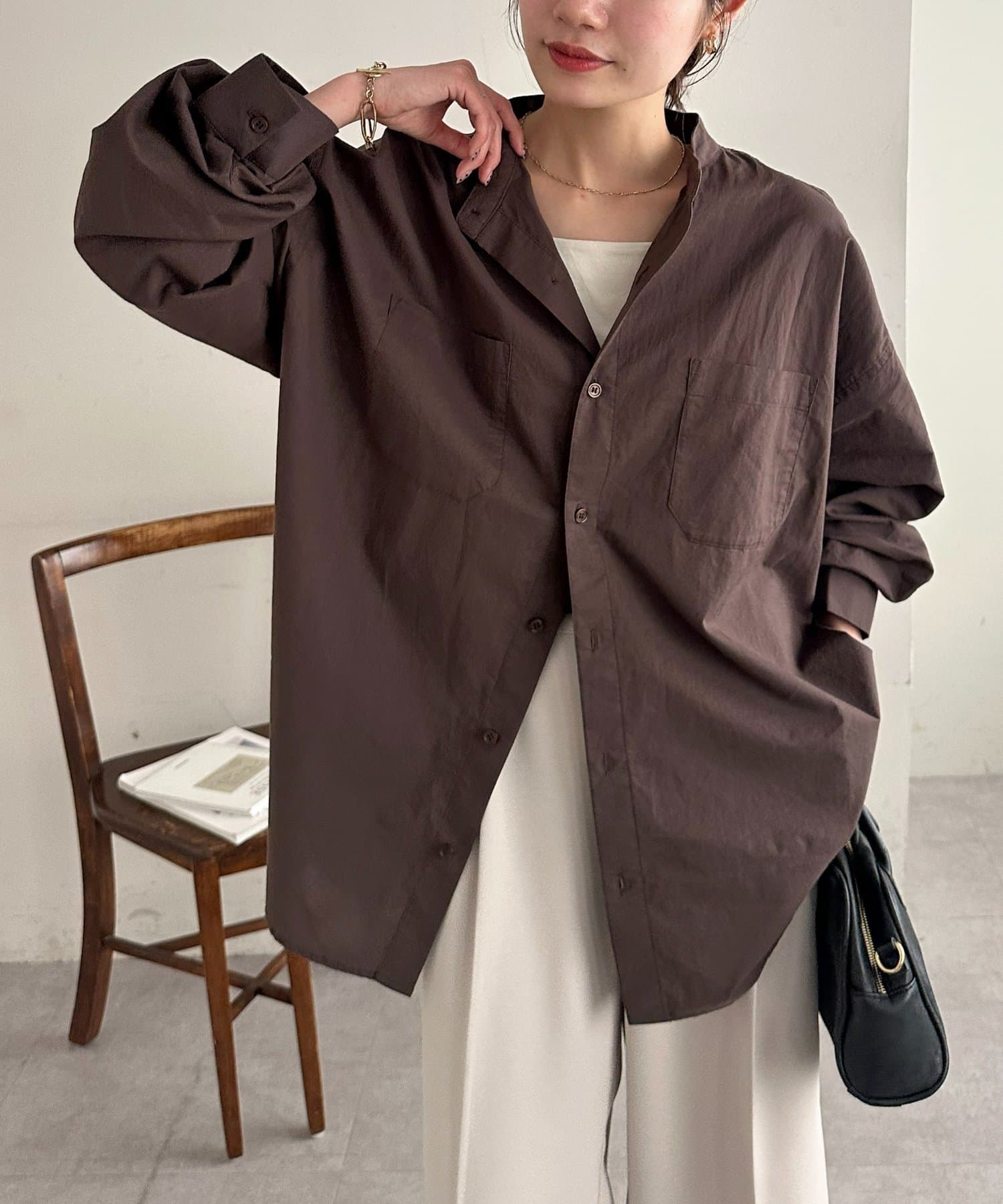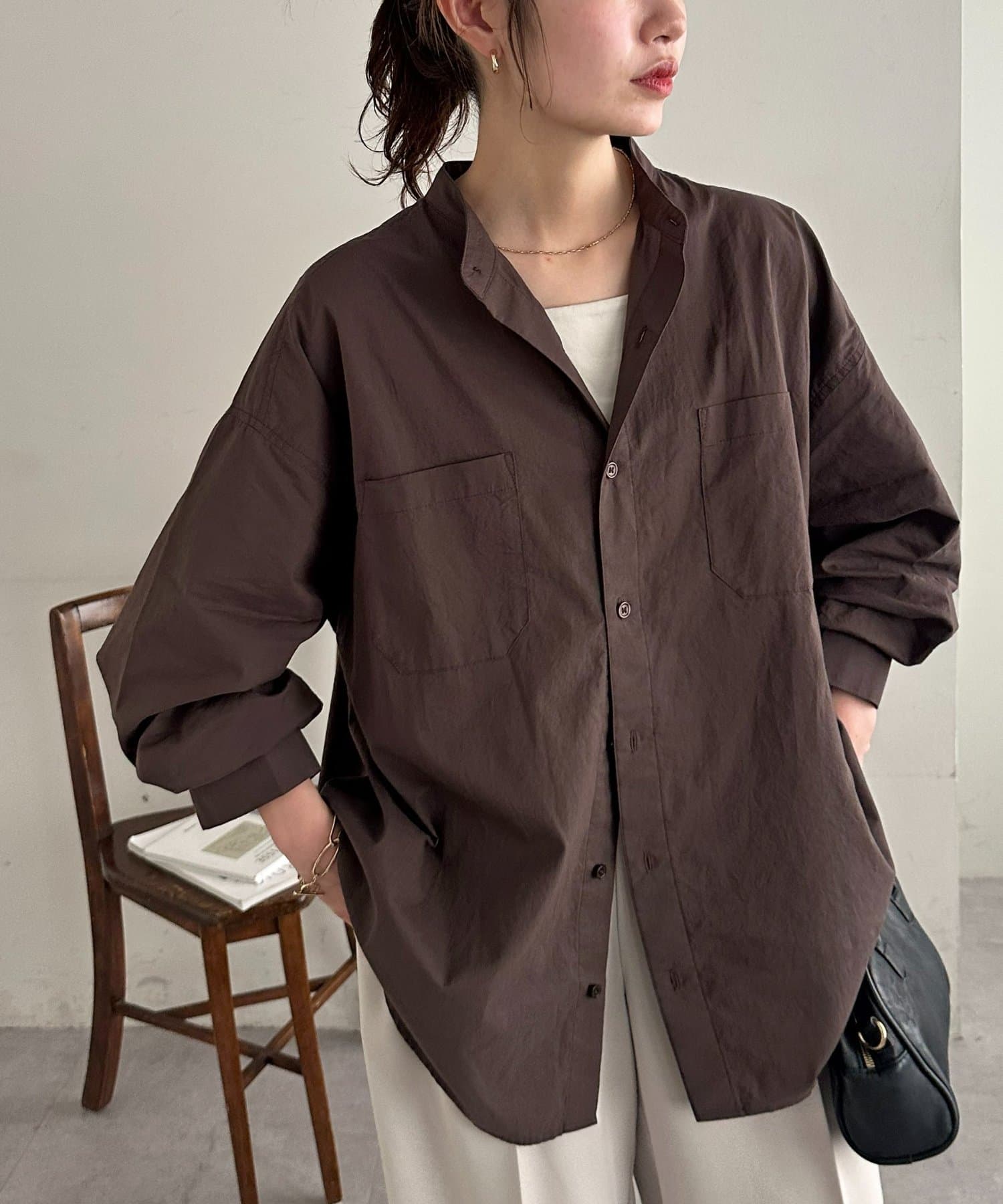TOP > DISCOAT > レディース > トップス > シャツ/ブラウス(ボタン) > 【Enlude】70ポプリンバンドカラーシャツ