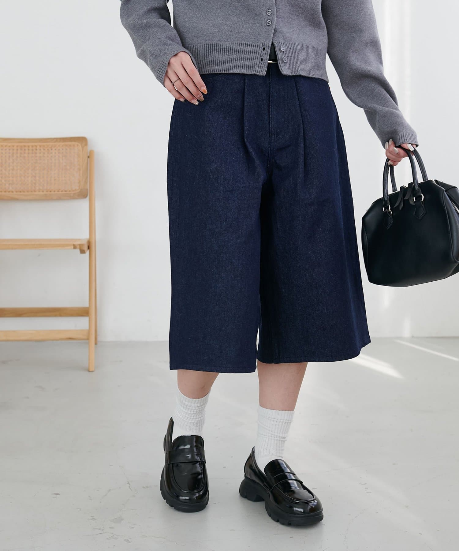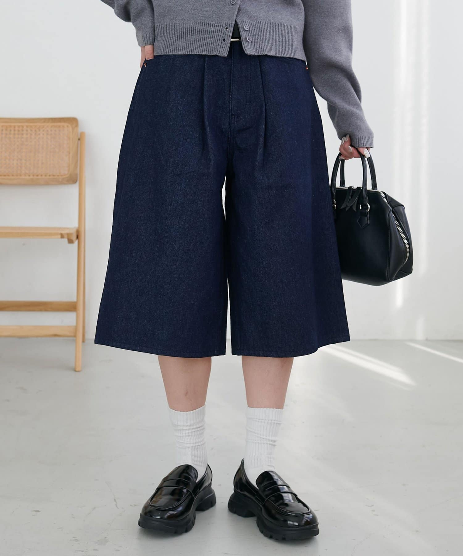 【Enlude/ユニセックス】タックデニムショートパンツ