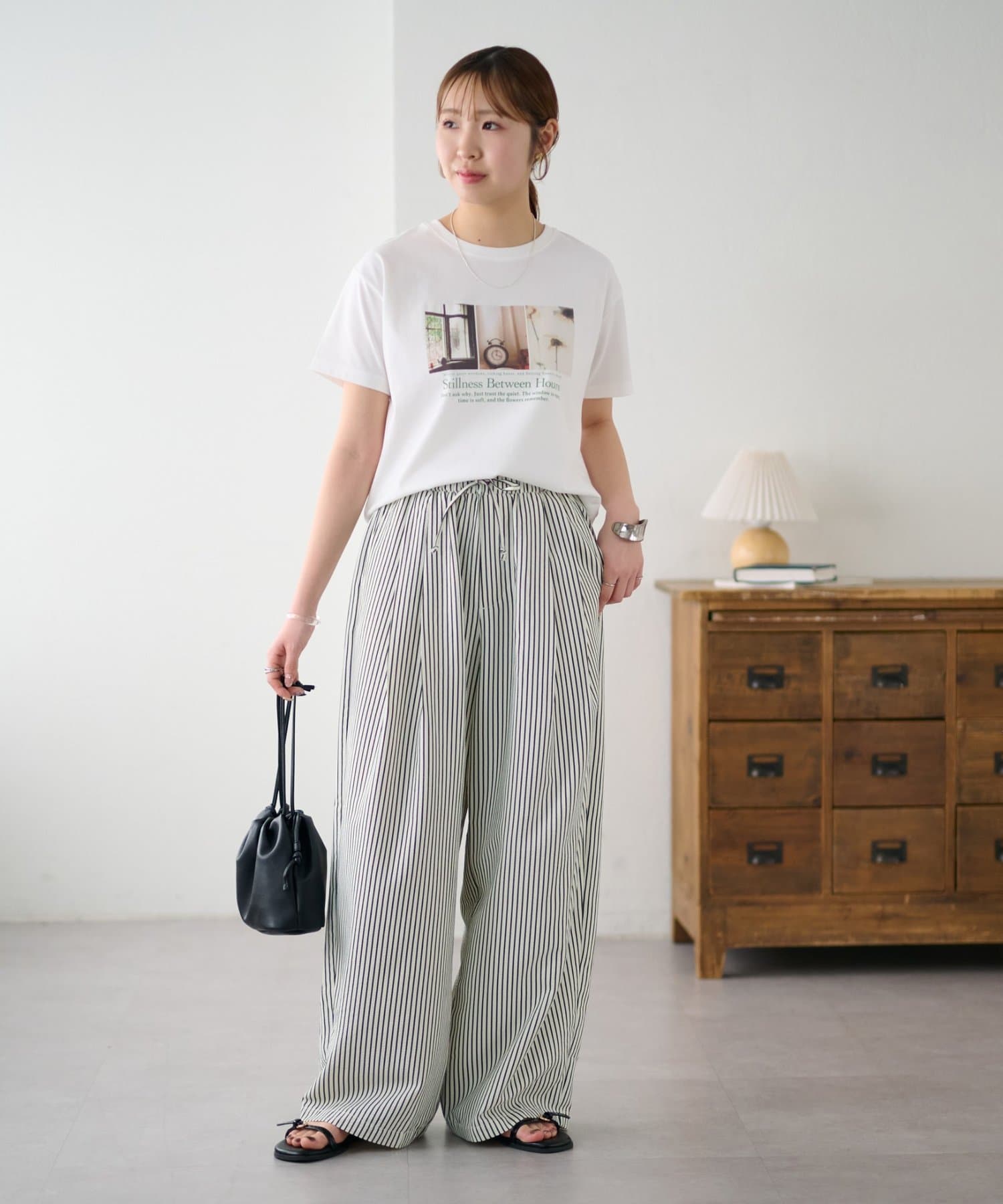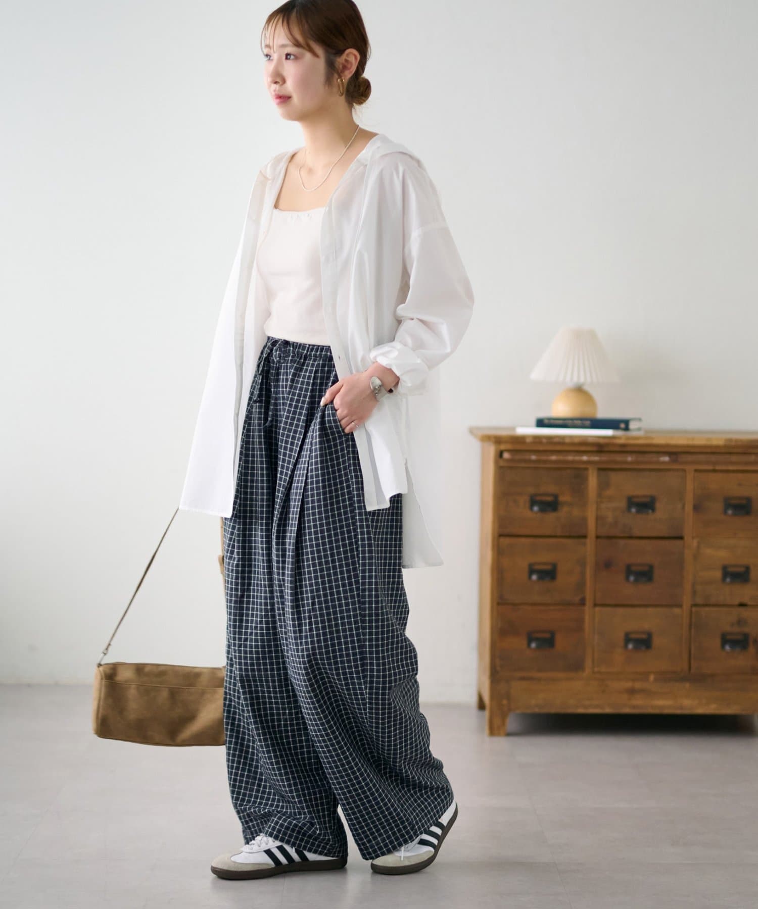 ・フラットサンダルやスニーカーで、リラックス感のある足元がおすすめ◎