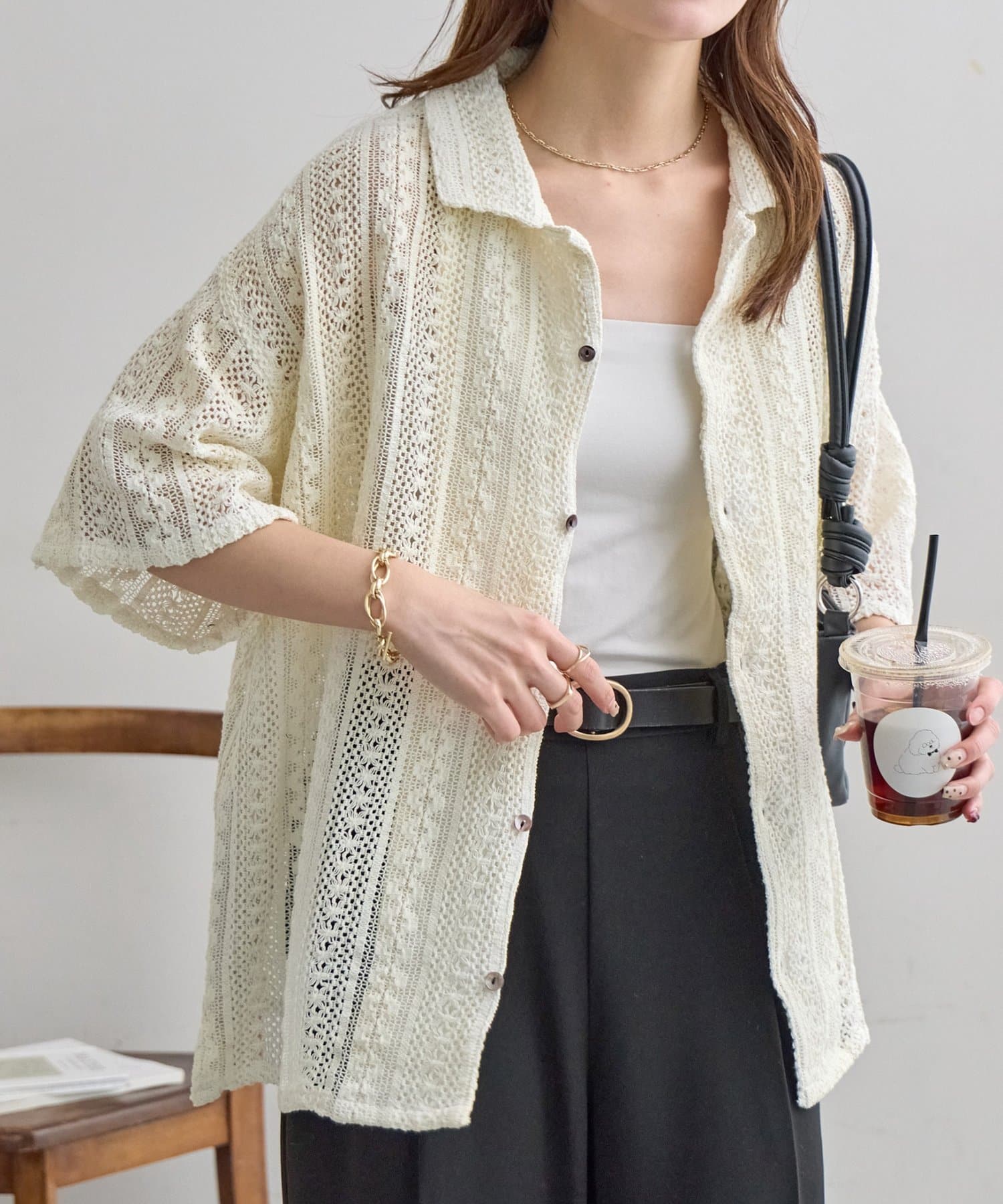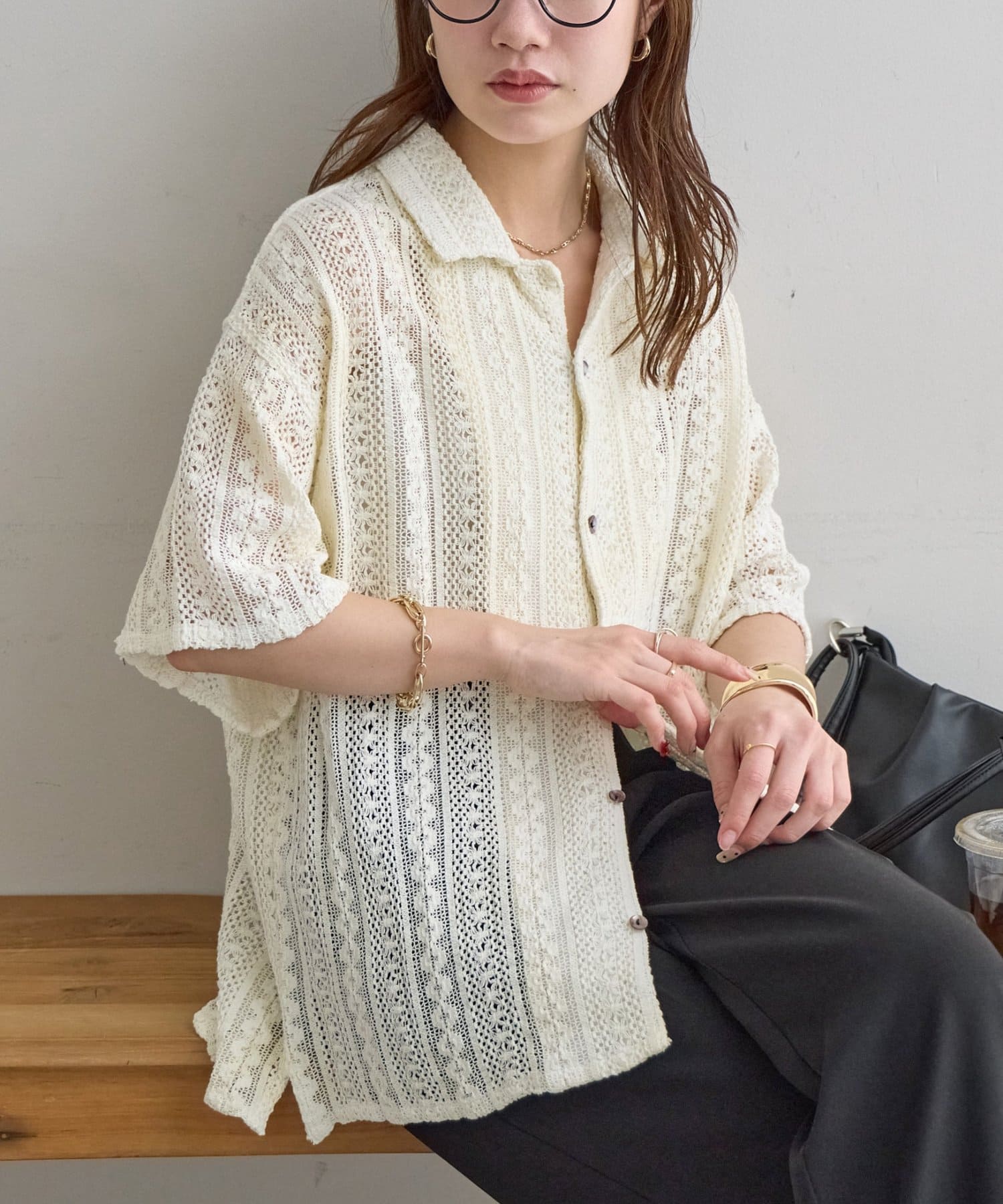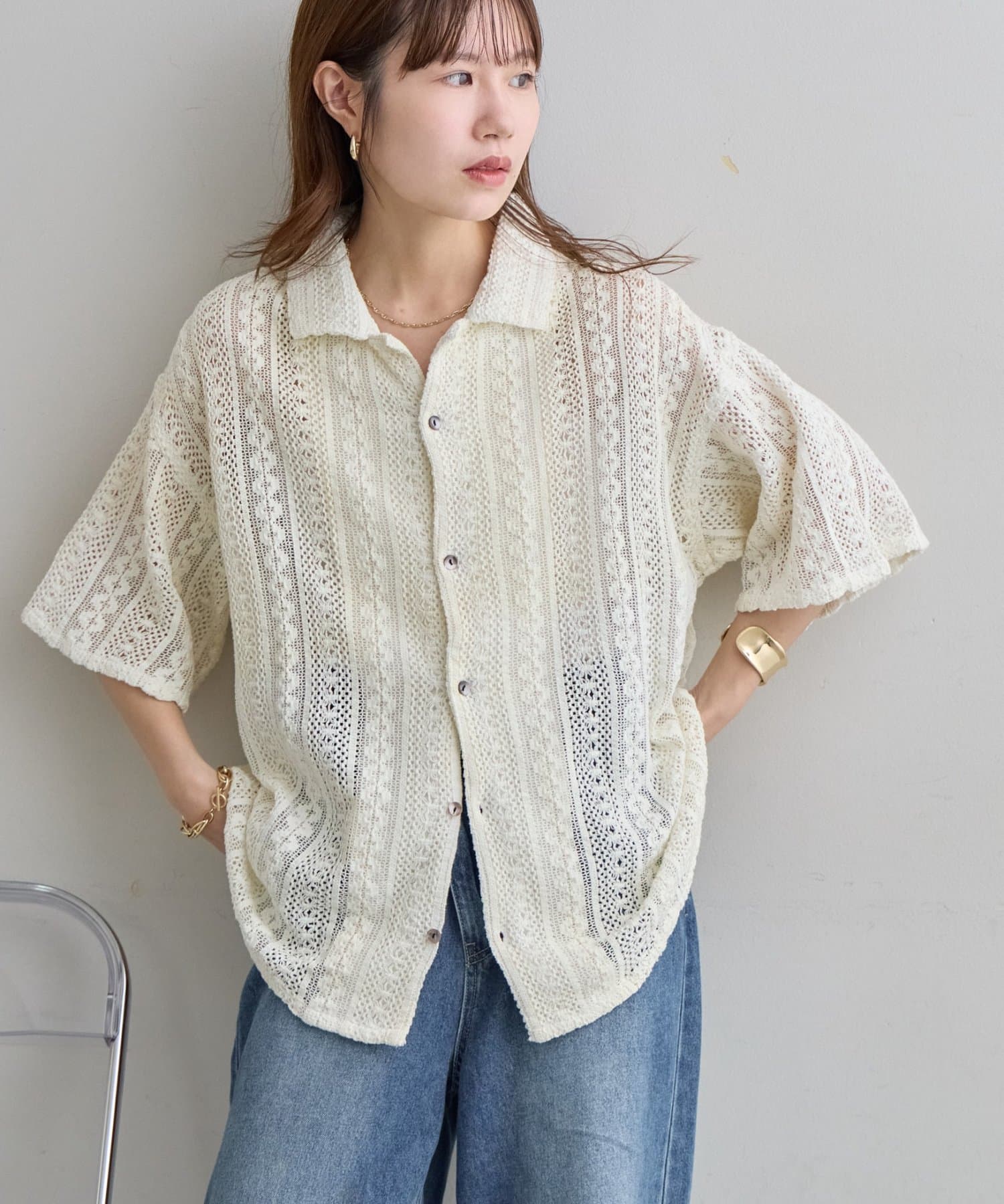 【Enlude/ユニセックス/India】ジャガードレースシャツ