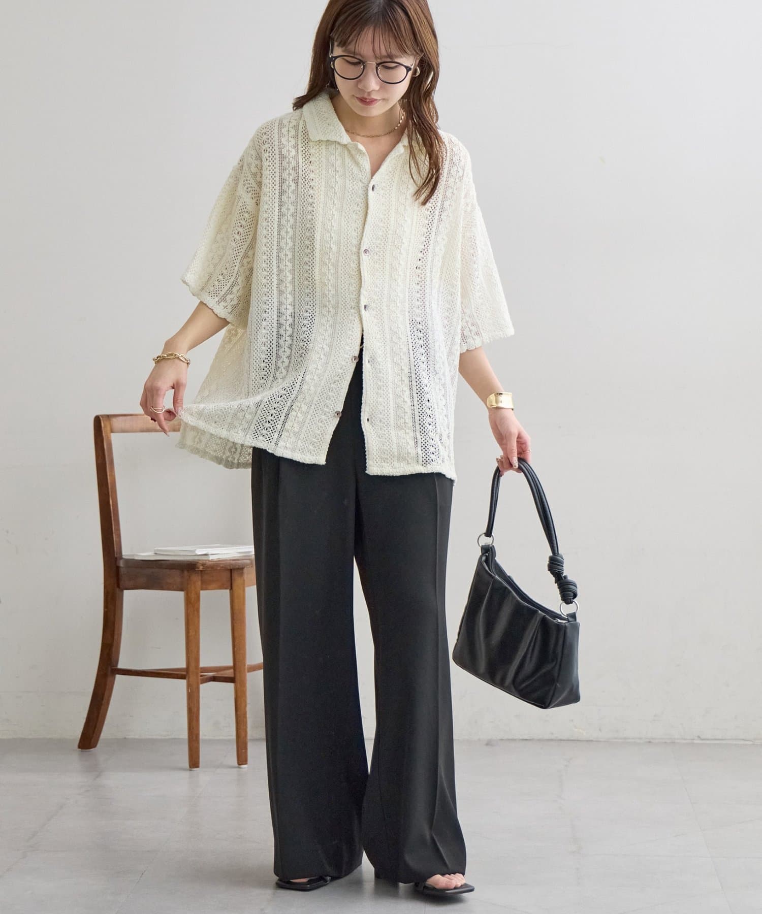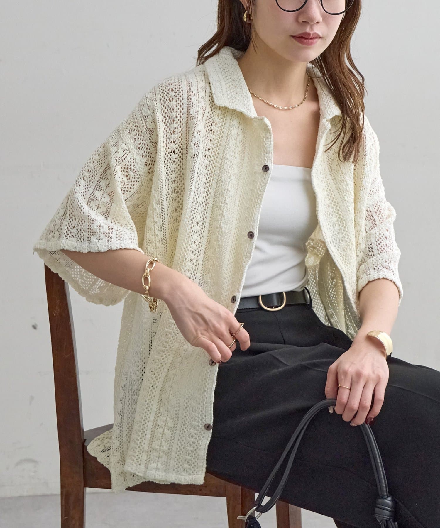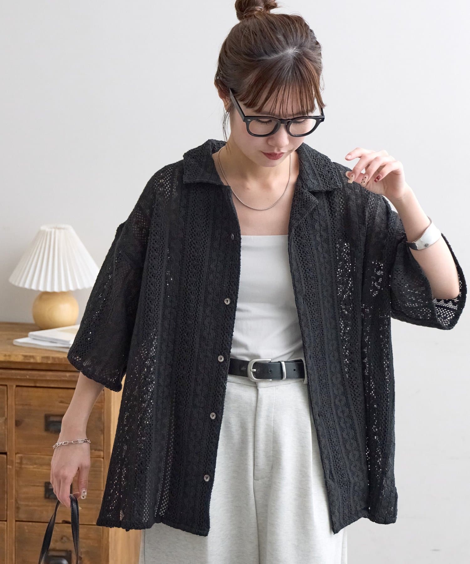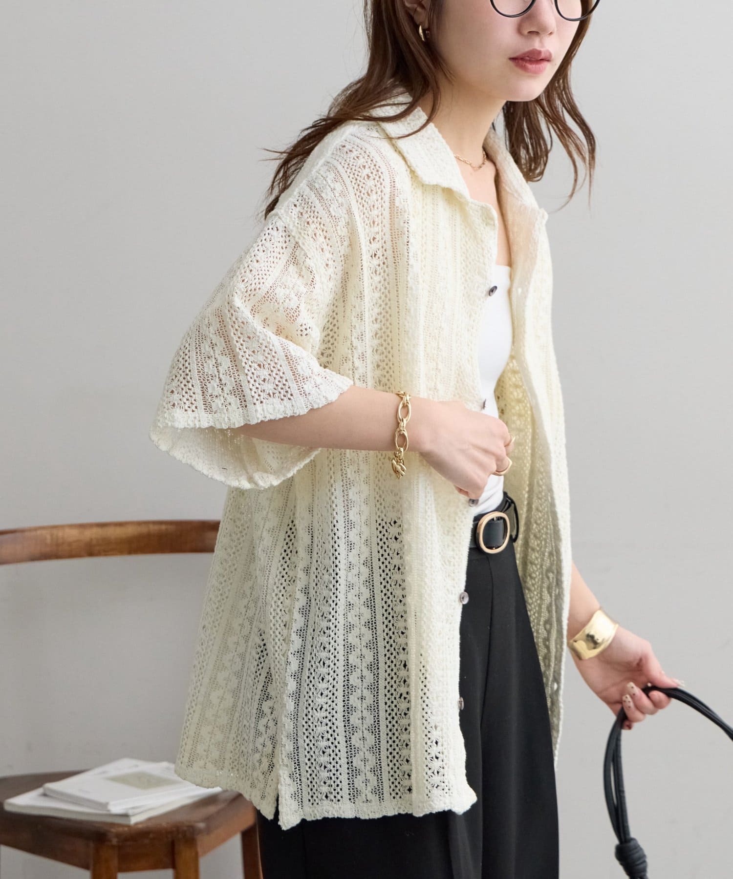 【Enlude/ユニセックス/India】ジャガードレースシャツ