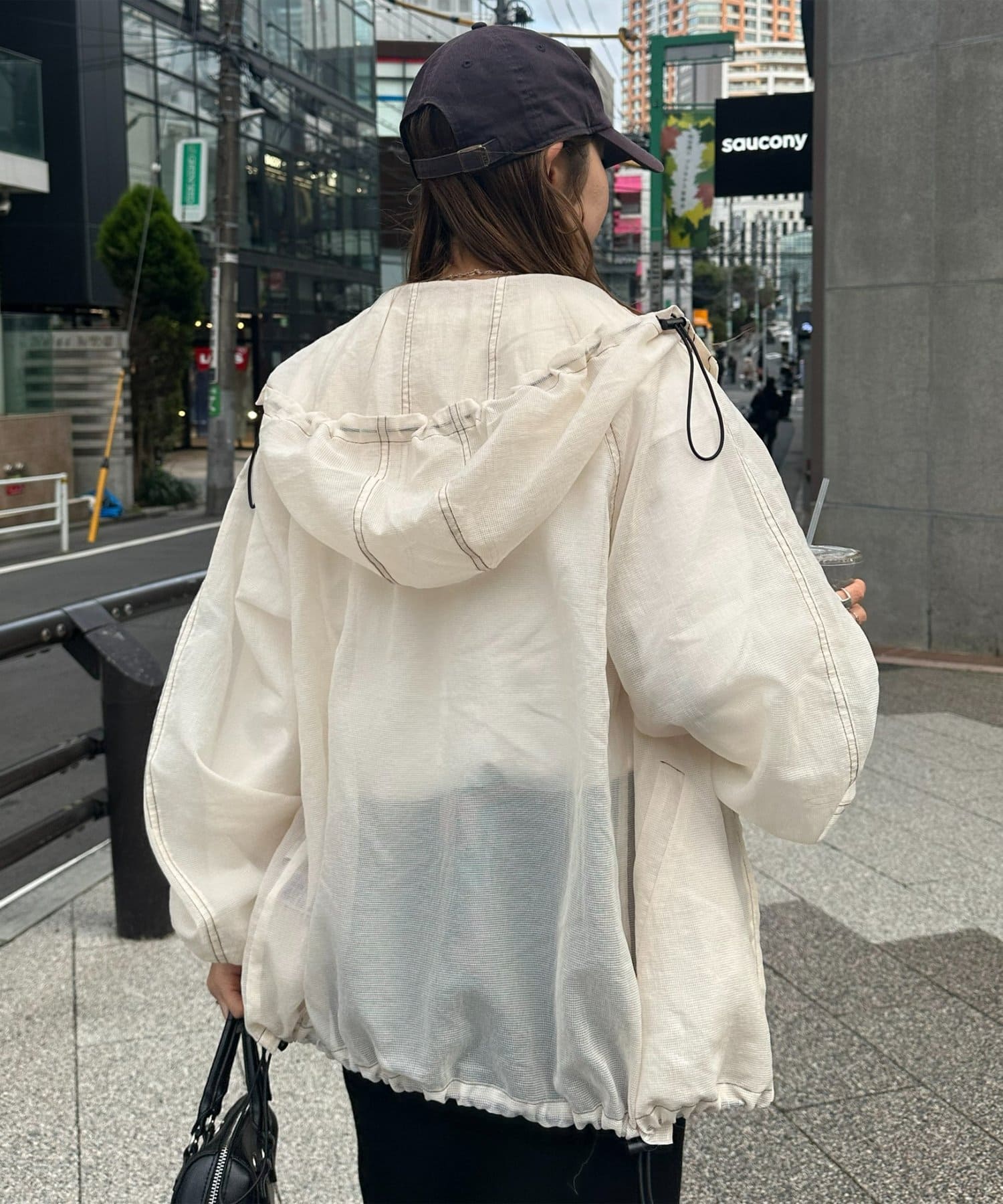 TOP > DISCOAT > レディース > トップス > パーカー/アノラック > 【Enlude】シアーリップフード付シャツブルゾン
