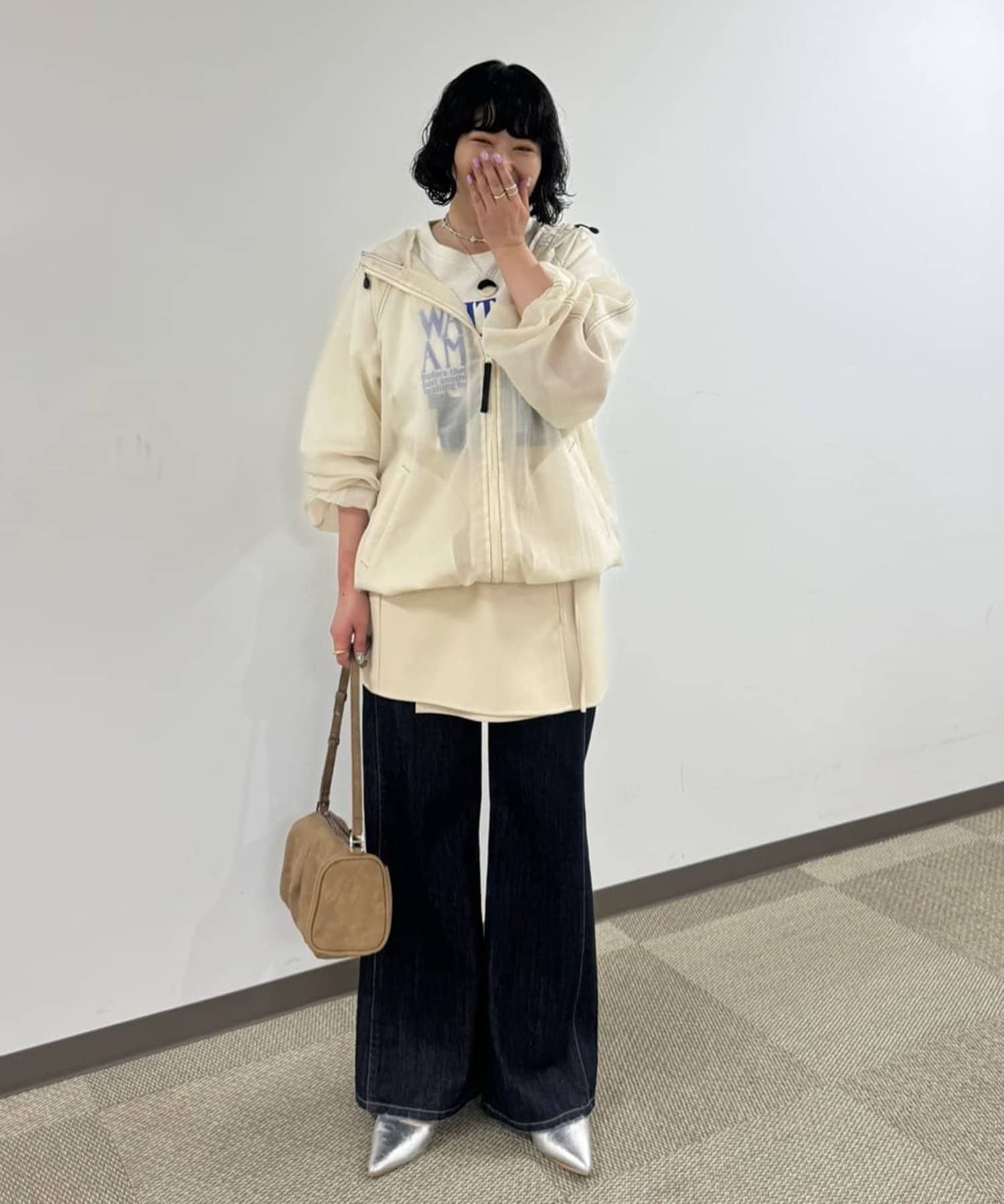 ・薄手なので、キャミソールの上から合わせてメイントップスとし着用するのもおすすめ。