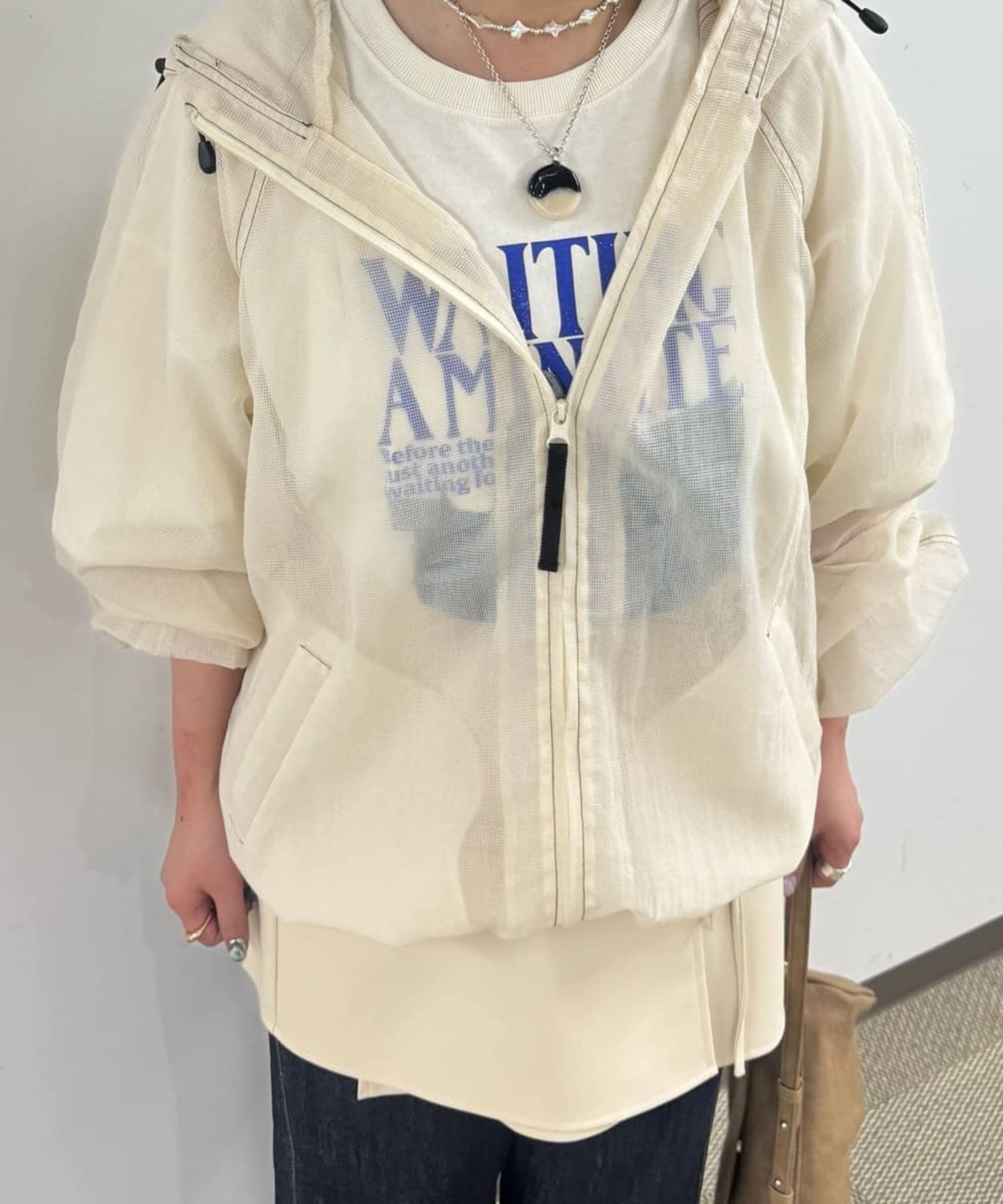 164cmスタッフ:軽くて薄いので、春夏の軽アウターにぴったり★フードも付いているので、キャンプなどのレジャーシーンにも最適です。お子様がいらっしゃる方にもおすすめしたアイテムです。
