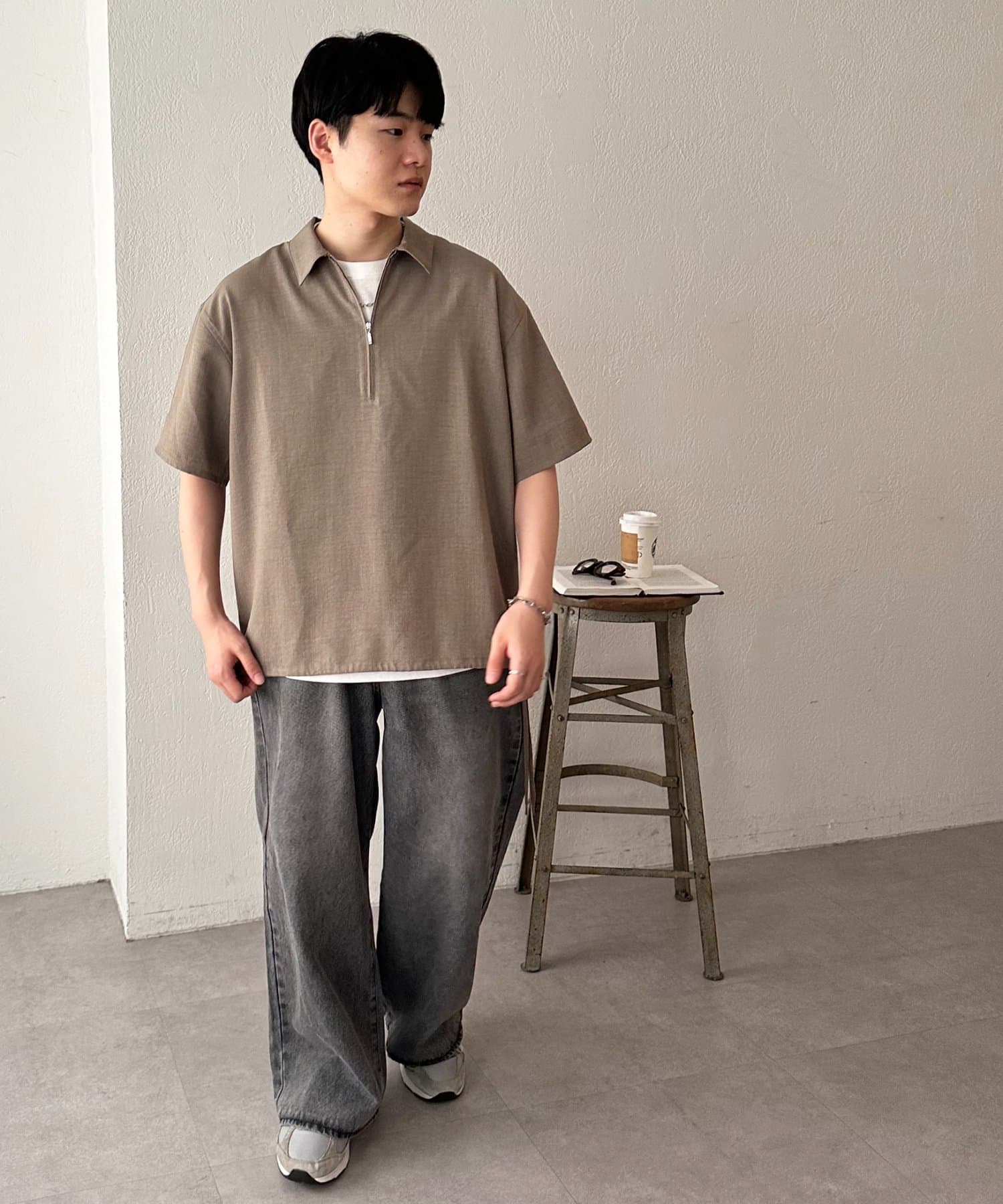 【Enlude/WEB限定】ライトテックリネンハーフジップシャツ《ユニセックス》