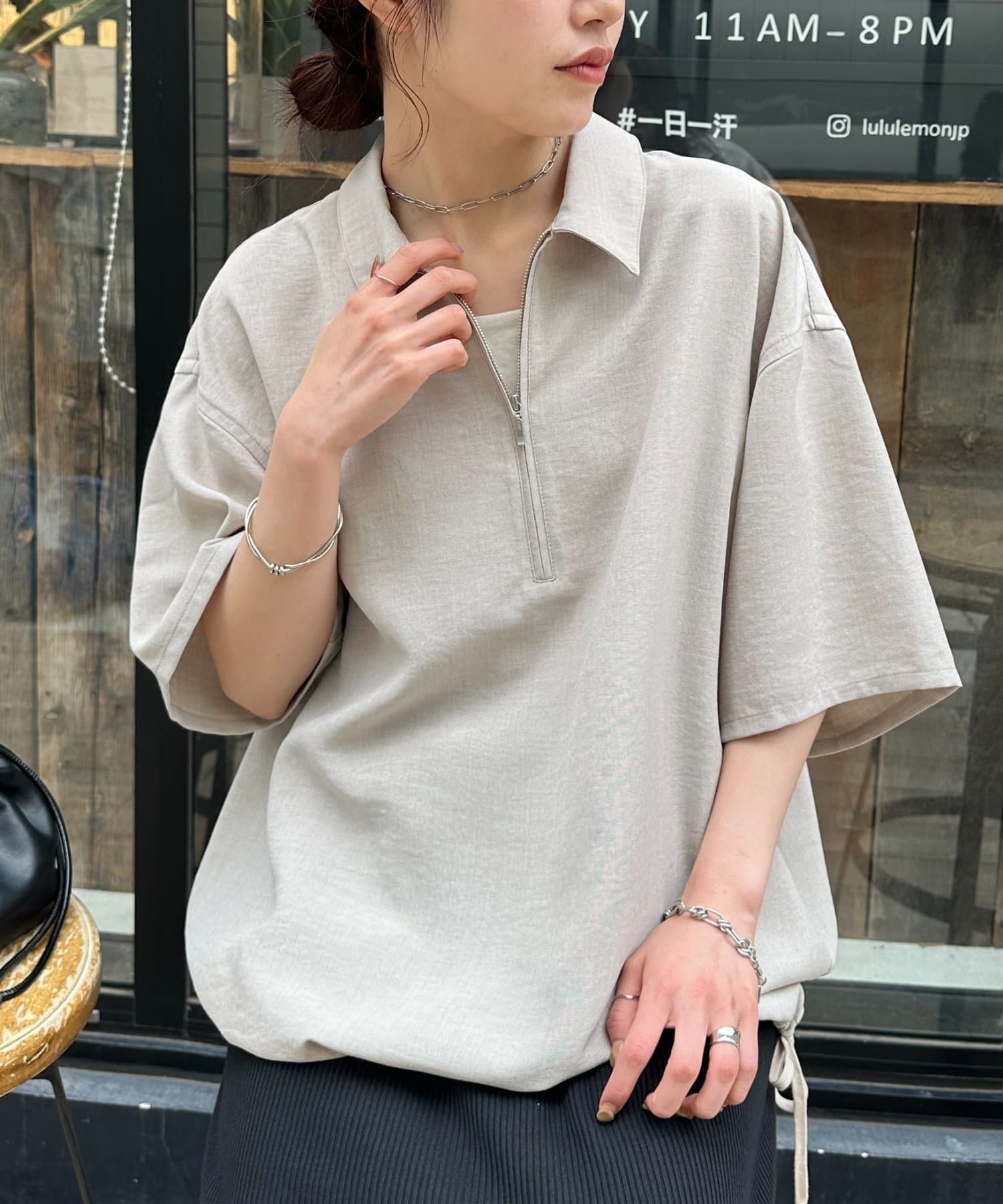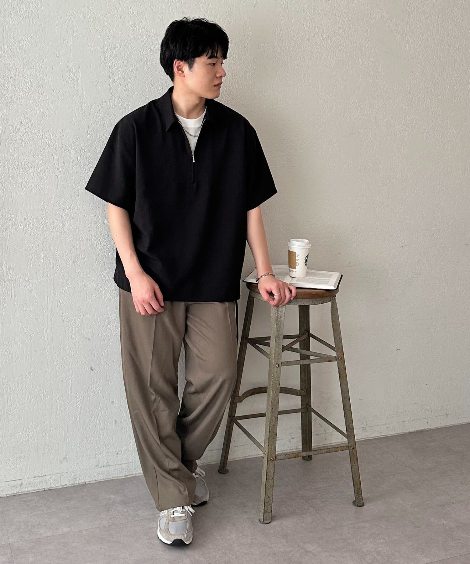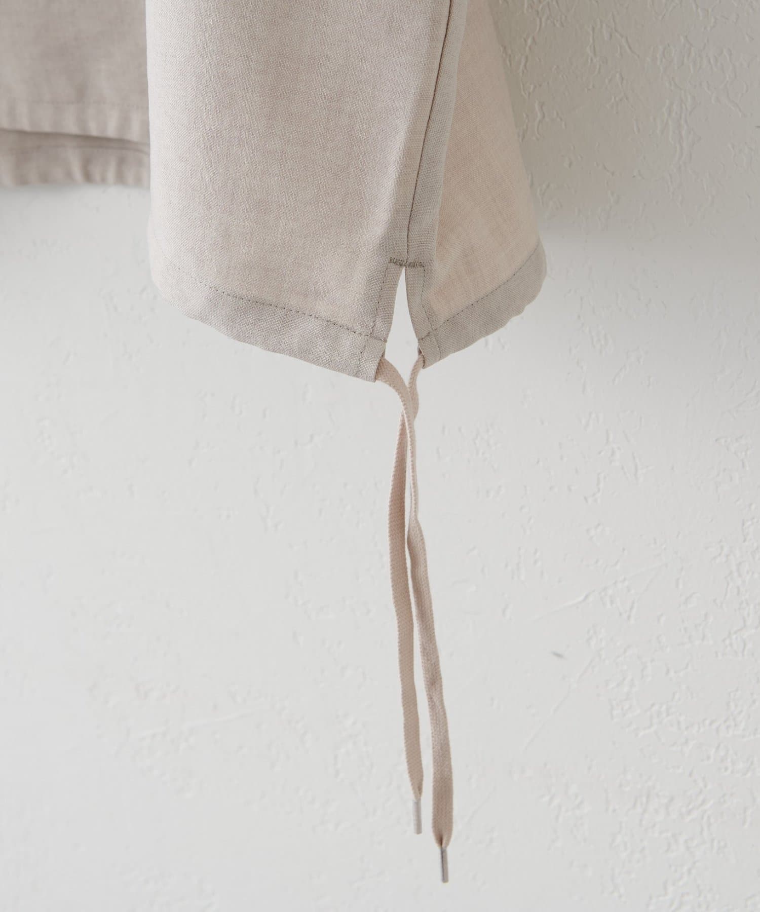 程よいハリ感があり、カジュアルになりすぎず、きちんと感を演出してくれます。シンプルなデザインながら、ハーフジップ仕様がさりげないアクセントに。春夏にぴったりの軽やかな着心地で、暑い日も快適に過ごせます。裾に紐が施されており、絞り具合でシルエットを変えることもできます!