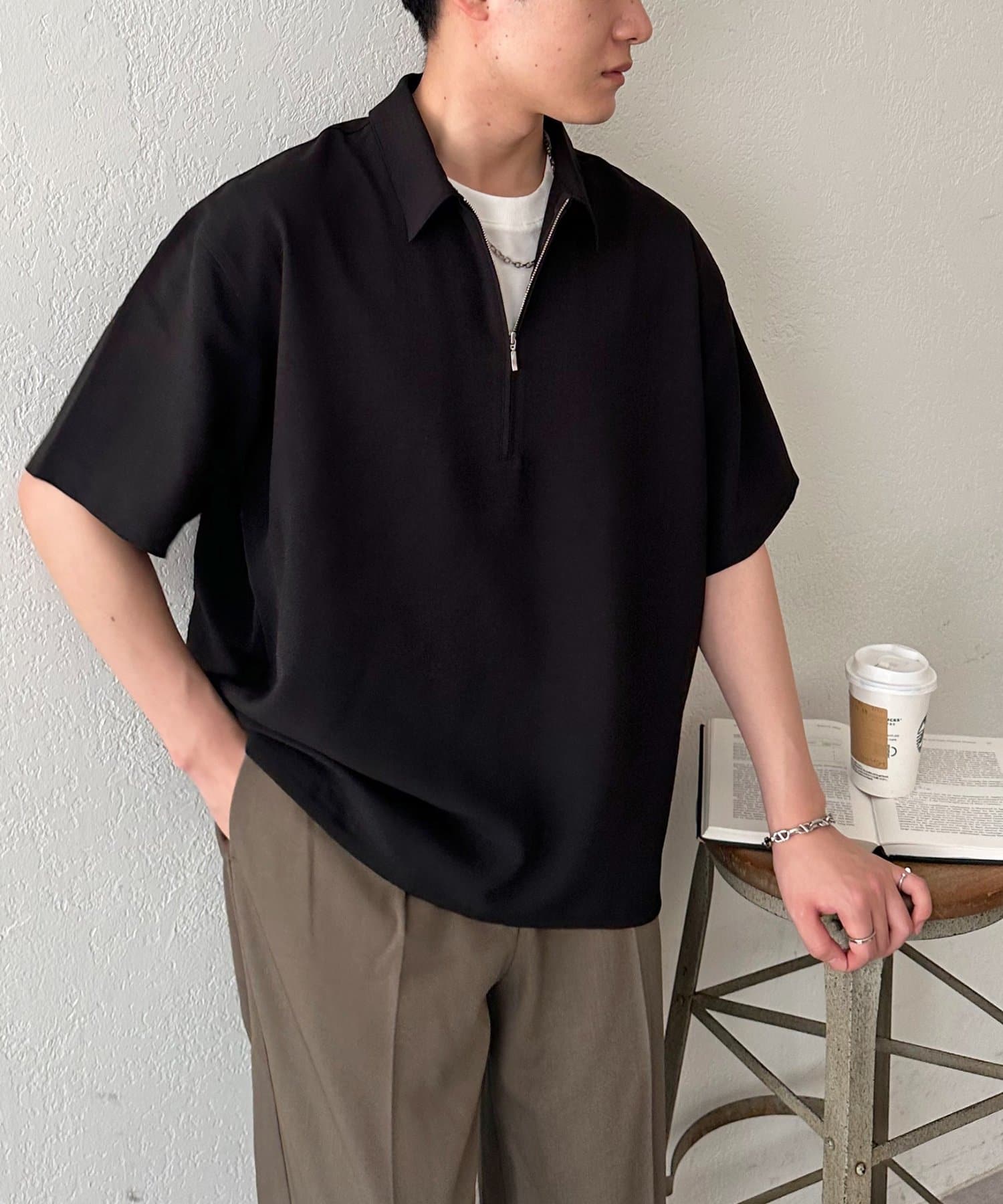 169cmメンズスタッフ:ジップを開けて着用すると抜け感がでるのでおすすめです!シンプルなデザインなので、合わせるアイテムを選ばないのも嬉しいポイント◎