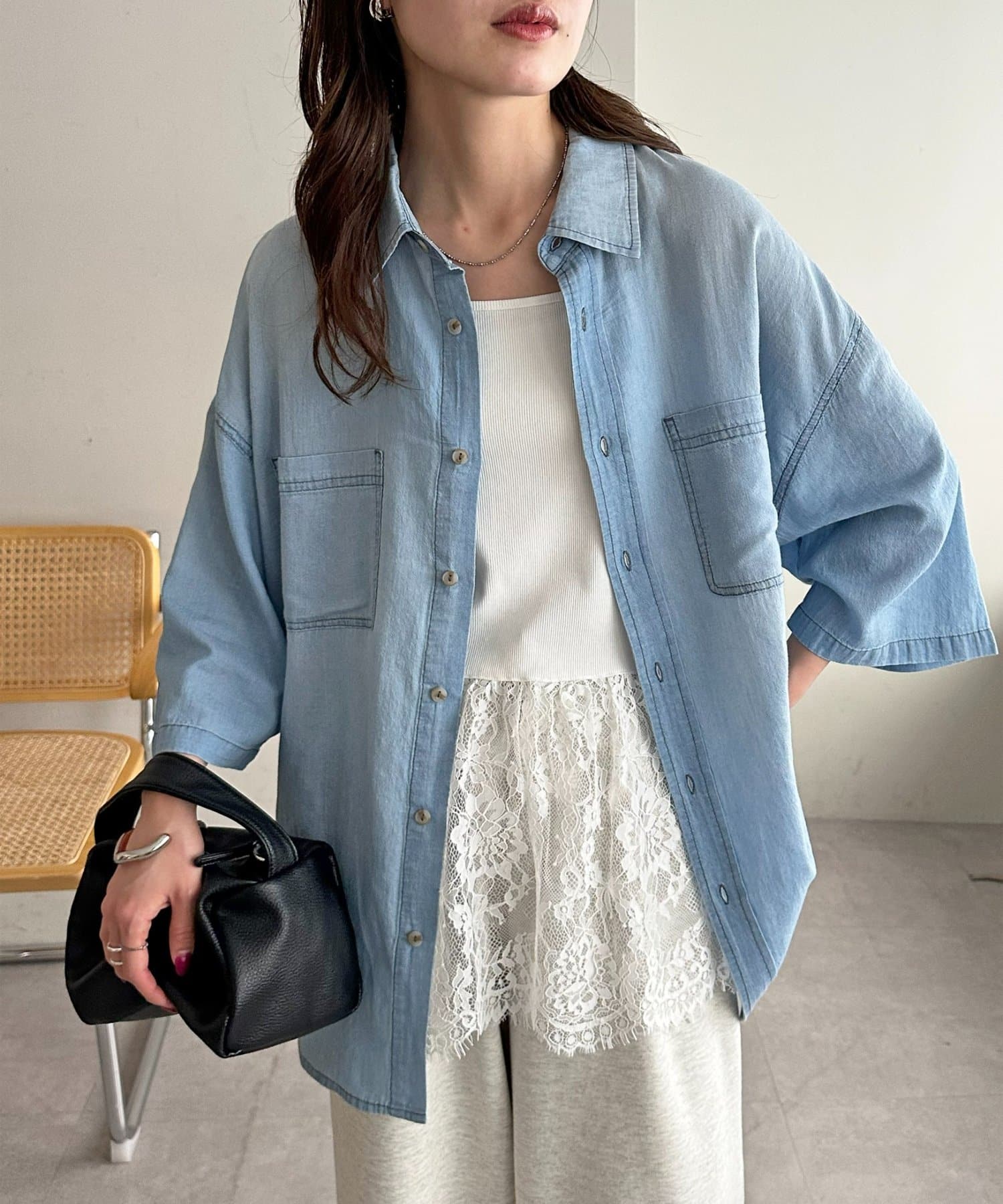 【Enlude】2.3OZシアシャンブレー半袖シャツ《ユニセックス》