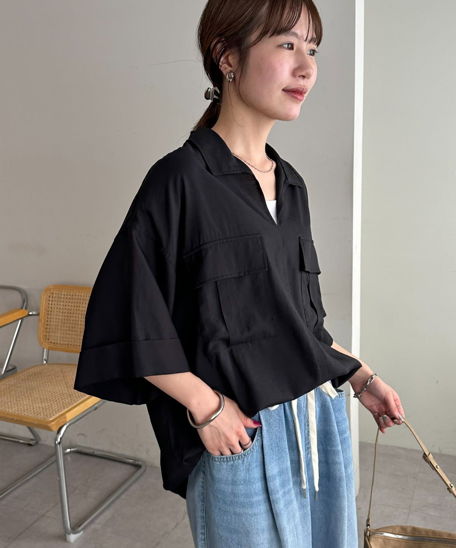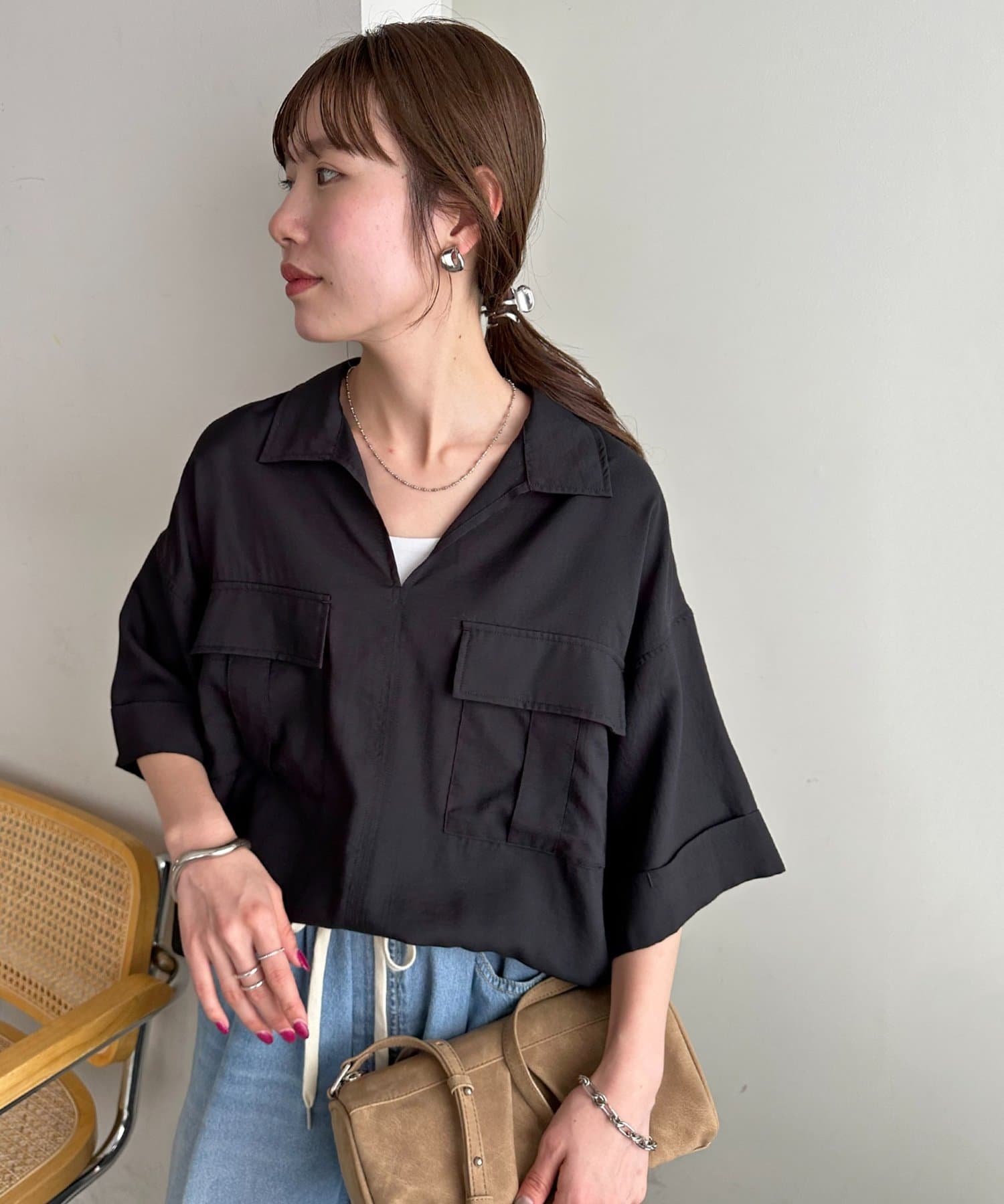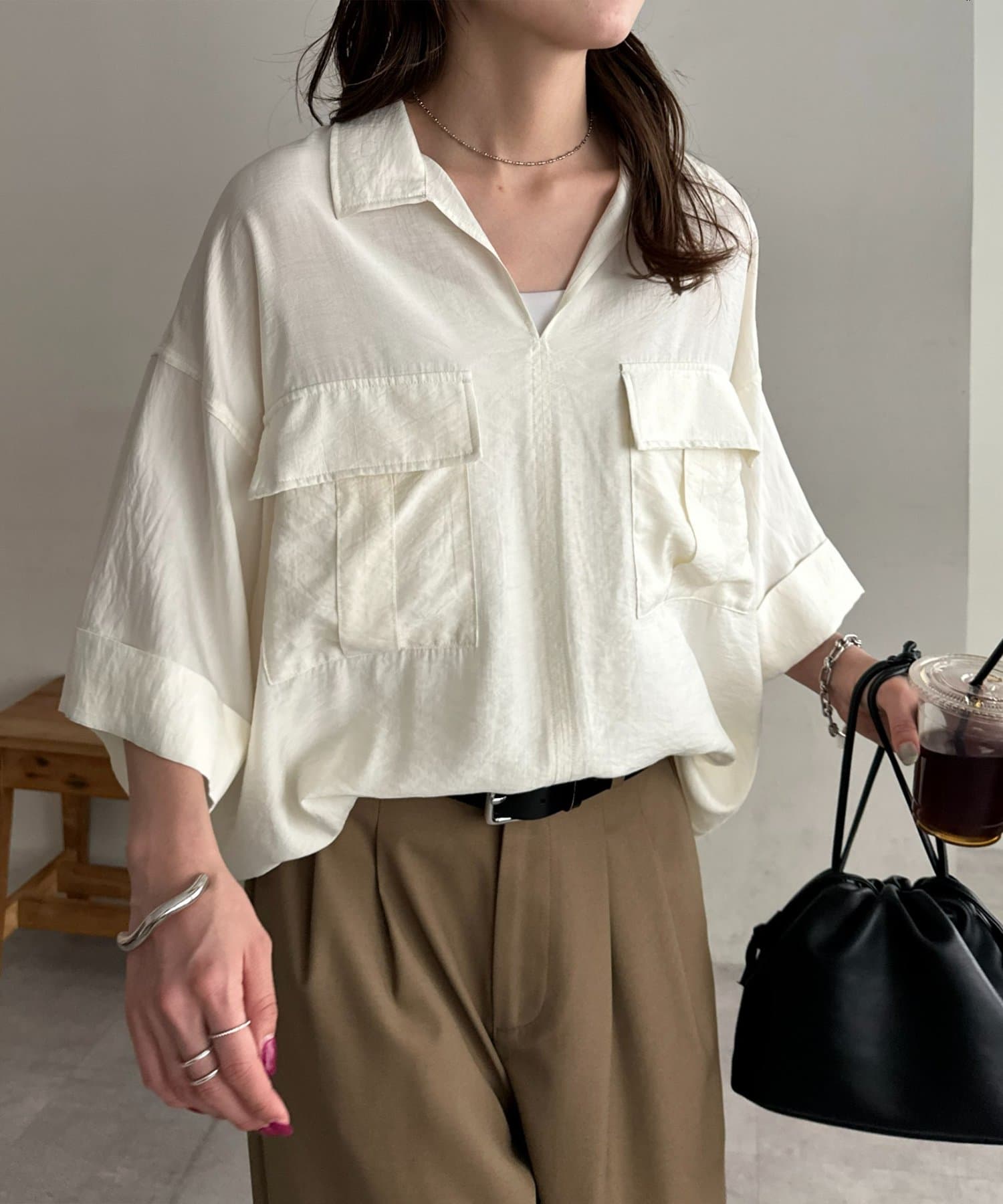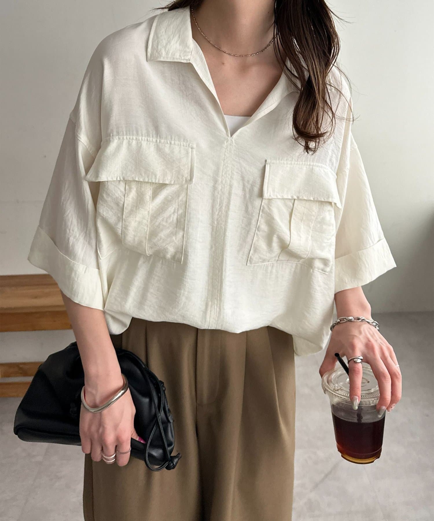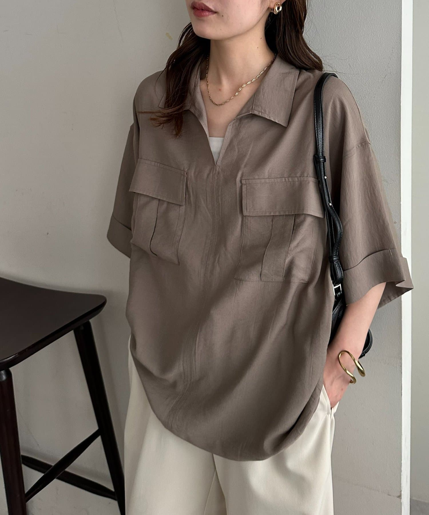 【Enlude】リネンライクダブルポケットスキッパーシャツ《ユニセックス》