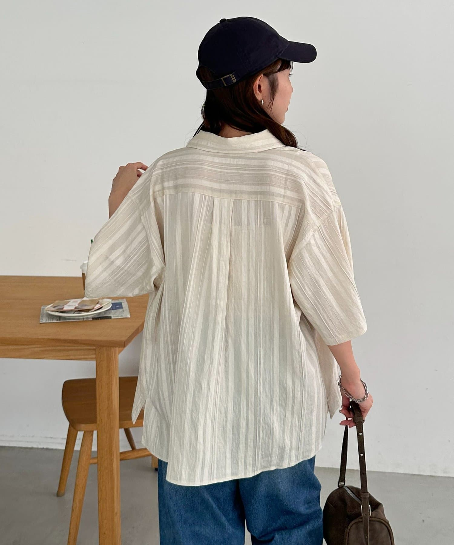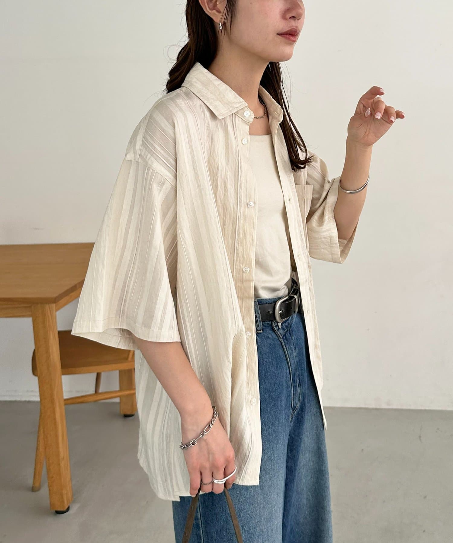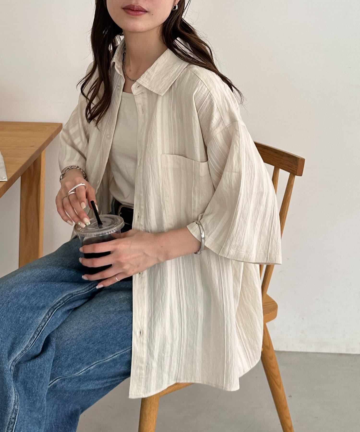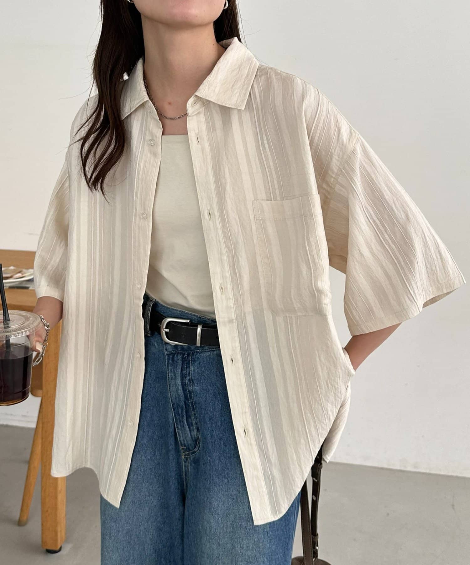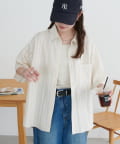 TOP > DISCOAT > レディース > トップス > シャツ/ブラウス(ボタン) > 【Enlude】ジャガードストライプ半袖オーバーシャツ《ユニセックス》