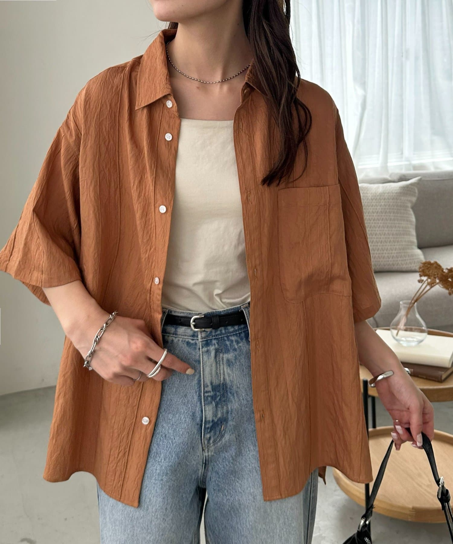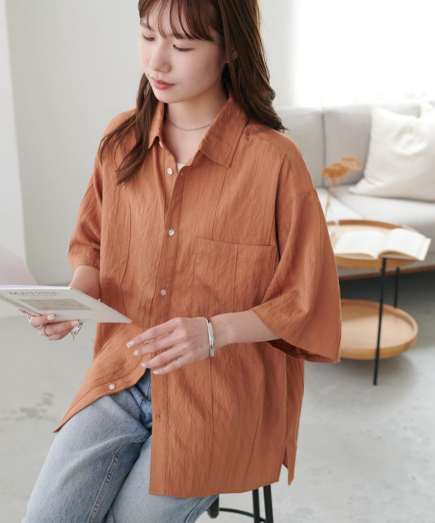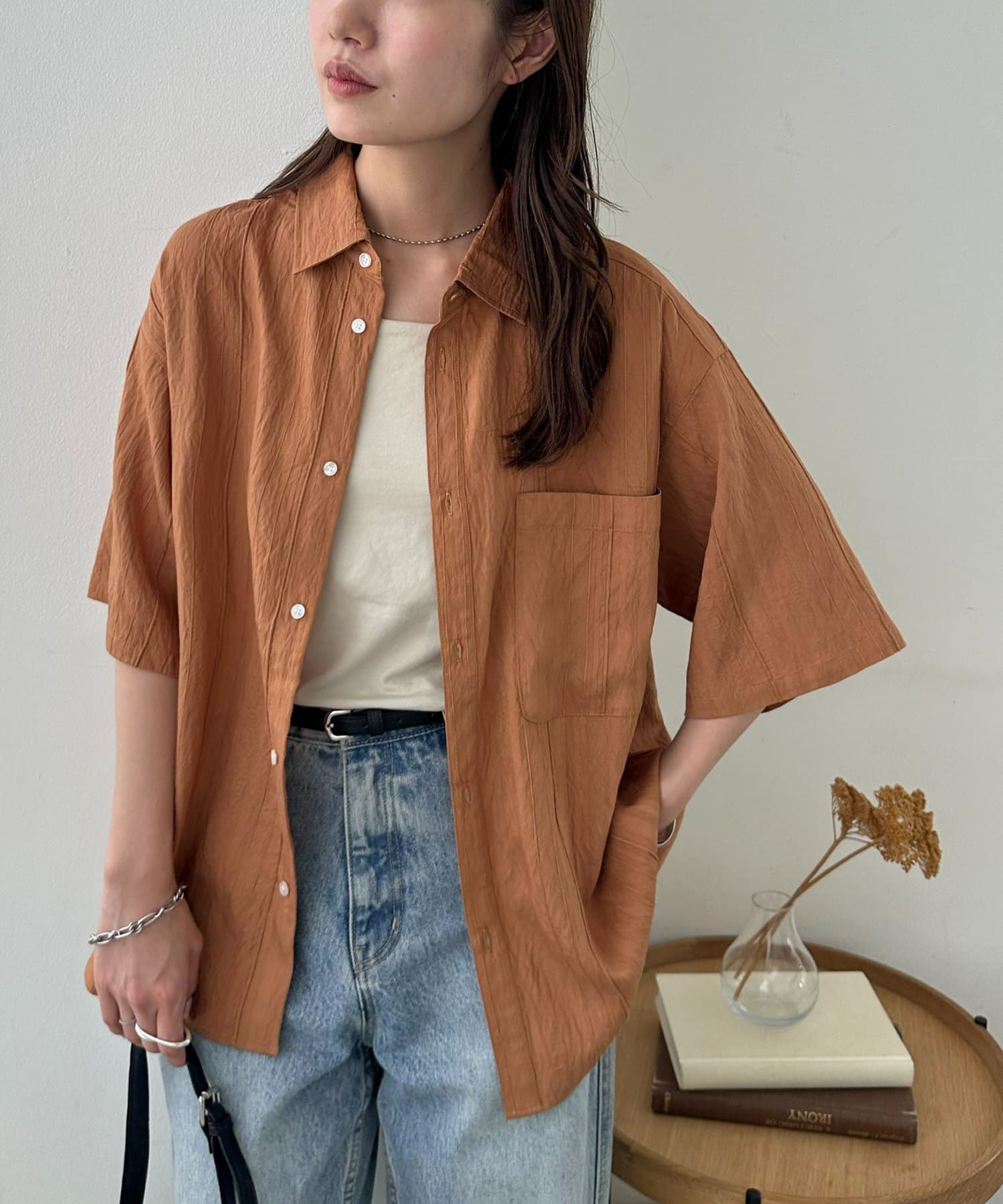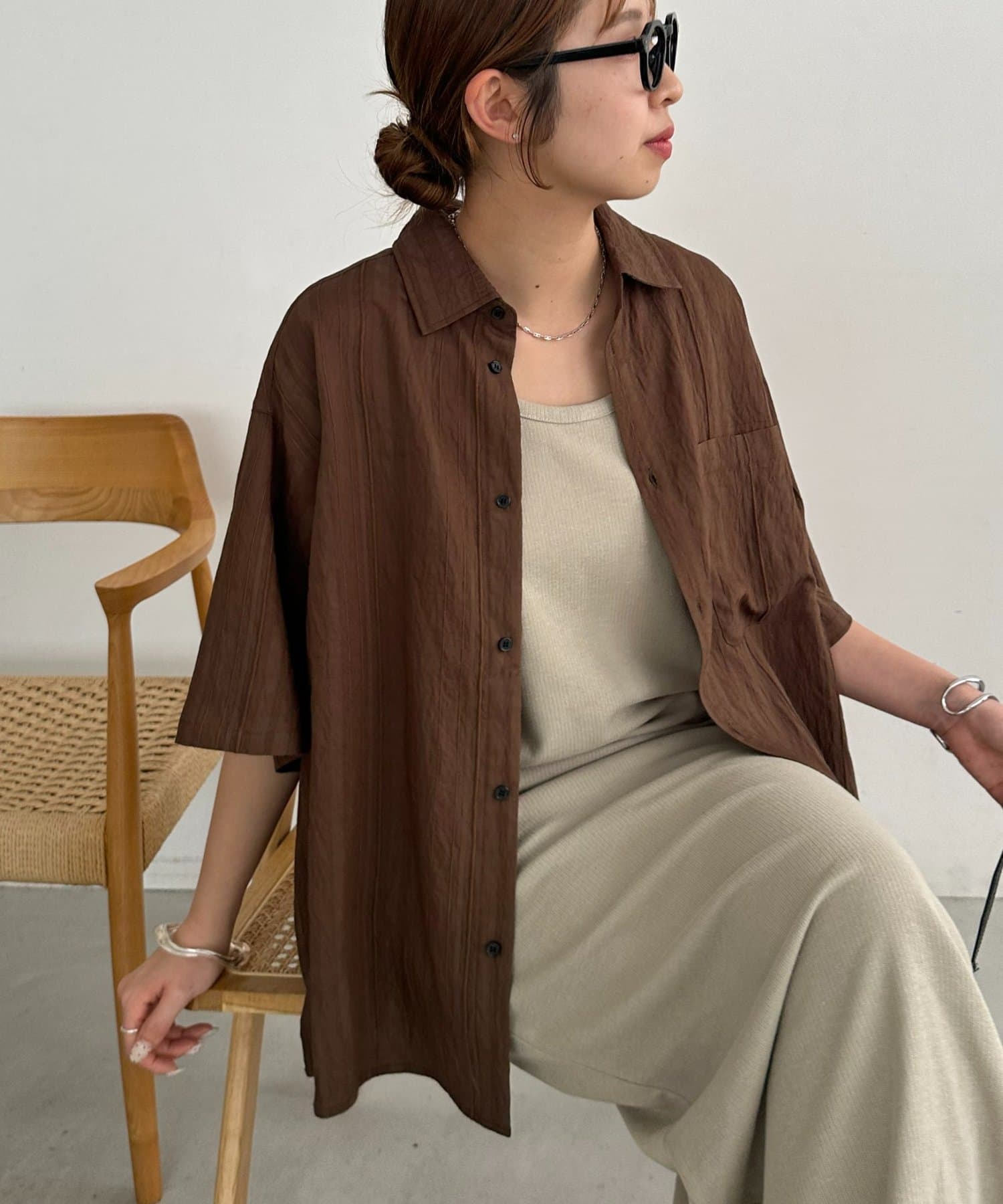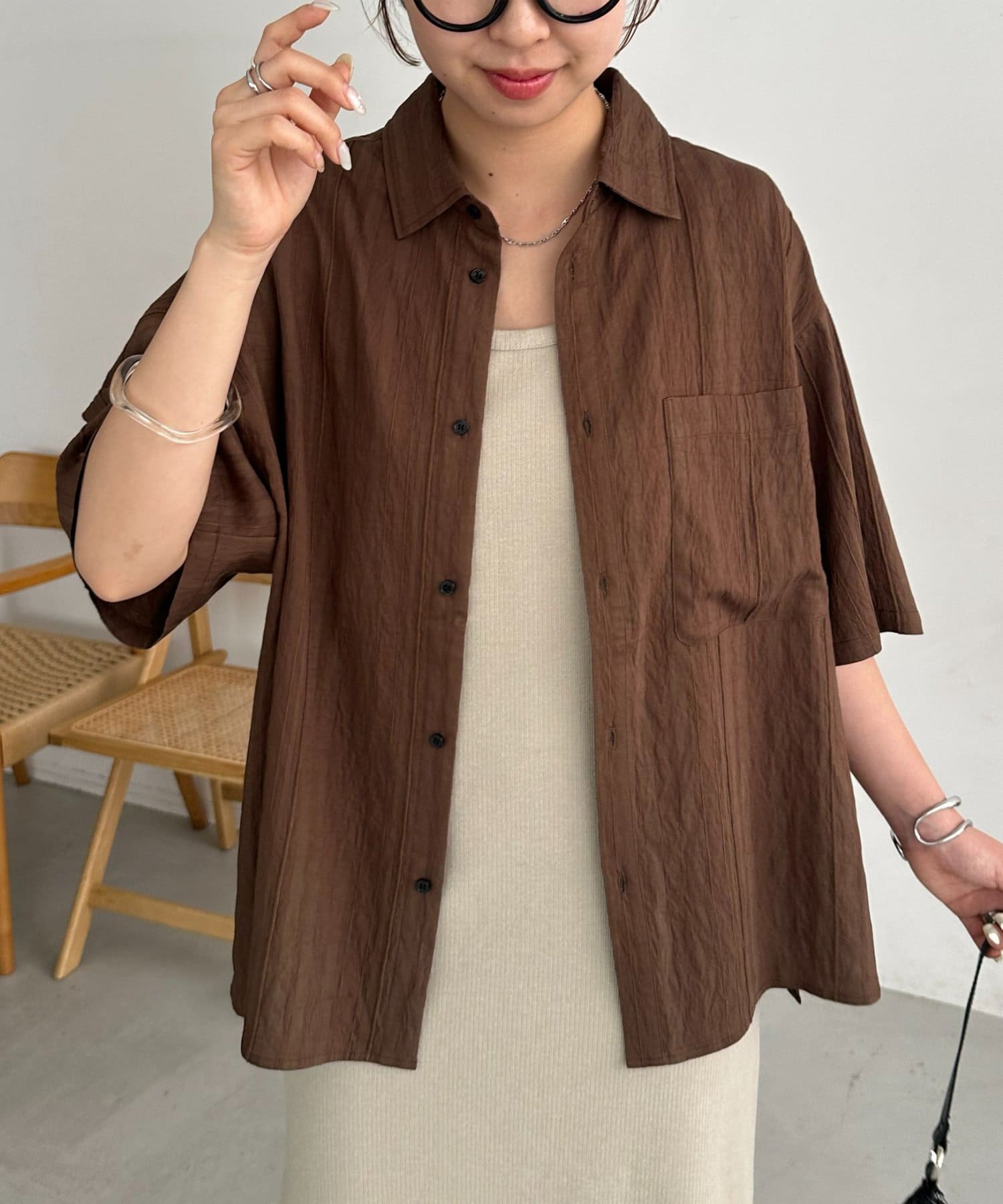 TOP > DISCOAT > レディース > トップス > シャツ/ブラウス(ボタン) > 【Enlude】ジャガードストライプ半袖オーバーシャツ《ユニセックス》