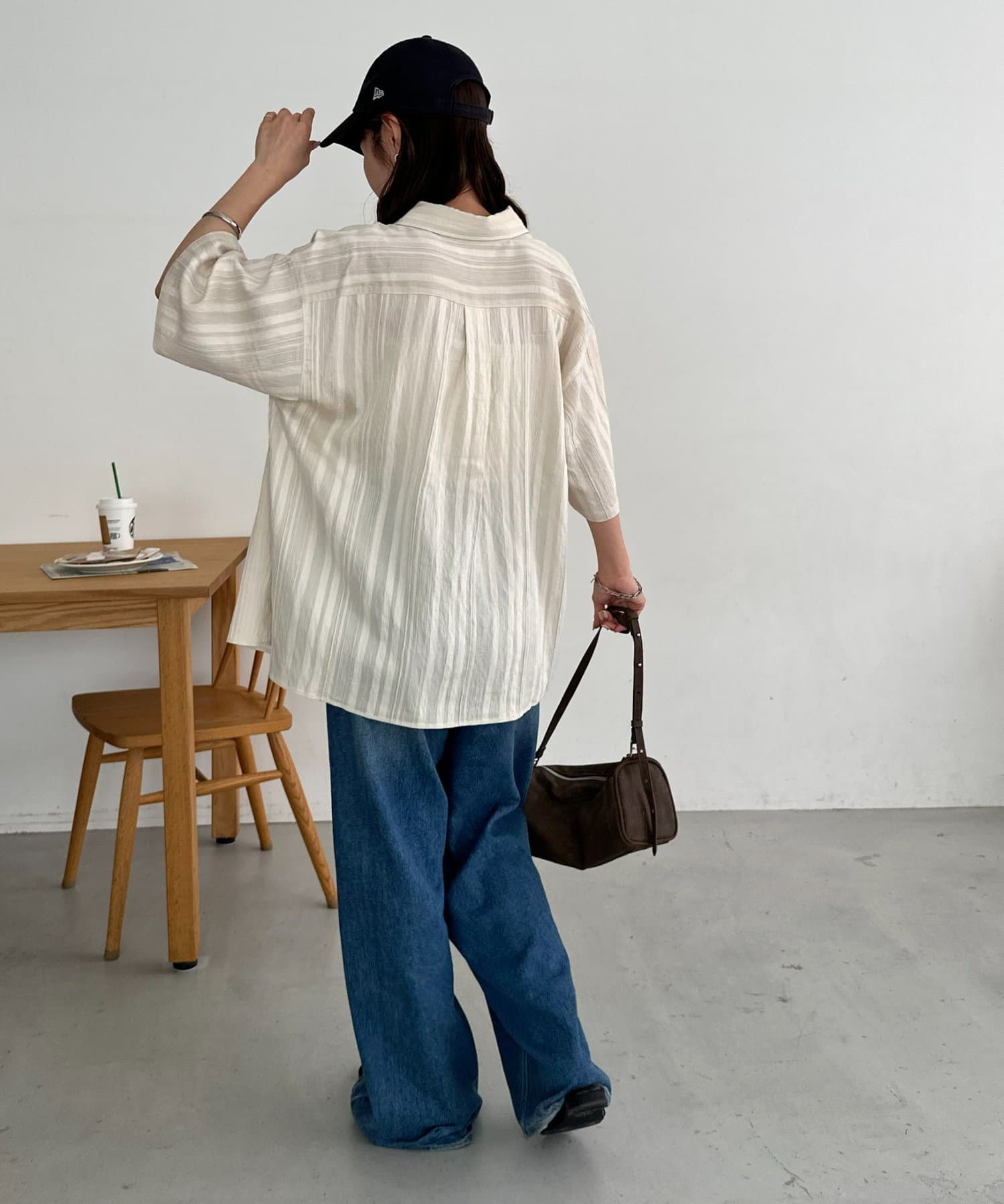 【Enlude】ジャガードストライプ半袖オーバーシャツ《ユニセックス》