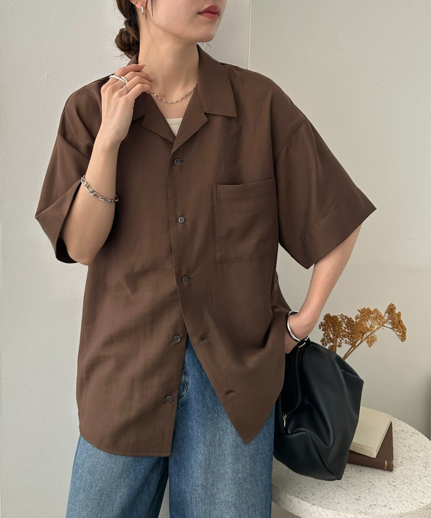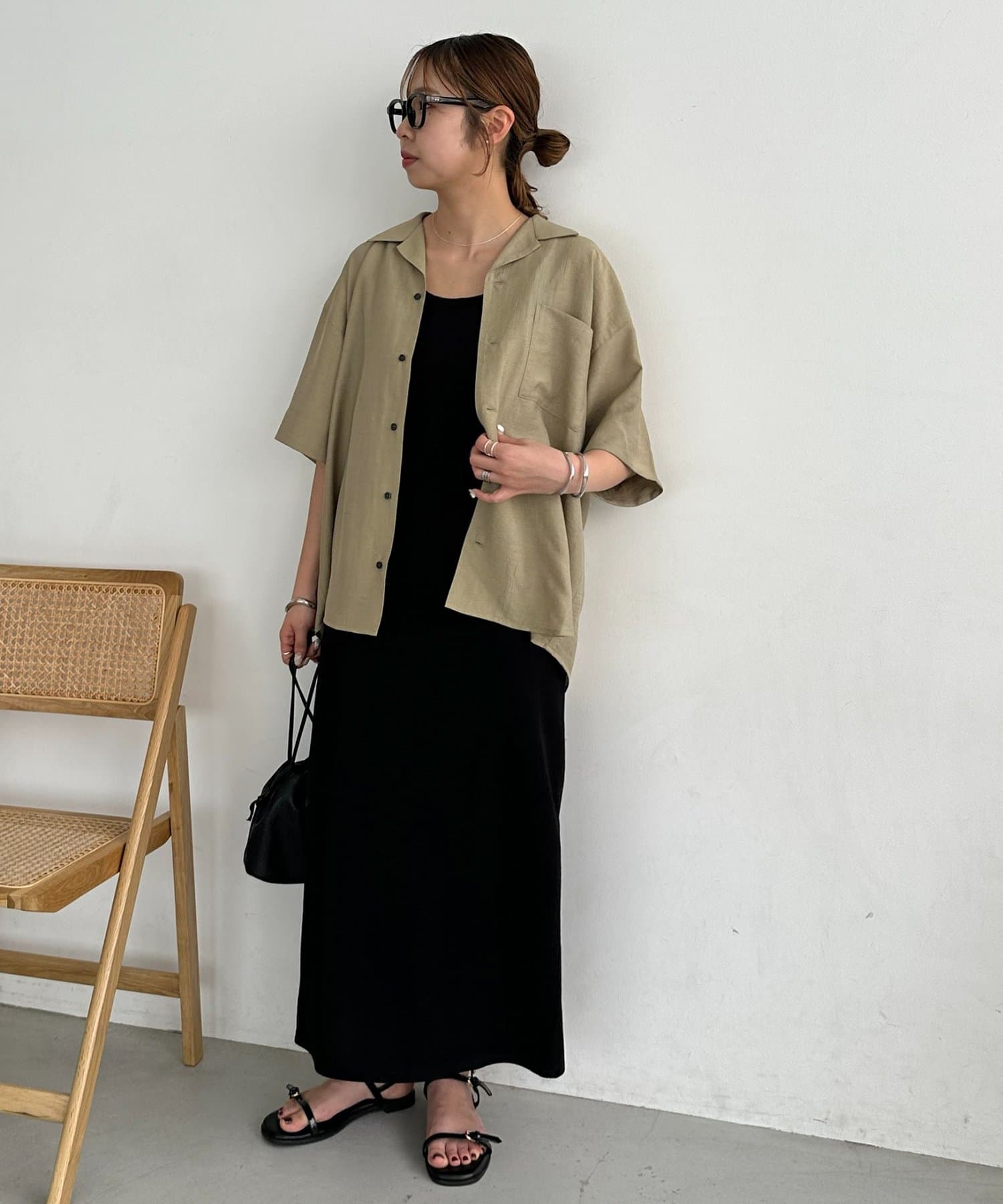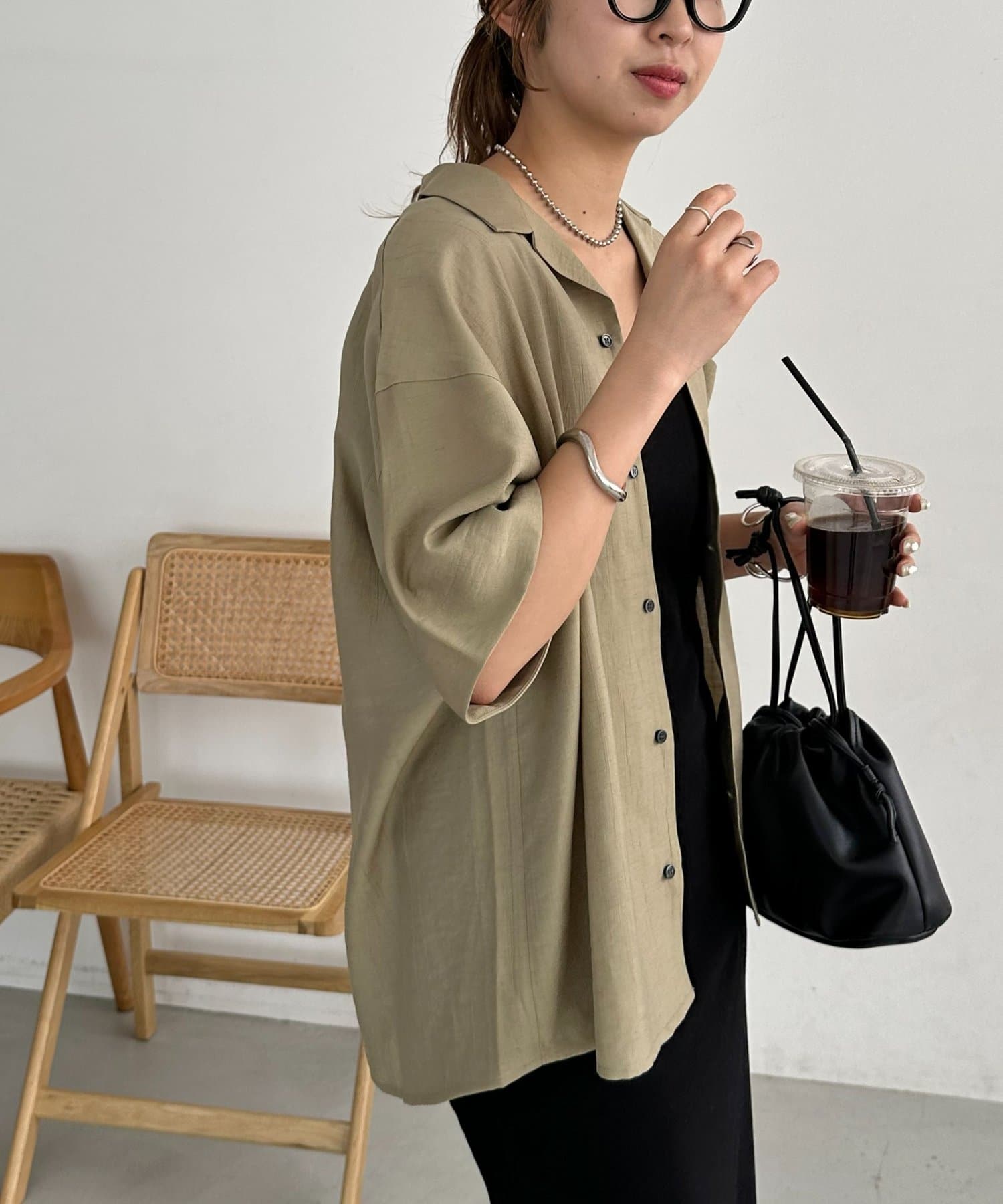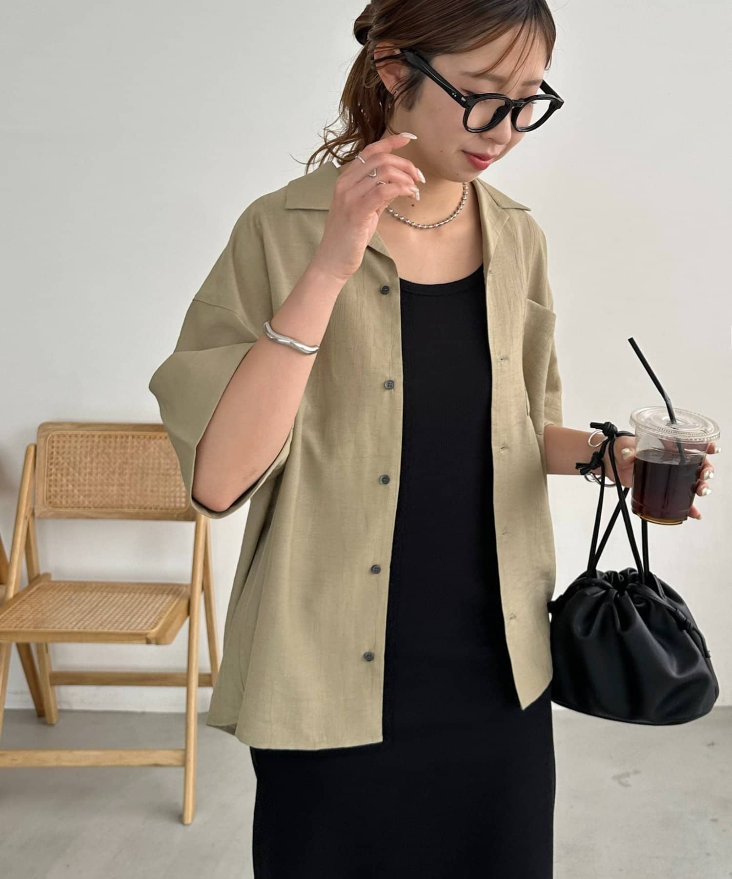 【Enlude】リネンライク開襟オーバーシャツ《ユニセックス》
