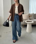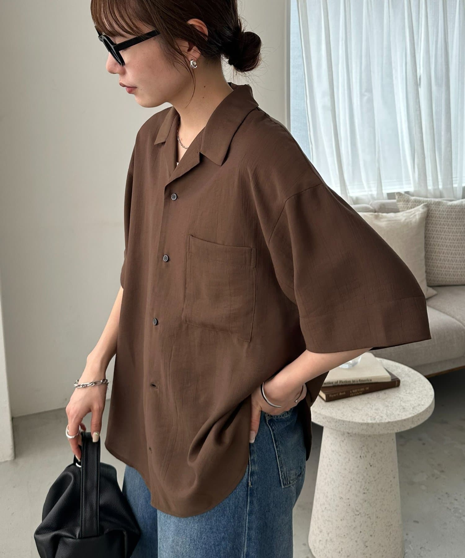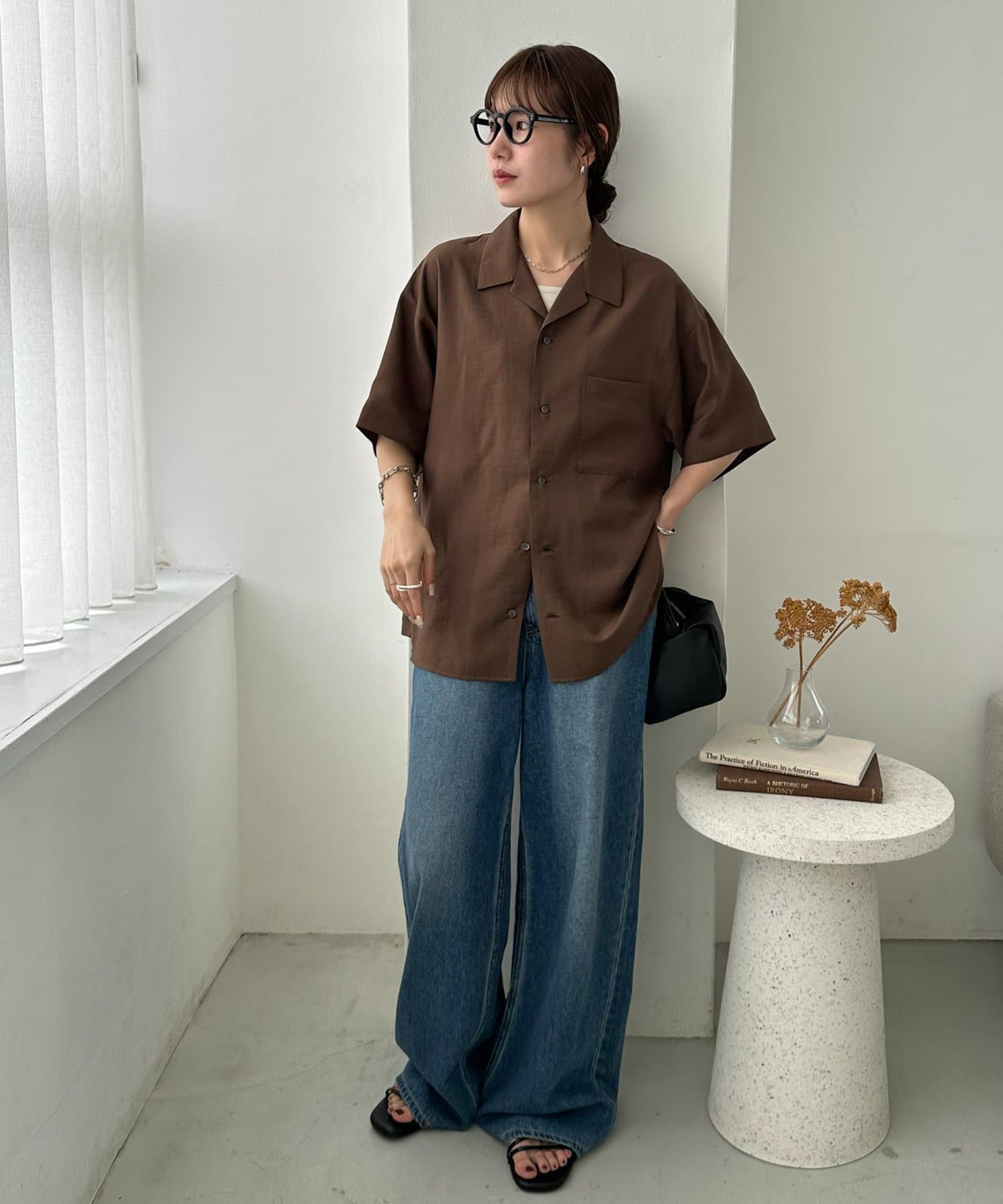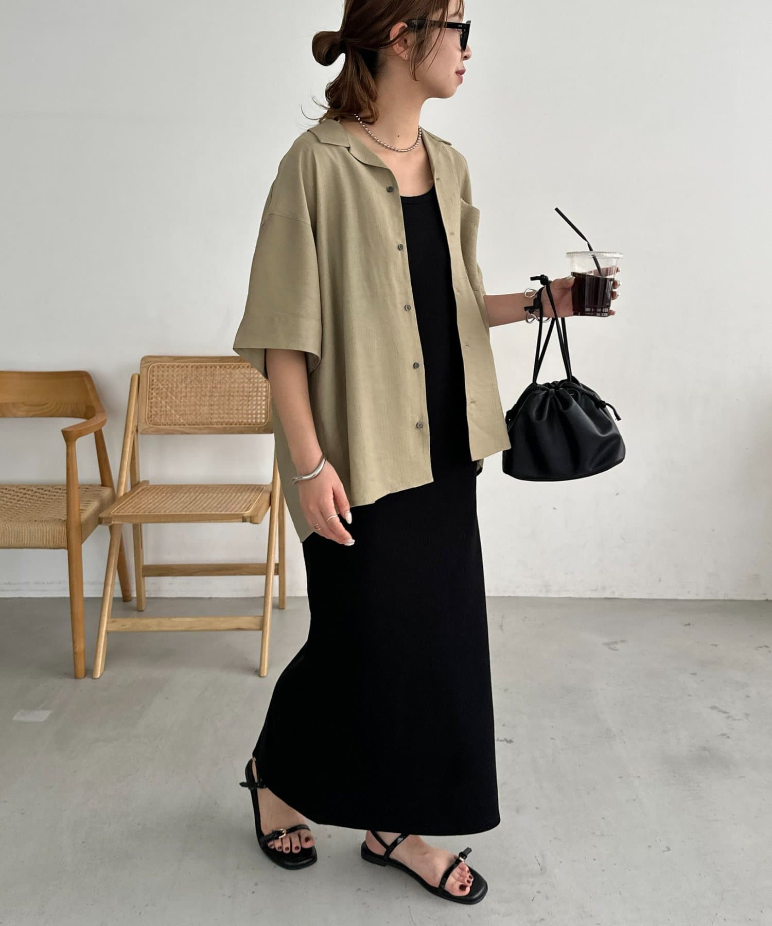 【Enlude】リネンライク開襟オーバーシャツ《ユニセックス》