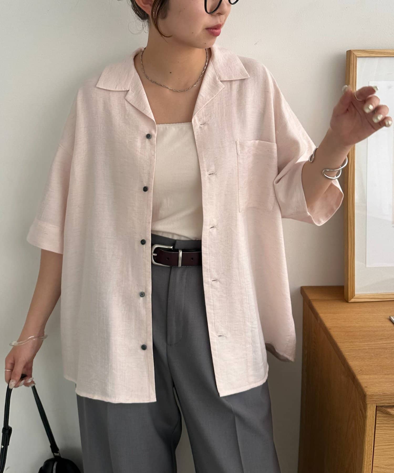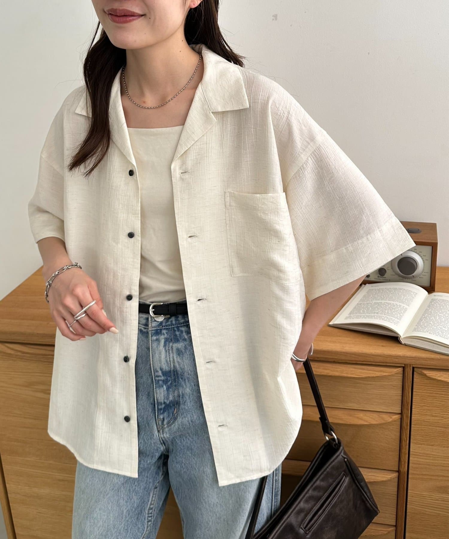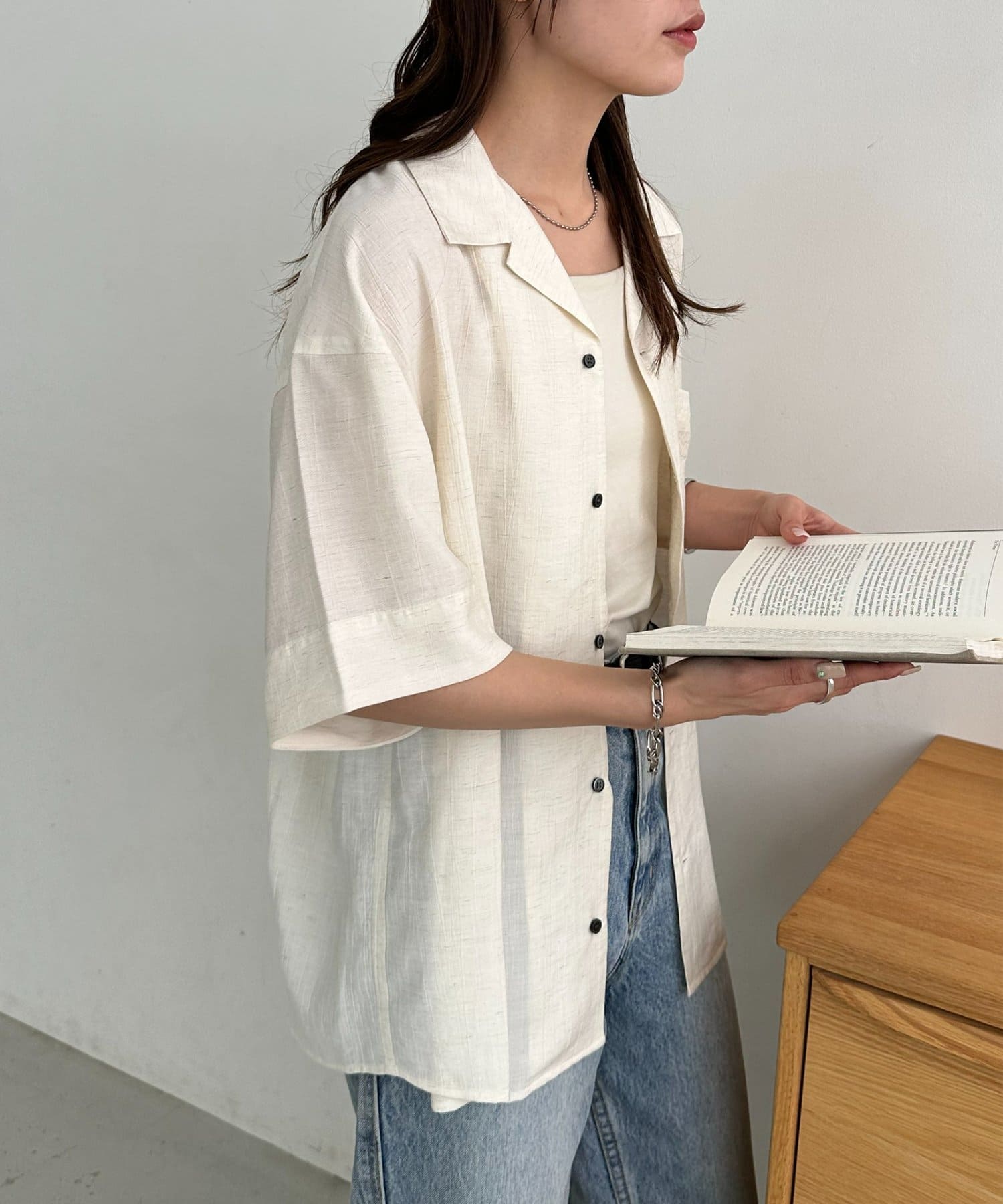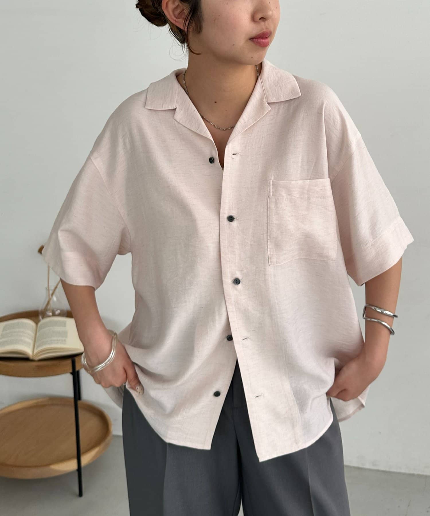 TOP > DISCOAT > レディース > トップス > シャツ/ブラウス(ボタン) > 【Enlude】リネンライク開襟オーバーシャツ《ユニセックス》