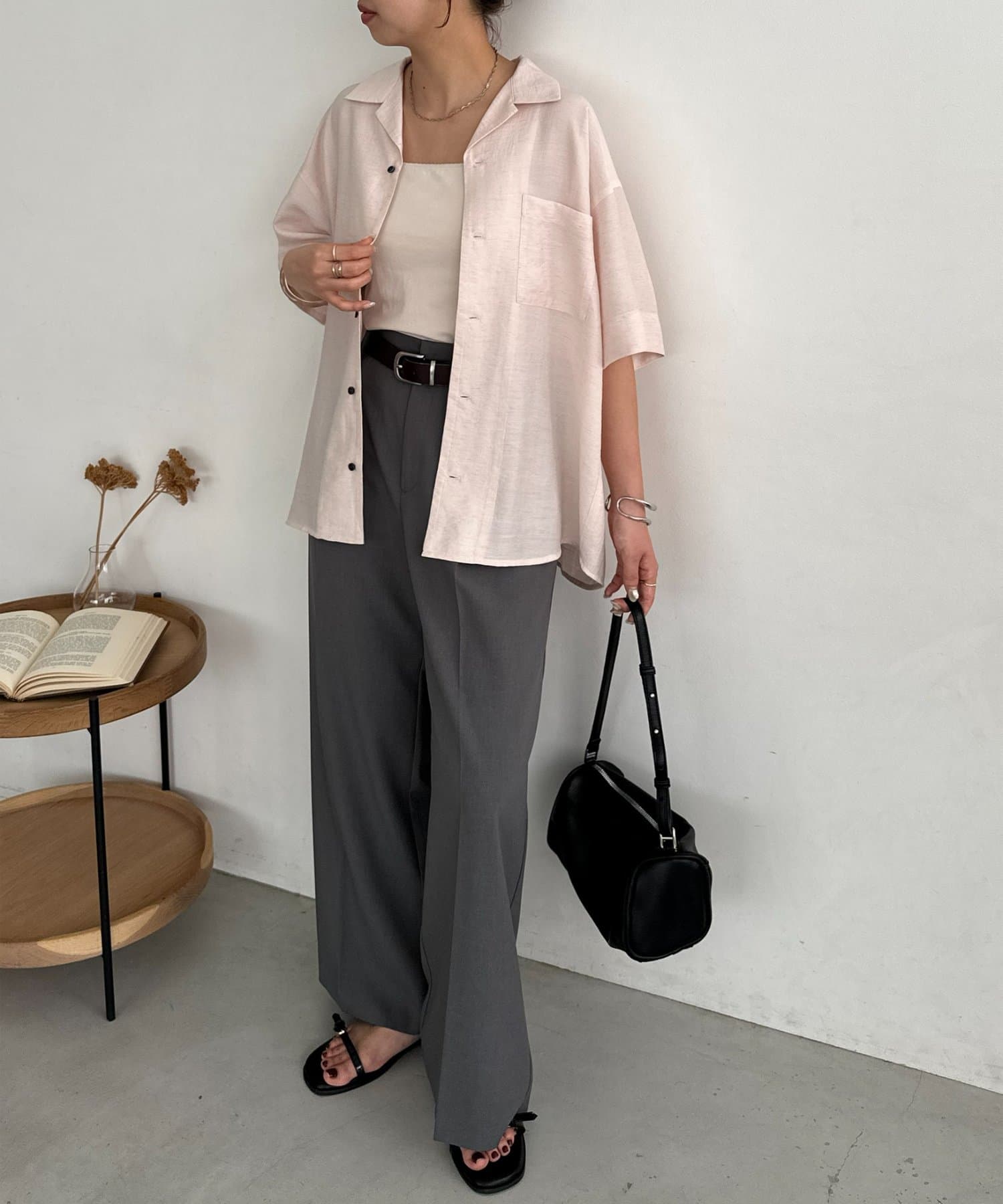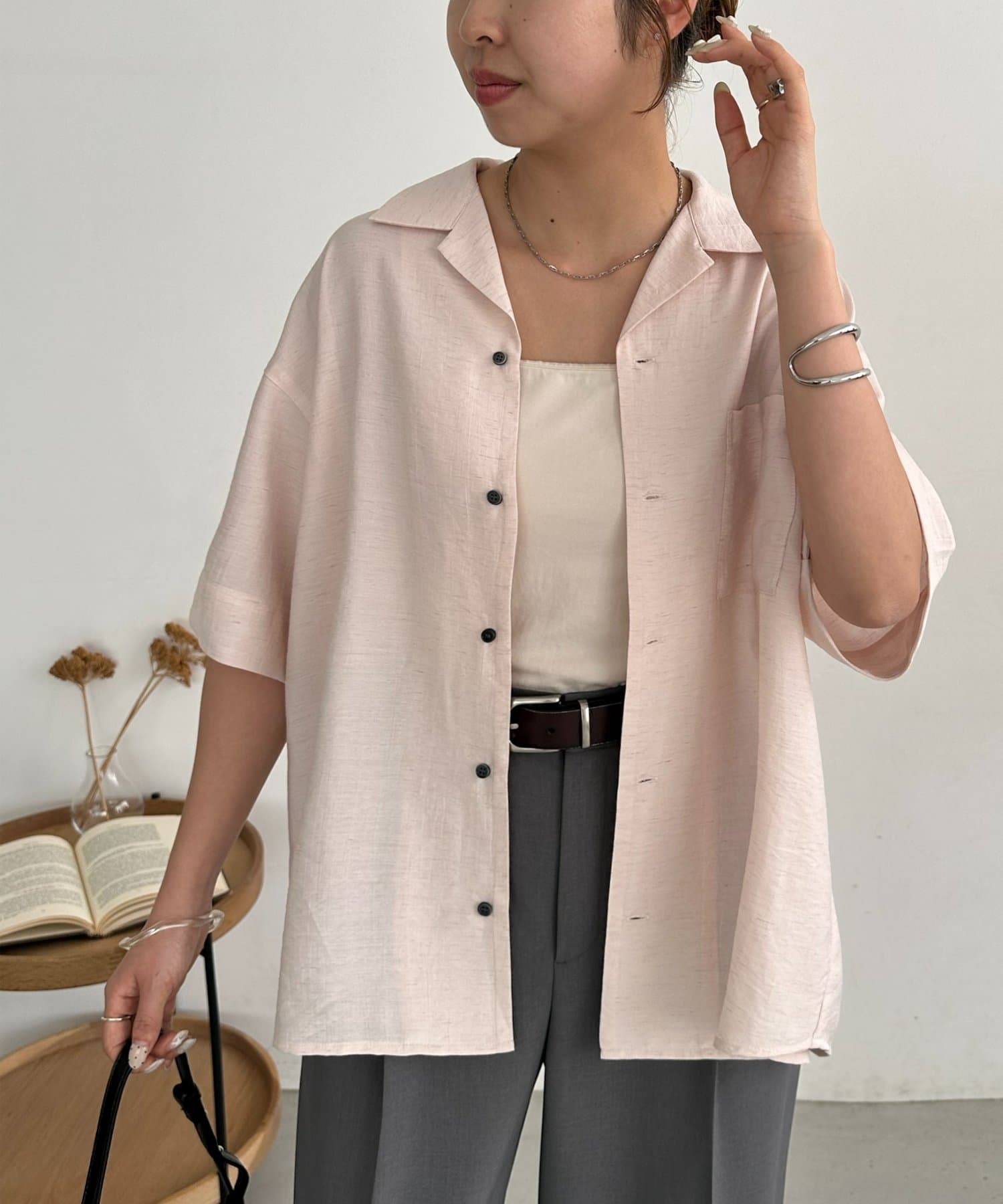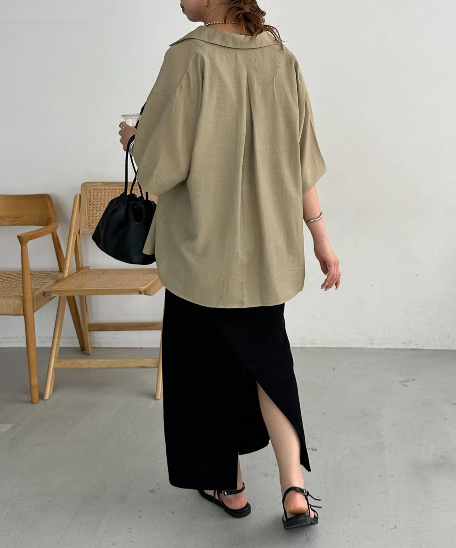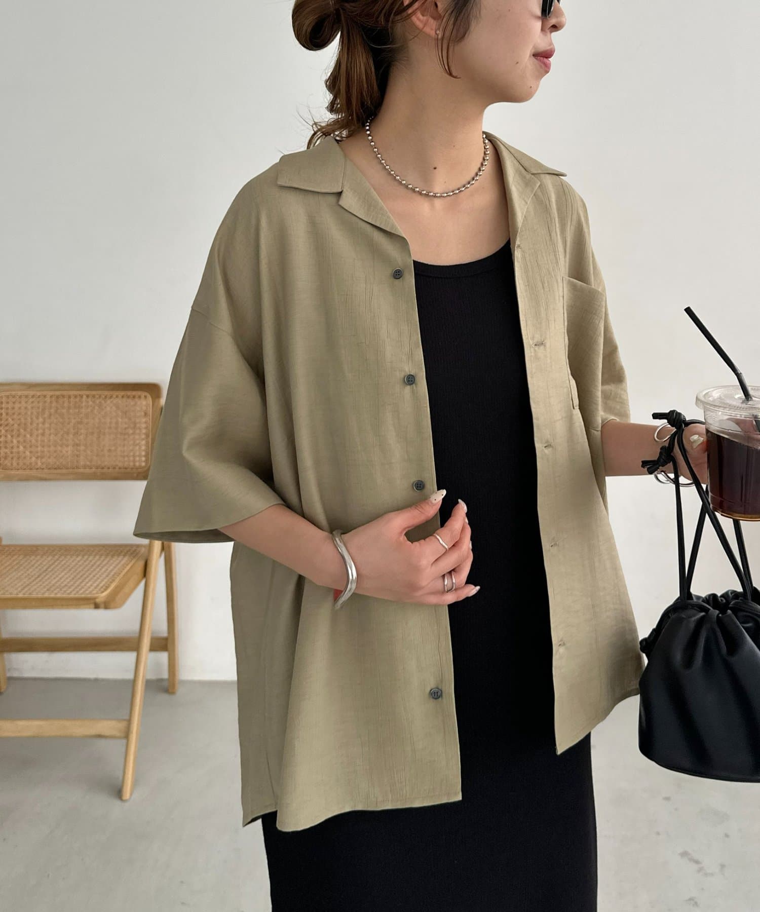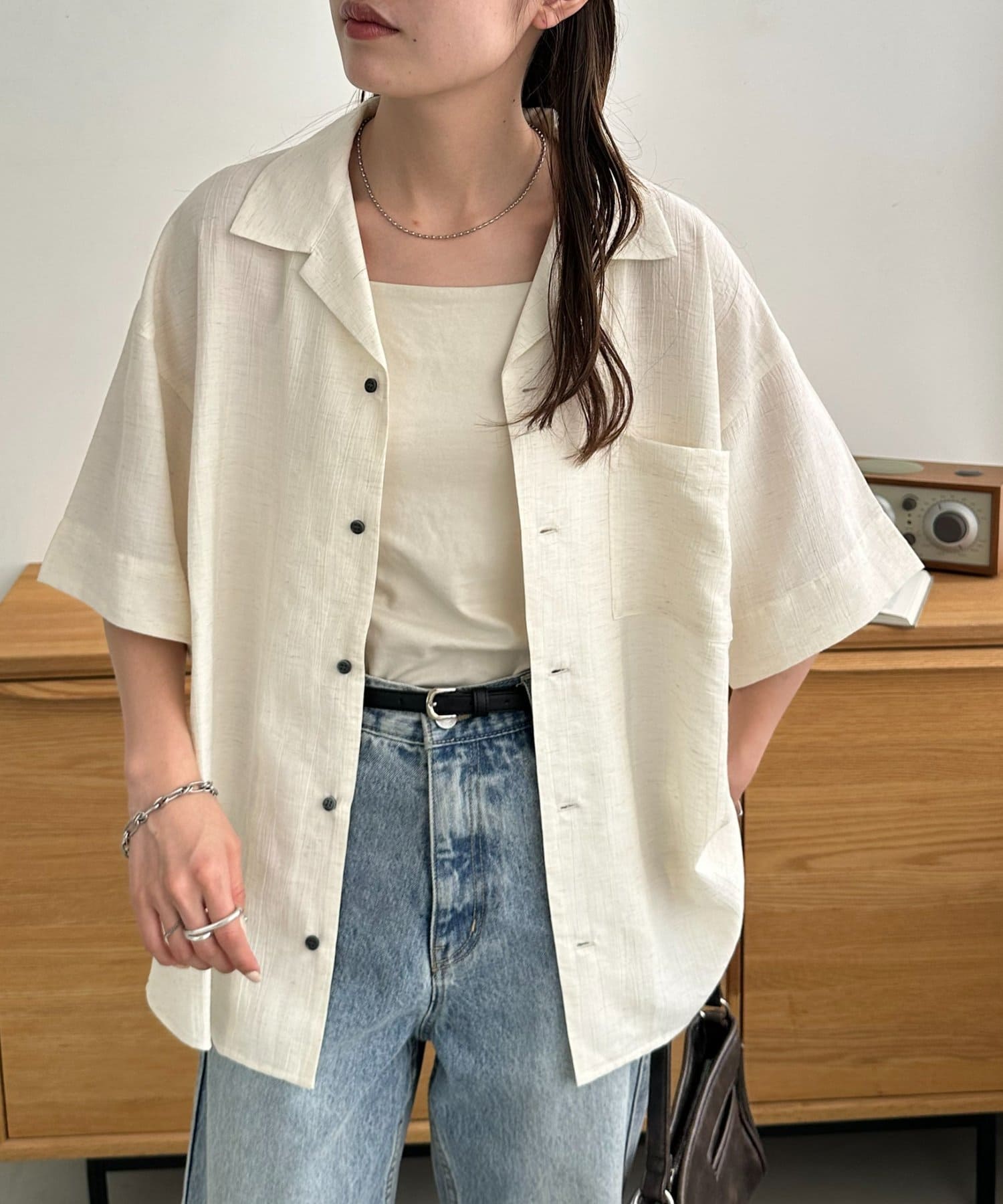 TOP > DISCOAT > レディース > トップス > シャツ/ブラウス(ボタン) > 【Enlude】リネンライク開襟オーバーシャツ《ユニセックス》