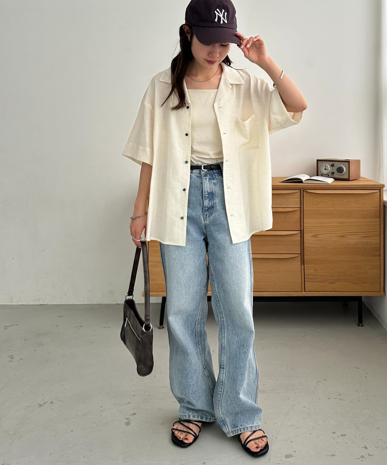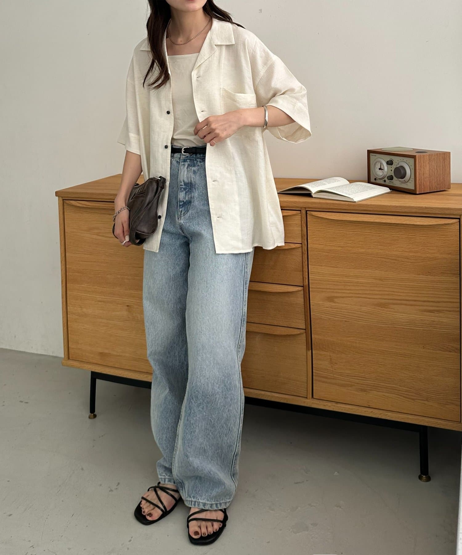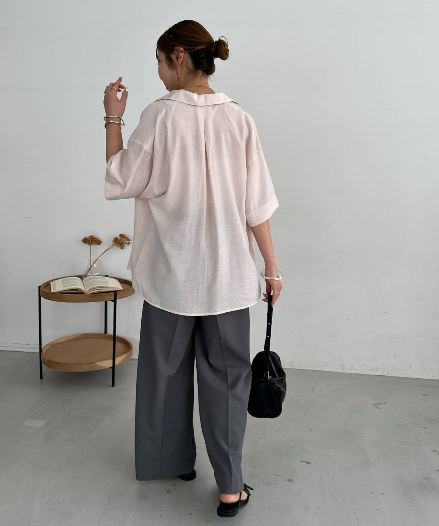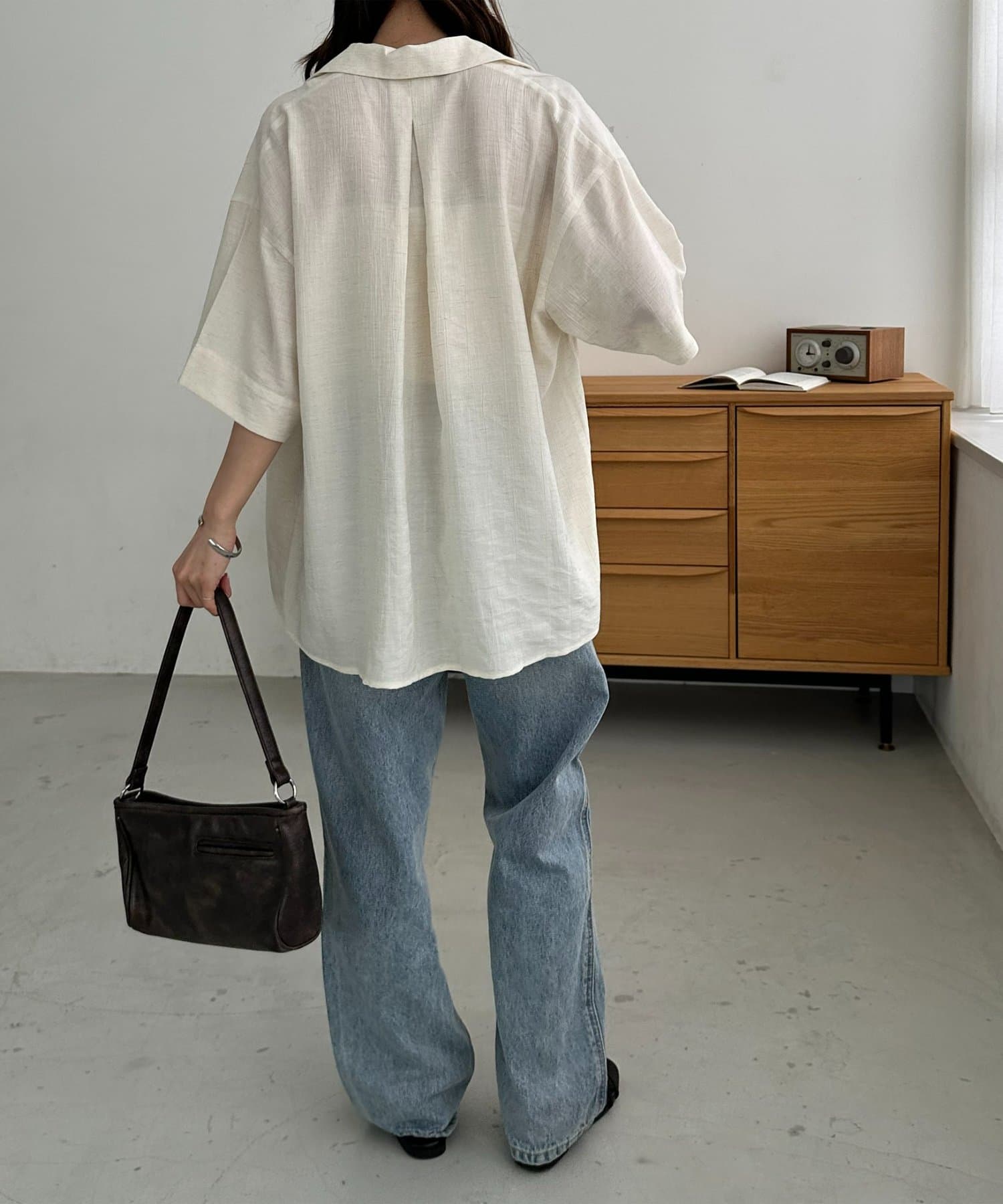 TOP > DISCOAT > レディース > トップス > シャツ/ブラウス(ボタン) > 【Enlude】リネンライク開襟オーバーシャツ《ユニセックス》
