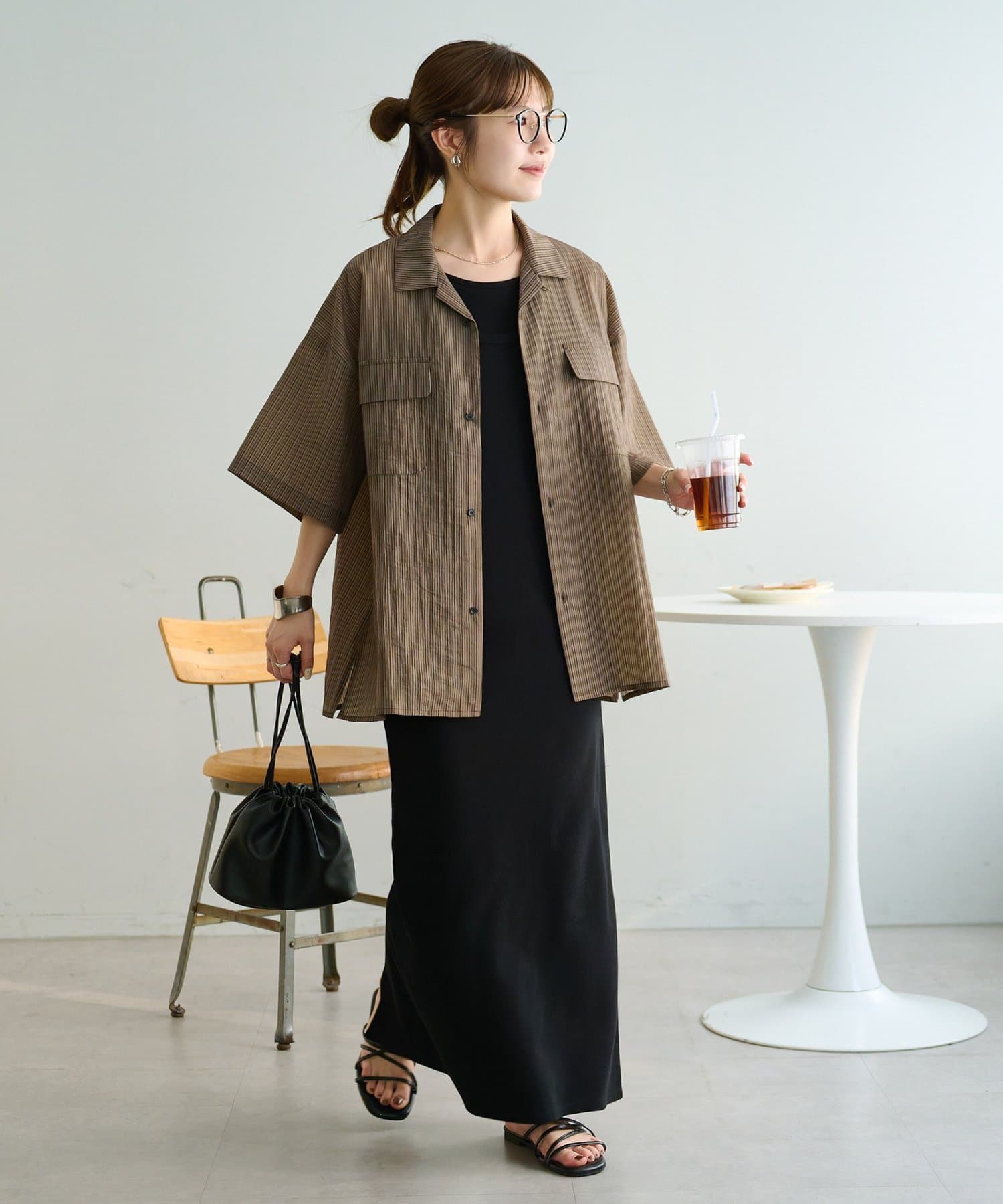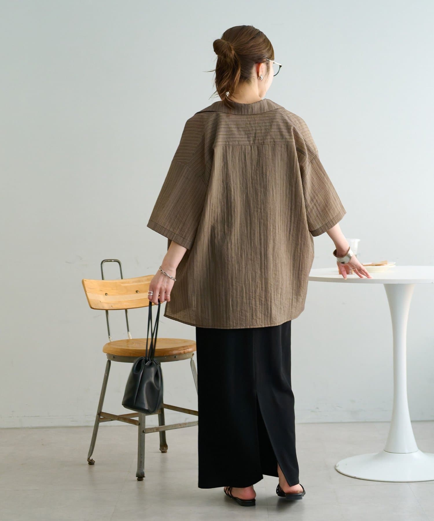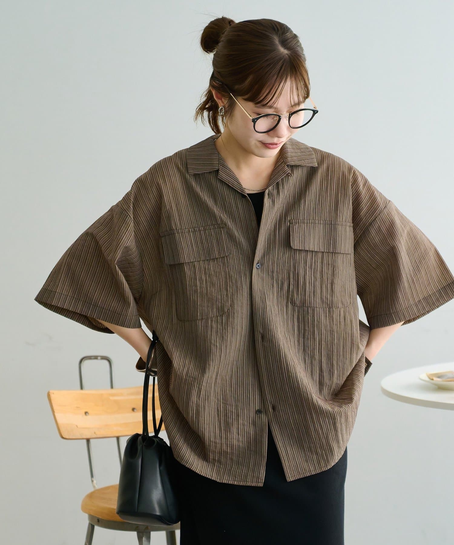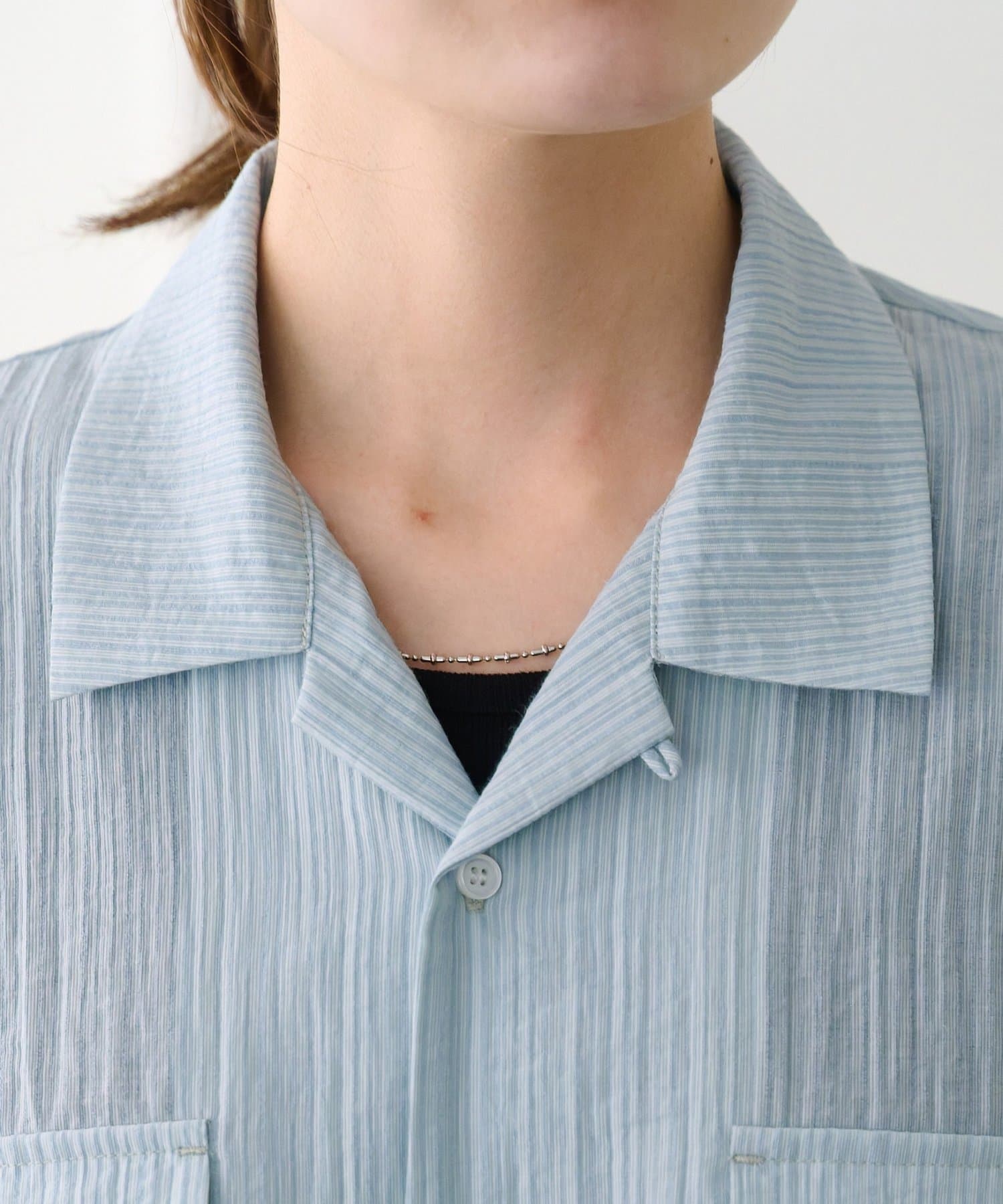 【Enlude】ストライプオープンカラー半袖シャツ《ユニセックス》