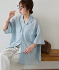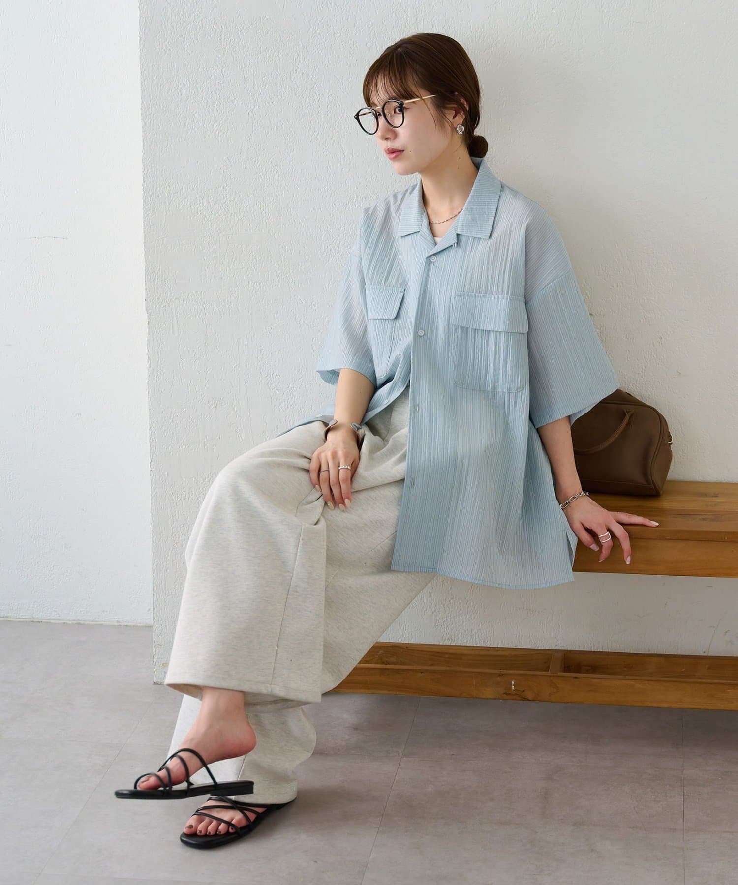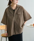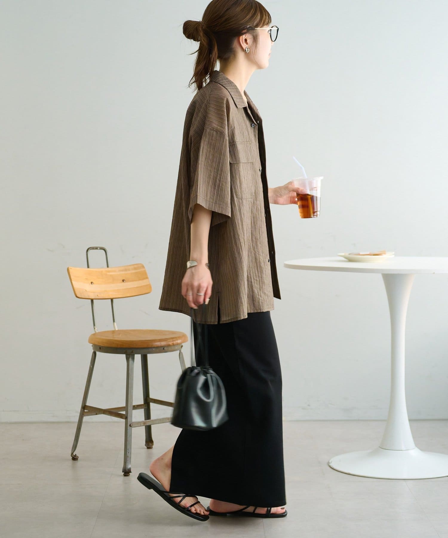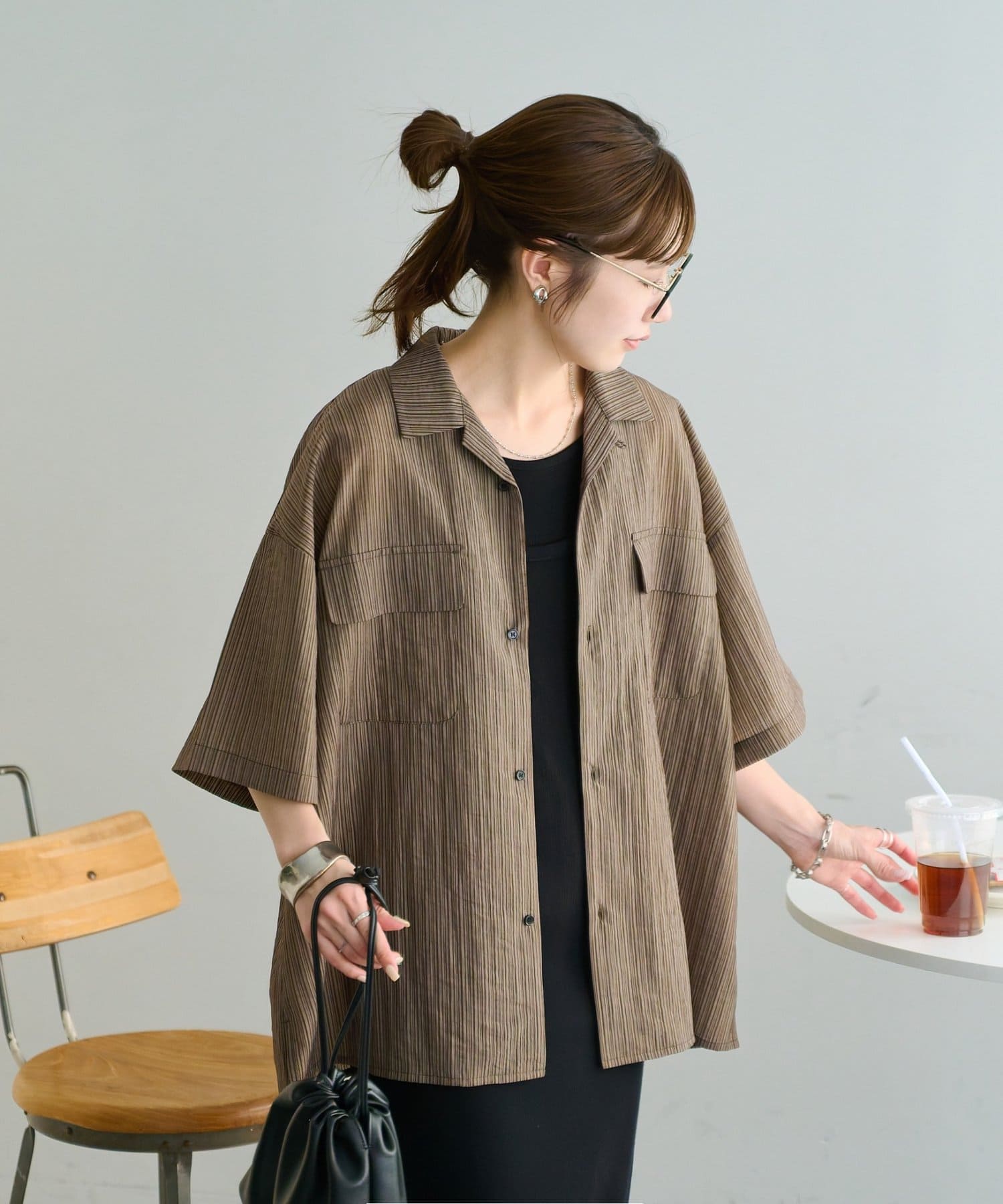 【Enlude】ストライプオープンカラー半袖シャツ《ユニセックス》