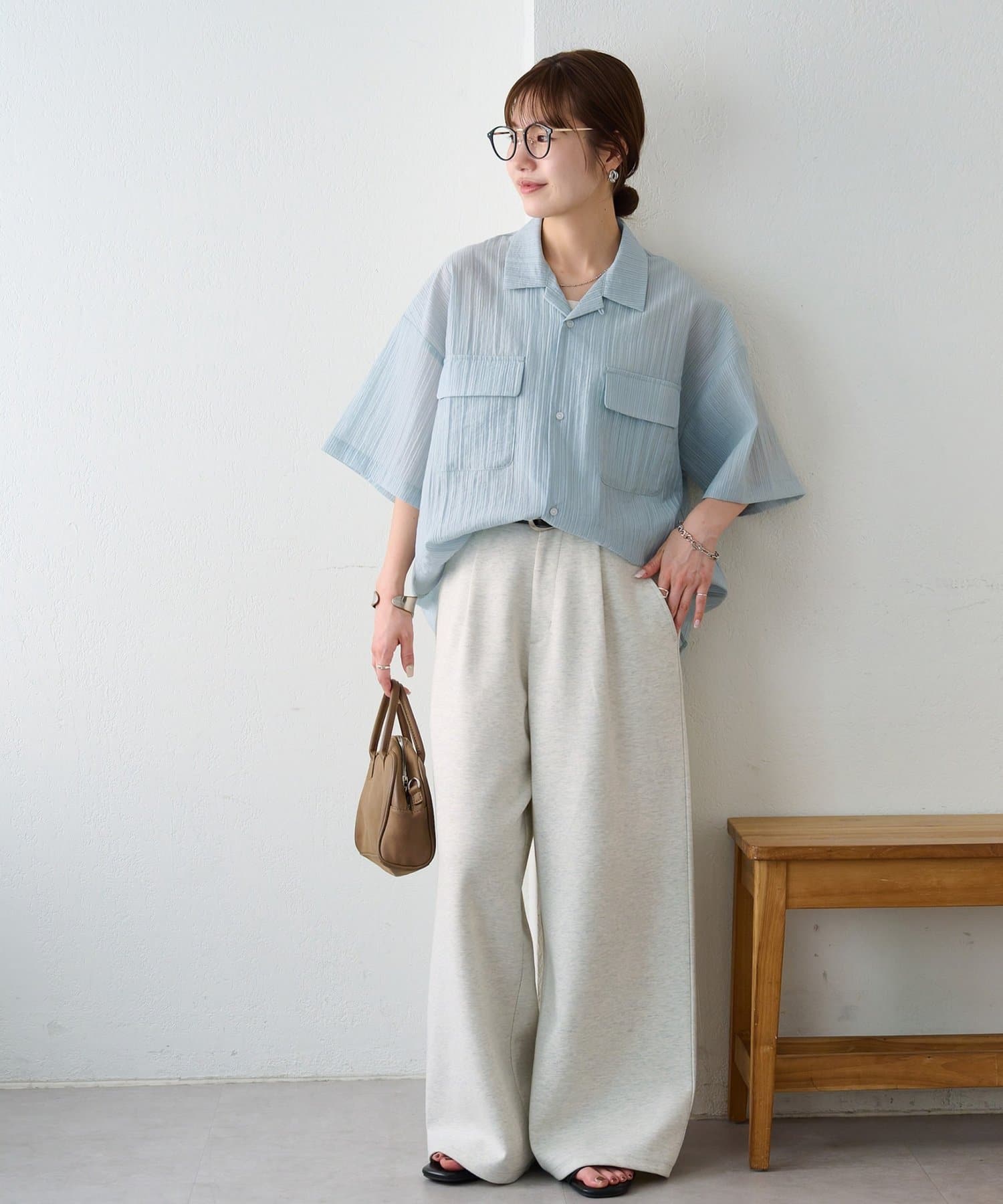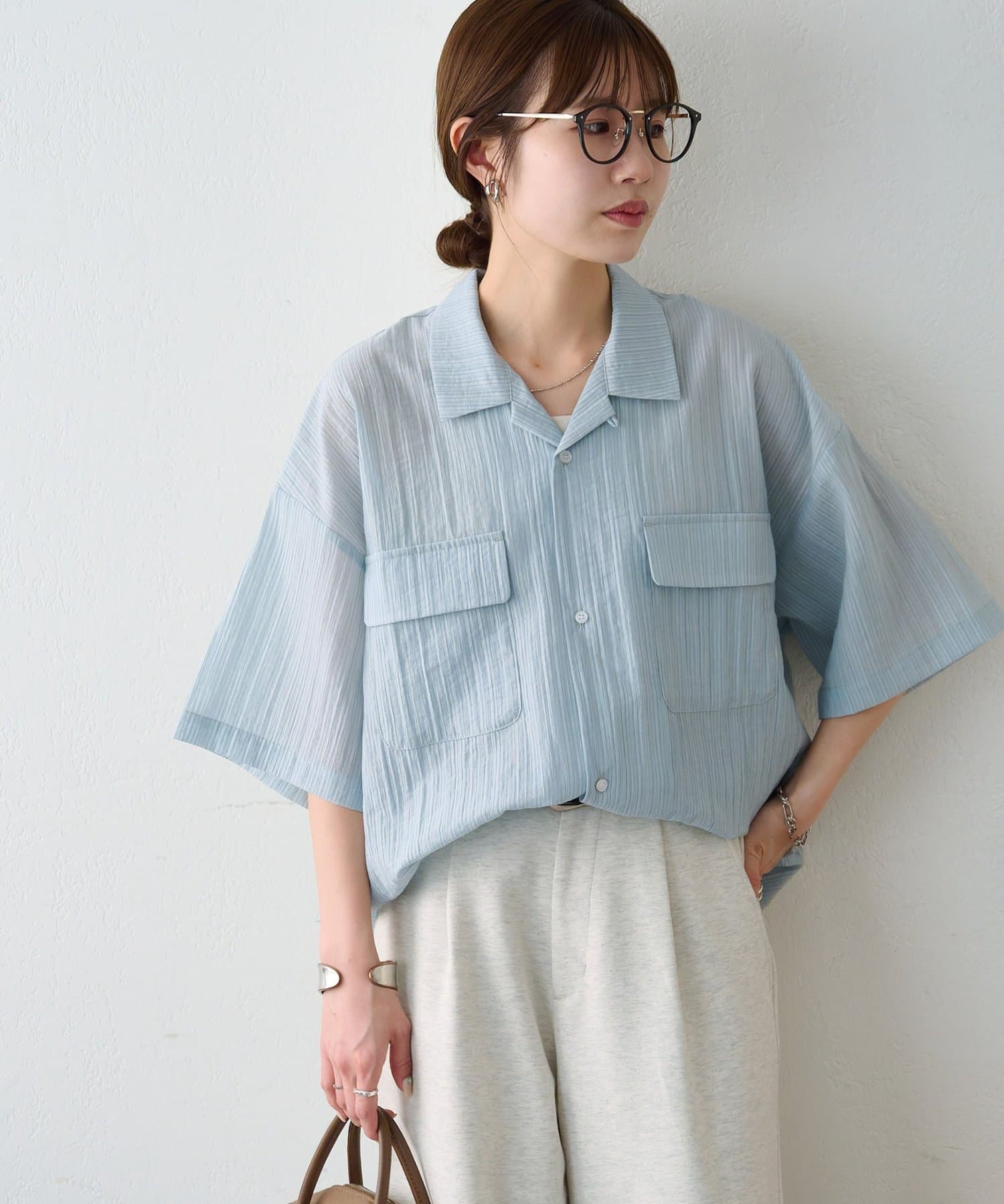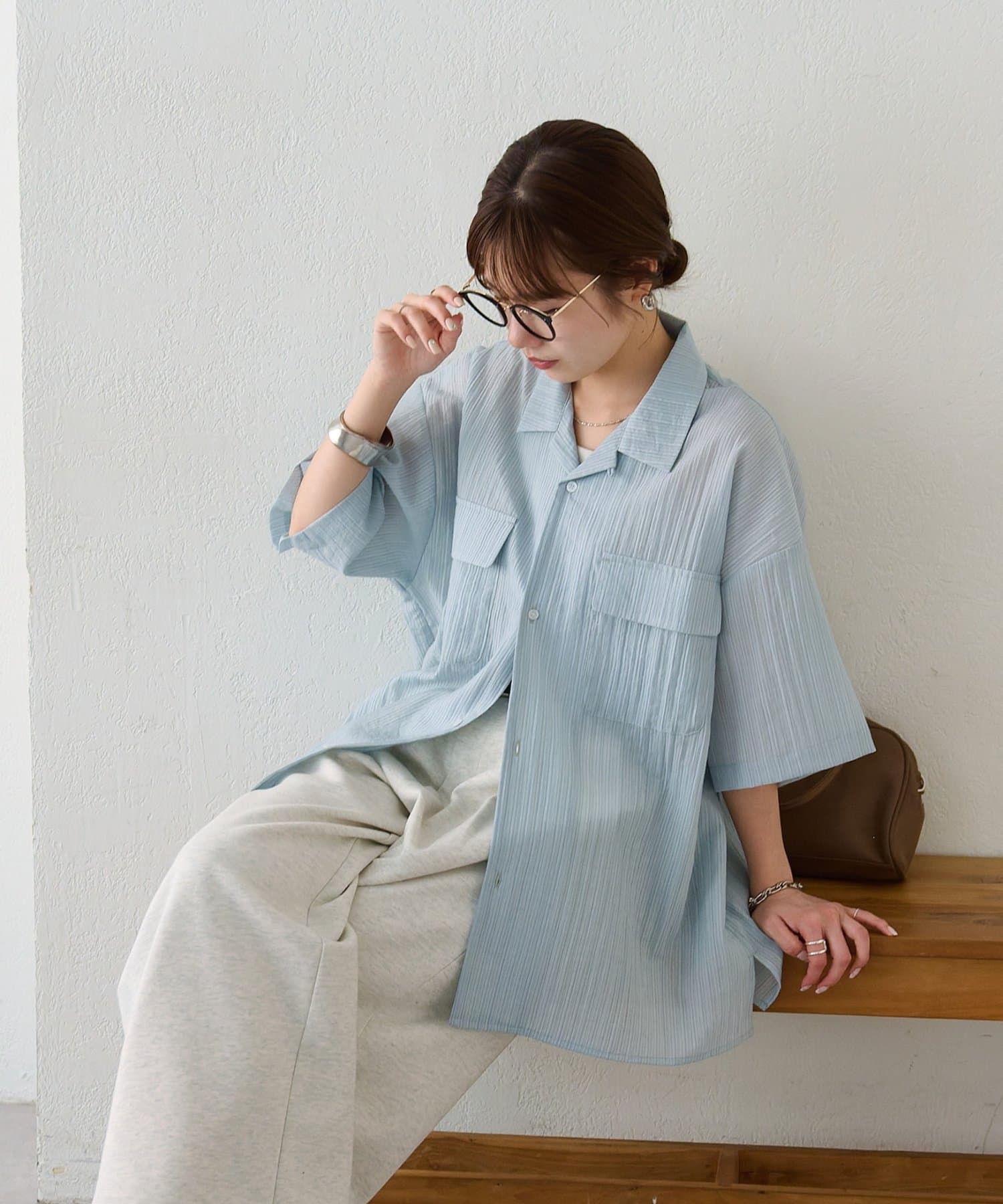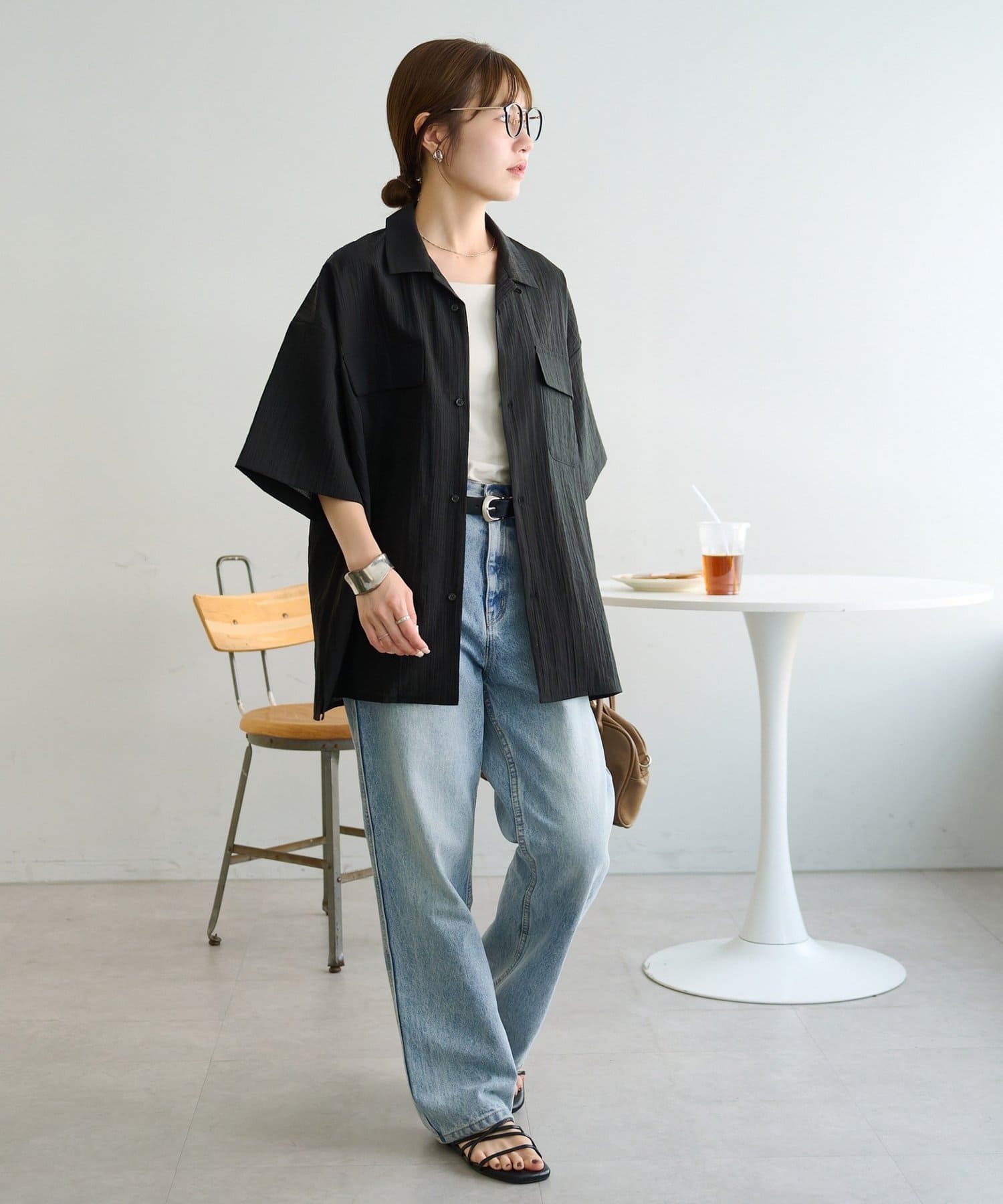 【Enlude】ストライプオープンカラー半袖シャツ《ユニセックス》