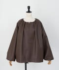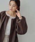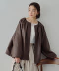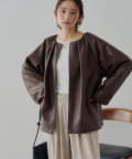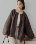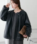 ・ギャザーを施した、女性らしいノーカラーブルゾン