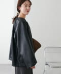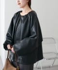 DISCOAT(ディスコート) 【Noka】ノーカラーギャザーレザーブルゾン