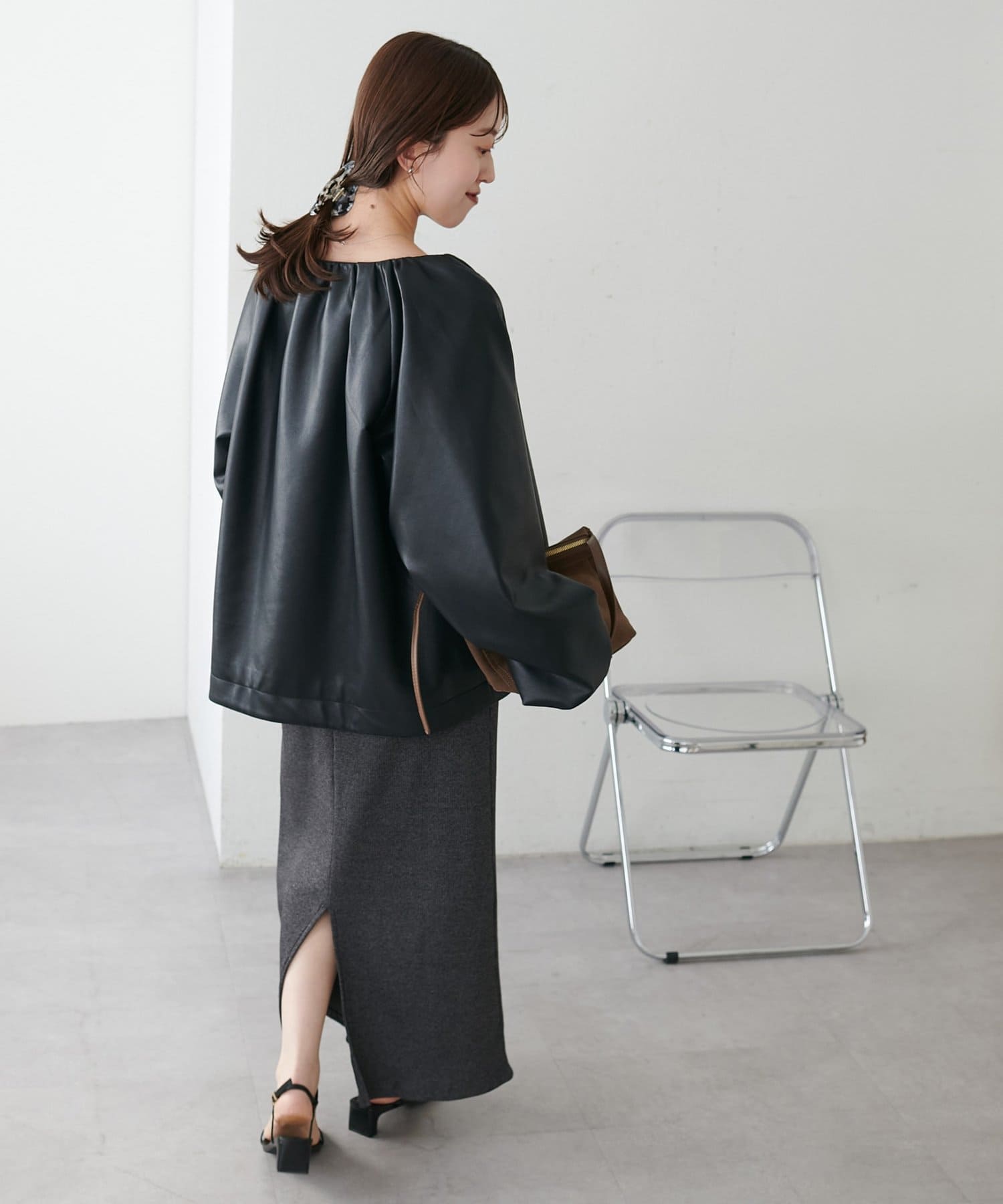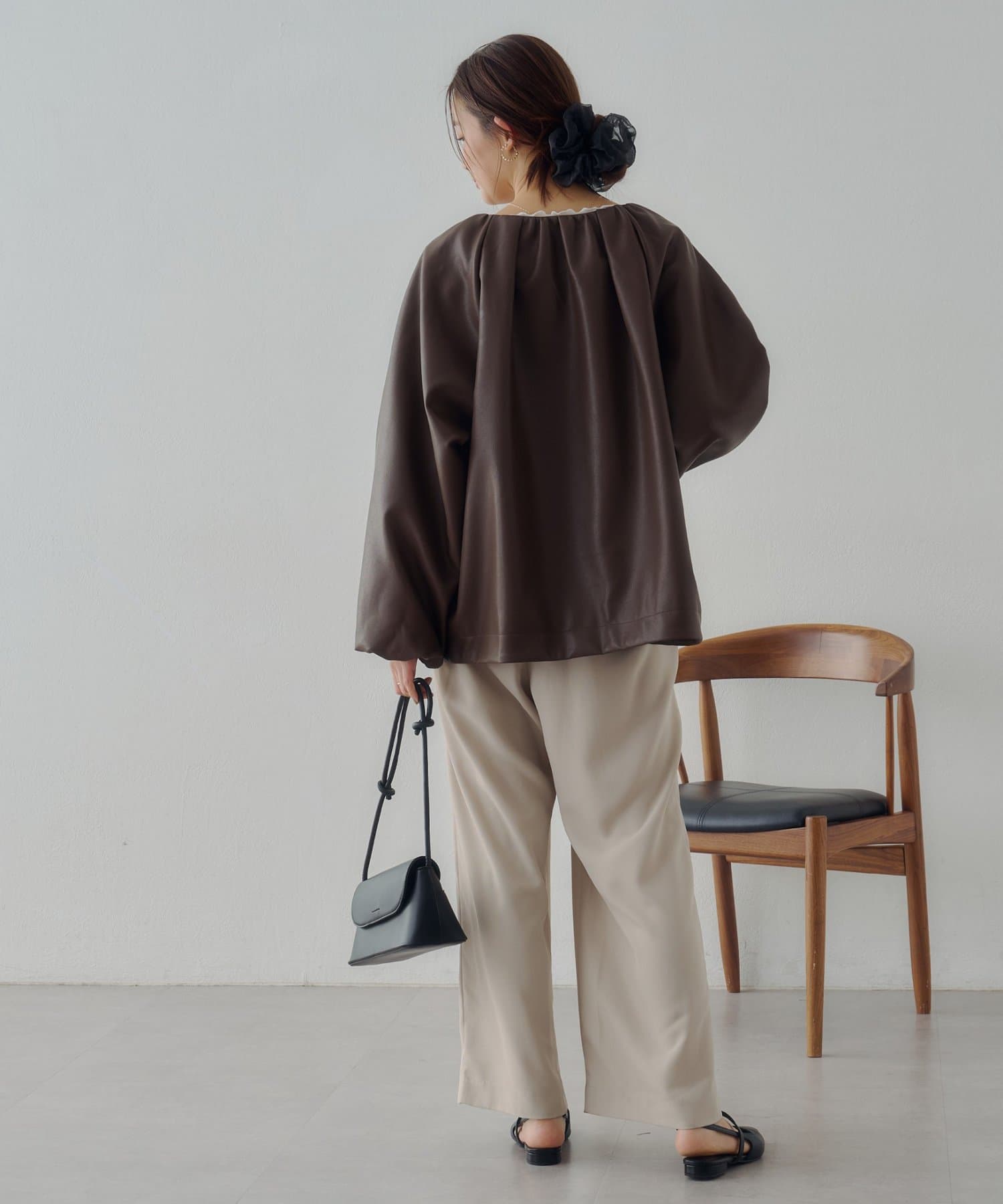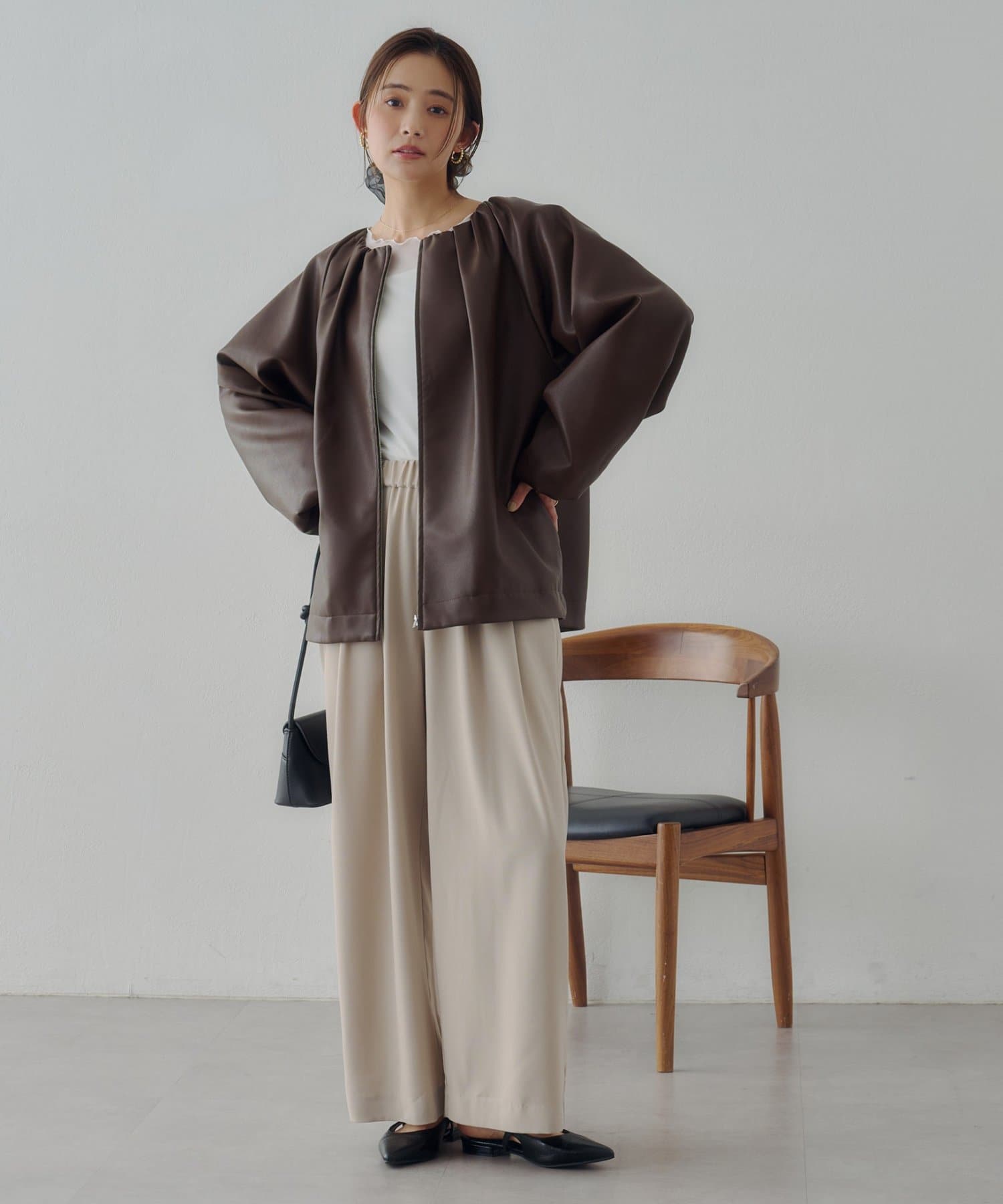 ・ノーカラーにしたことで、顔回りはすっきり見えが叶います。