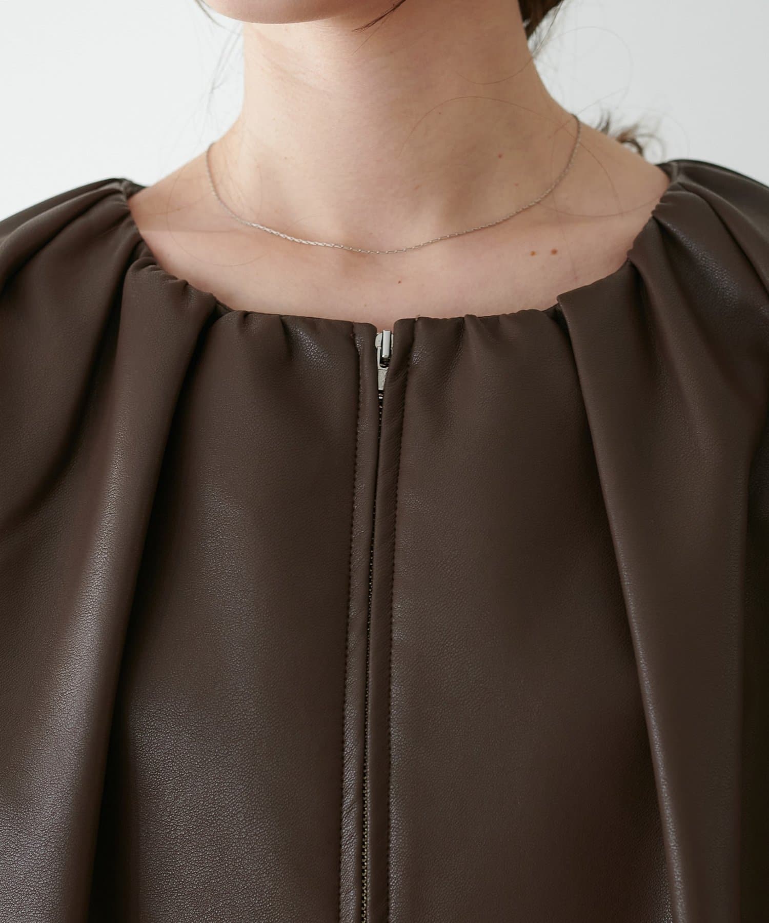 TOP > DISCOAT > レディース > ジャケット/アウター > その他ジャケット/ブルゾン > 【Noka】ノーカラーギャザーレザーブルゾン
