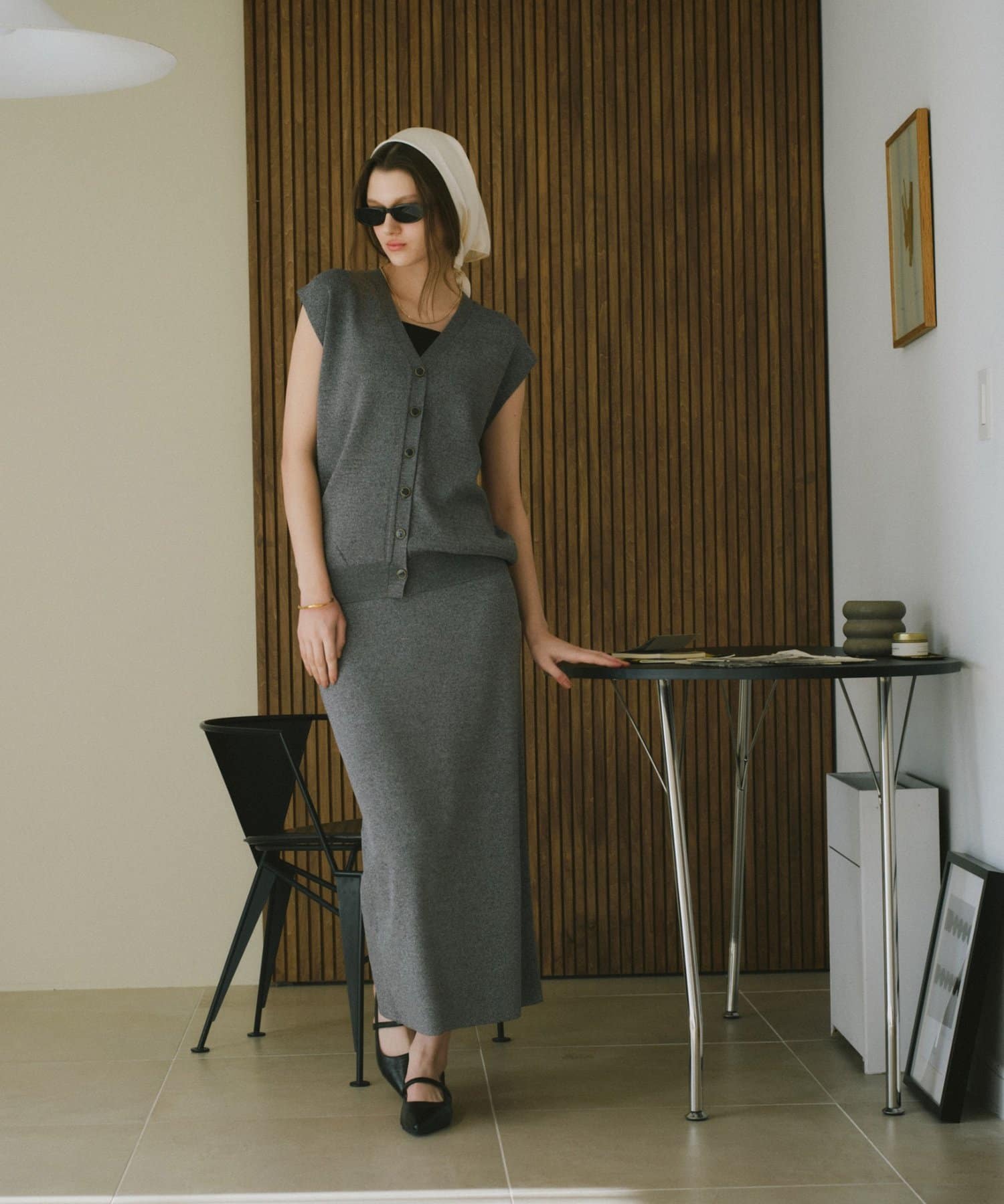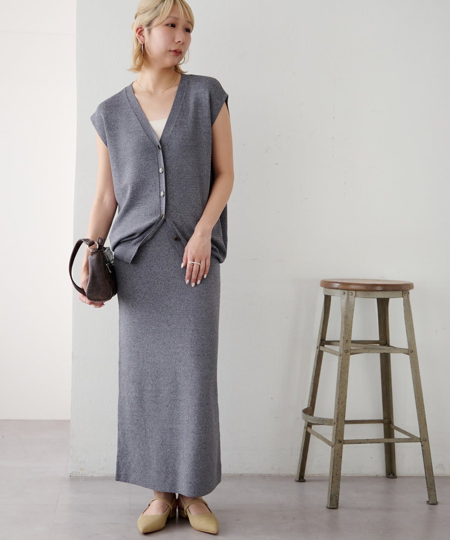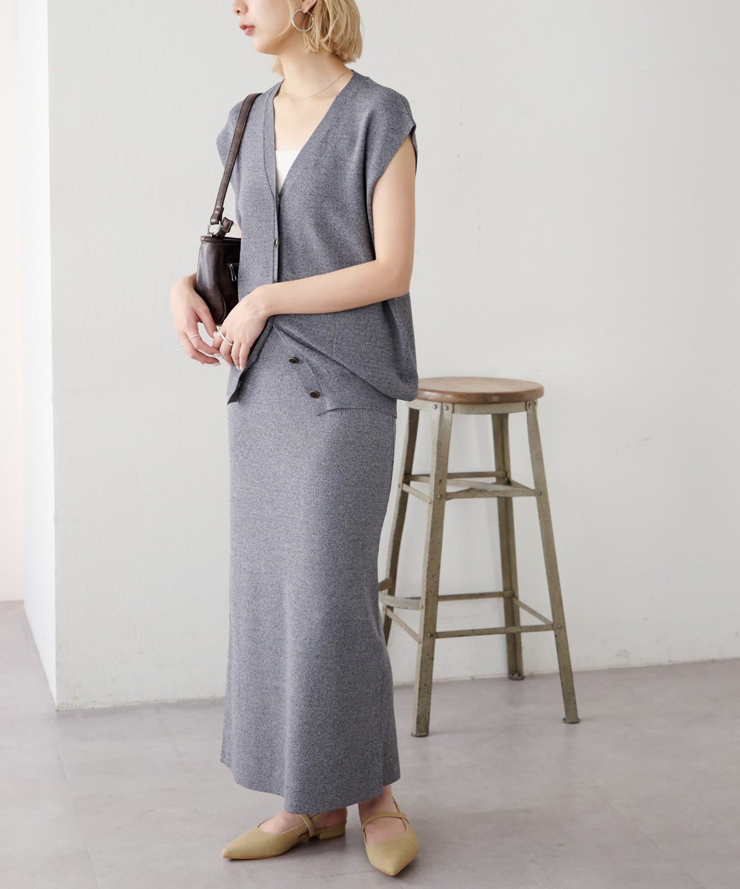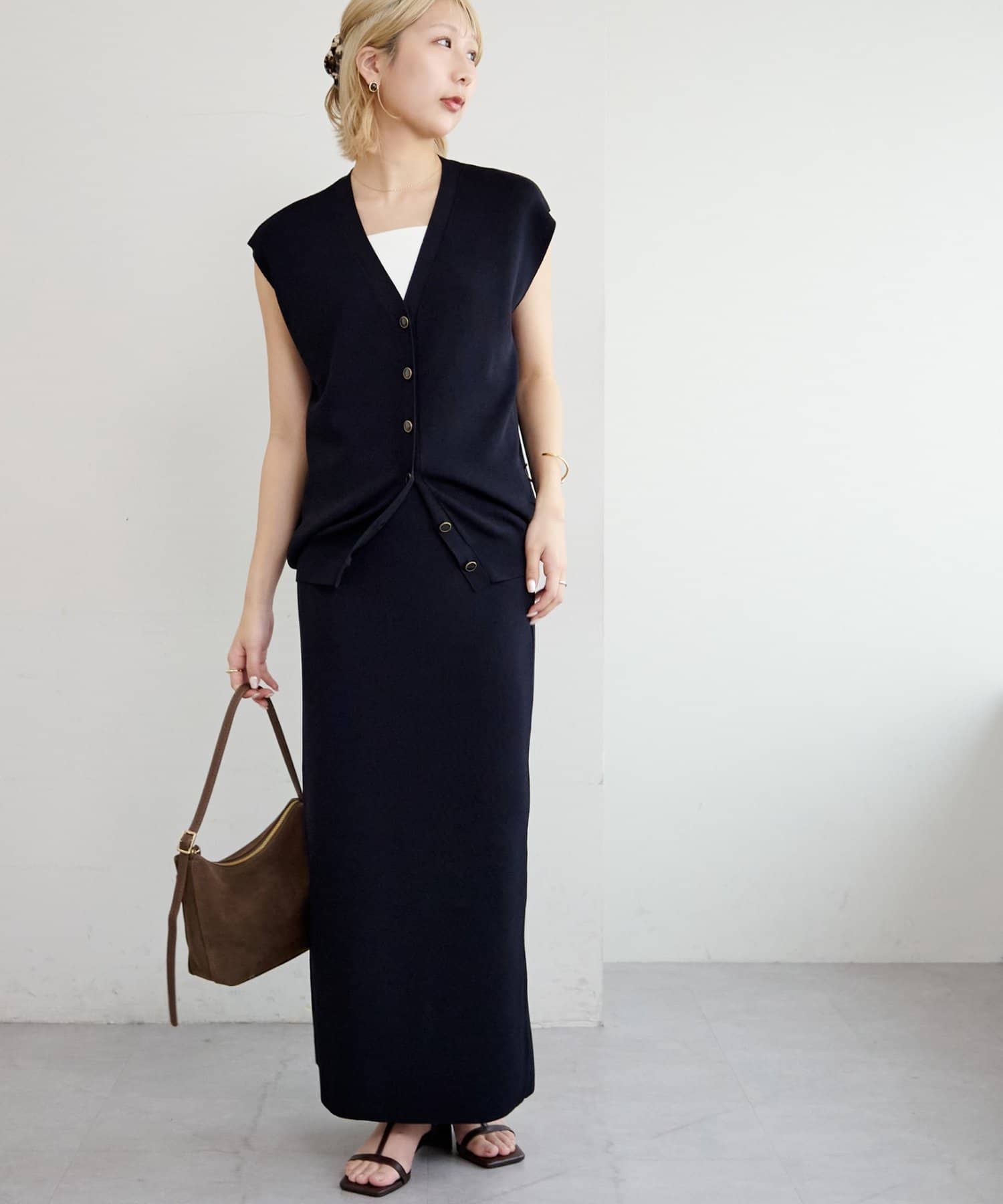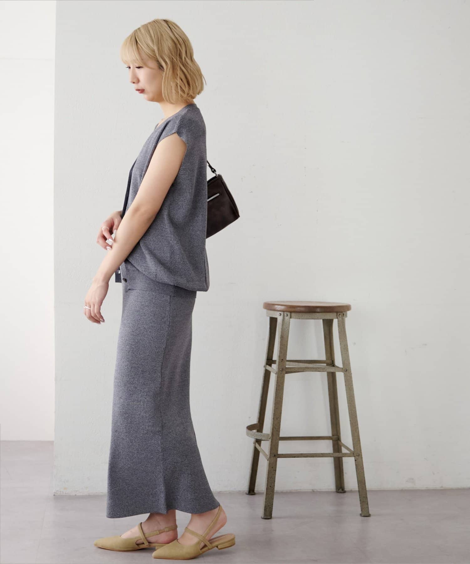 ・同素材の【Noka】接触冷感ニットナロースカートとセットアップ対応