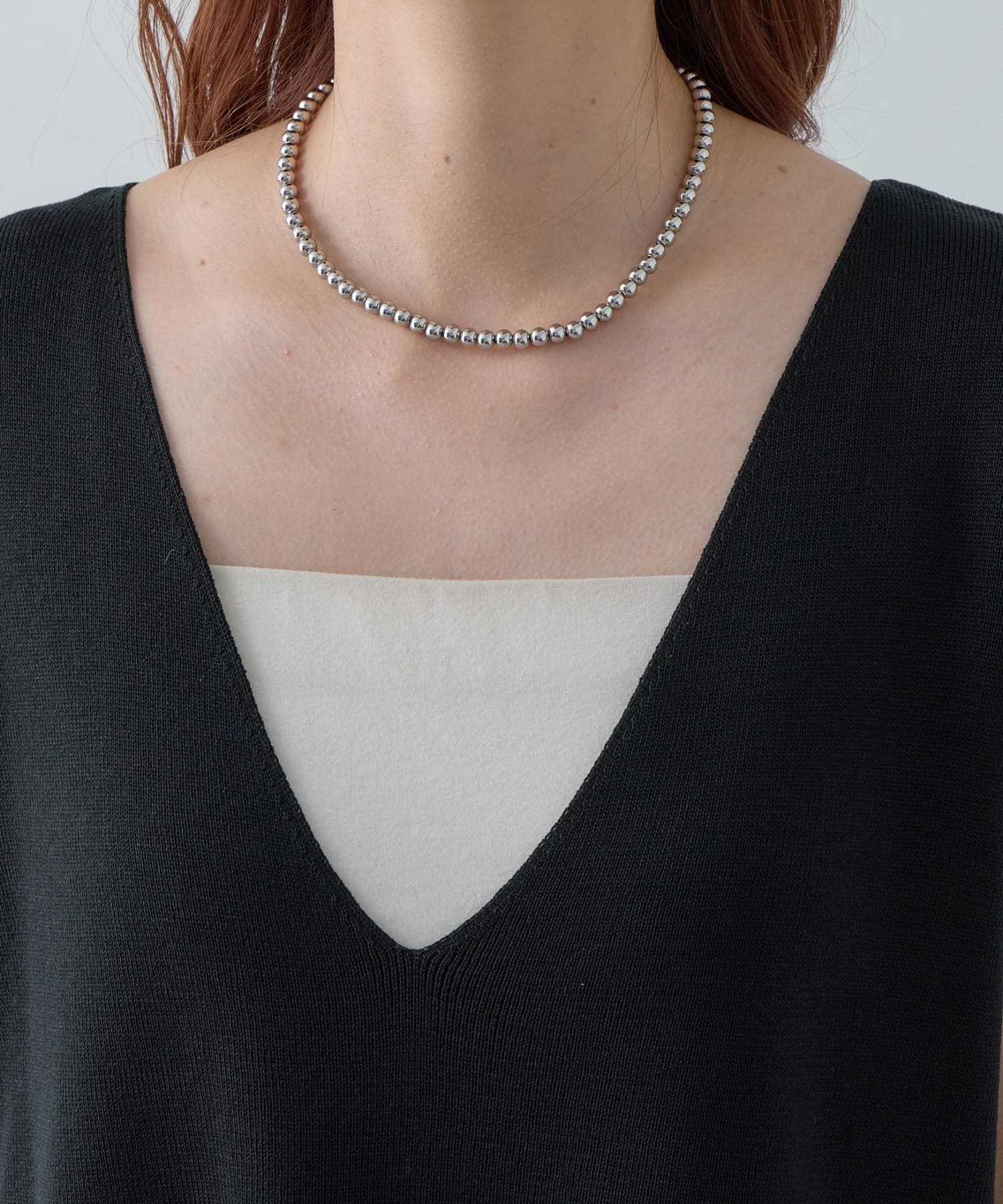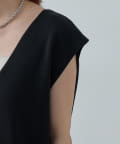 ・顔周りをすっきりと見せるシャープなVネックライン