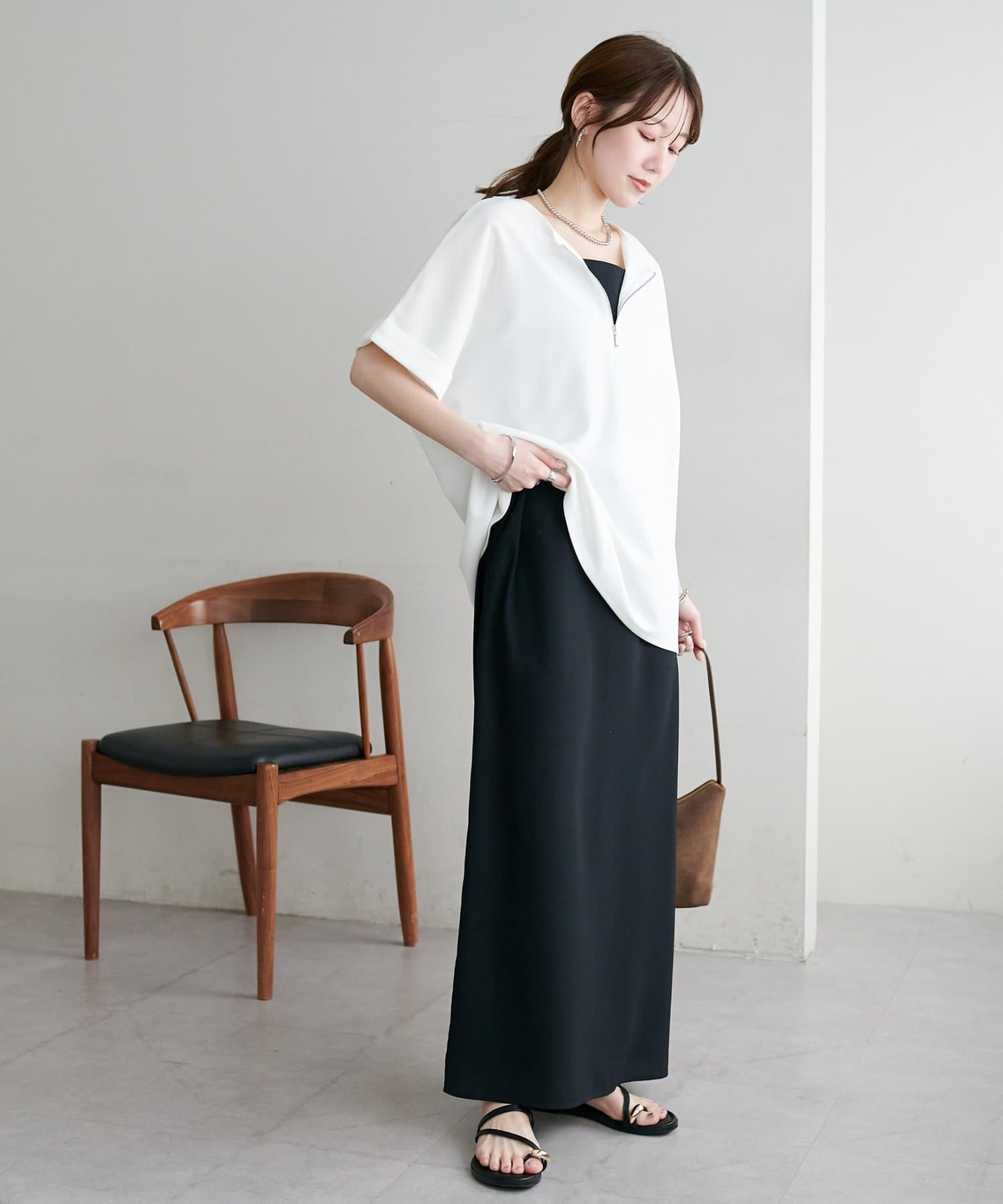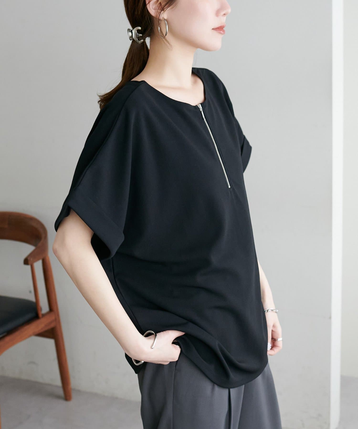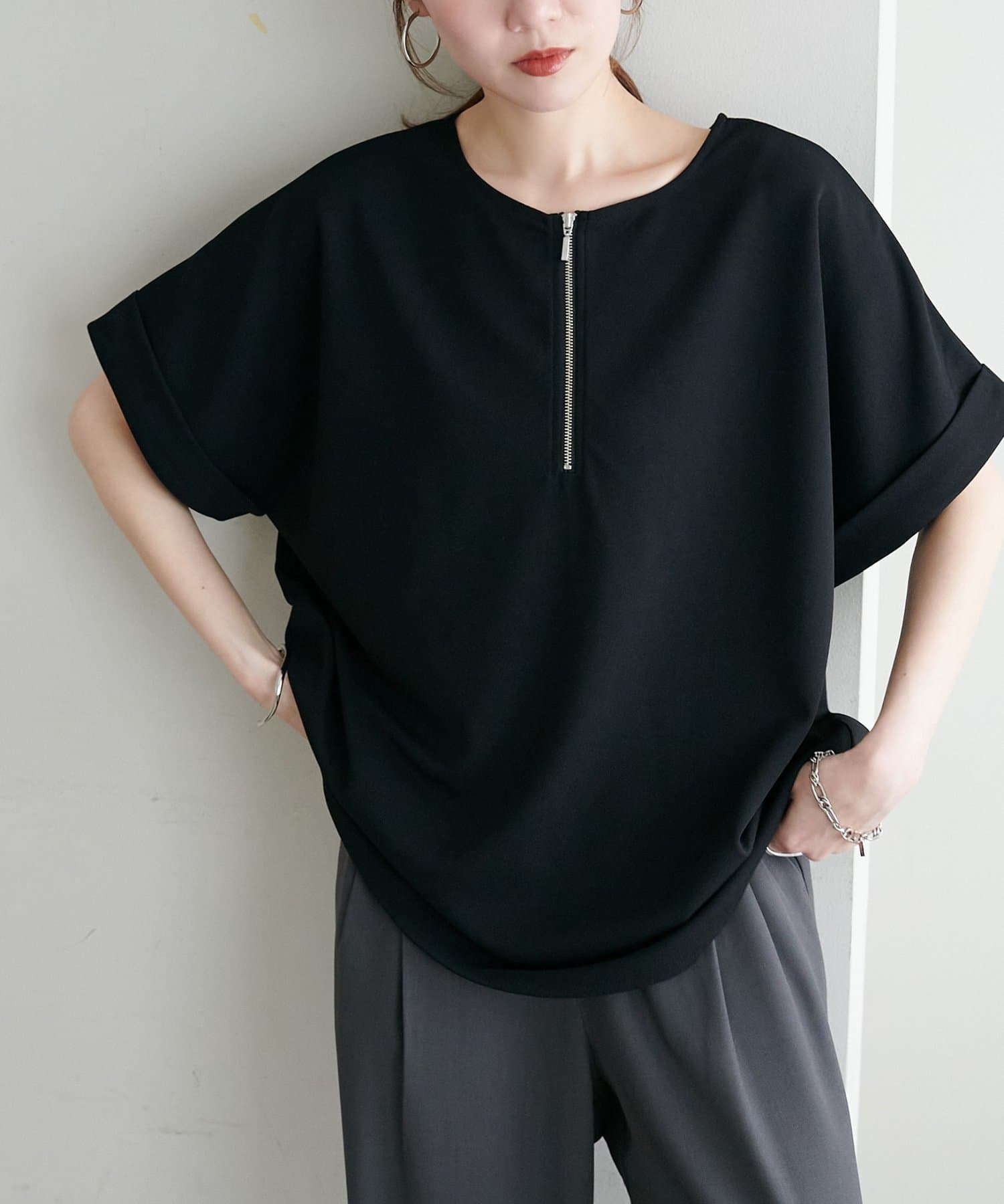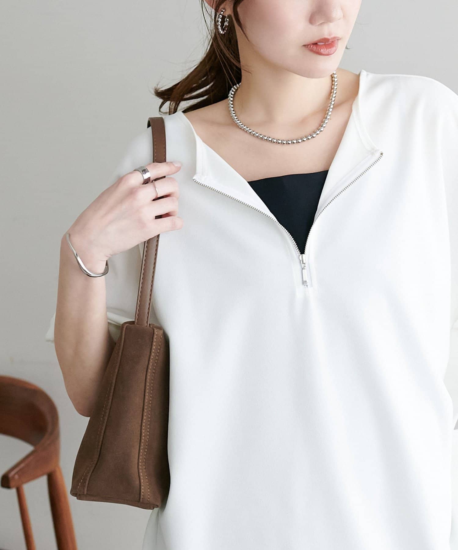 ・ジップの開け閉めで抜け感を調整でき、インナーと合わせたレイヤードスタイルも楽しめます