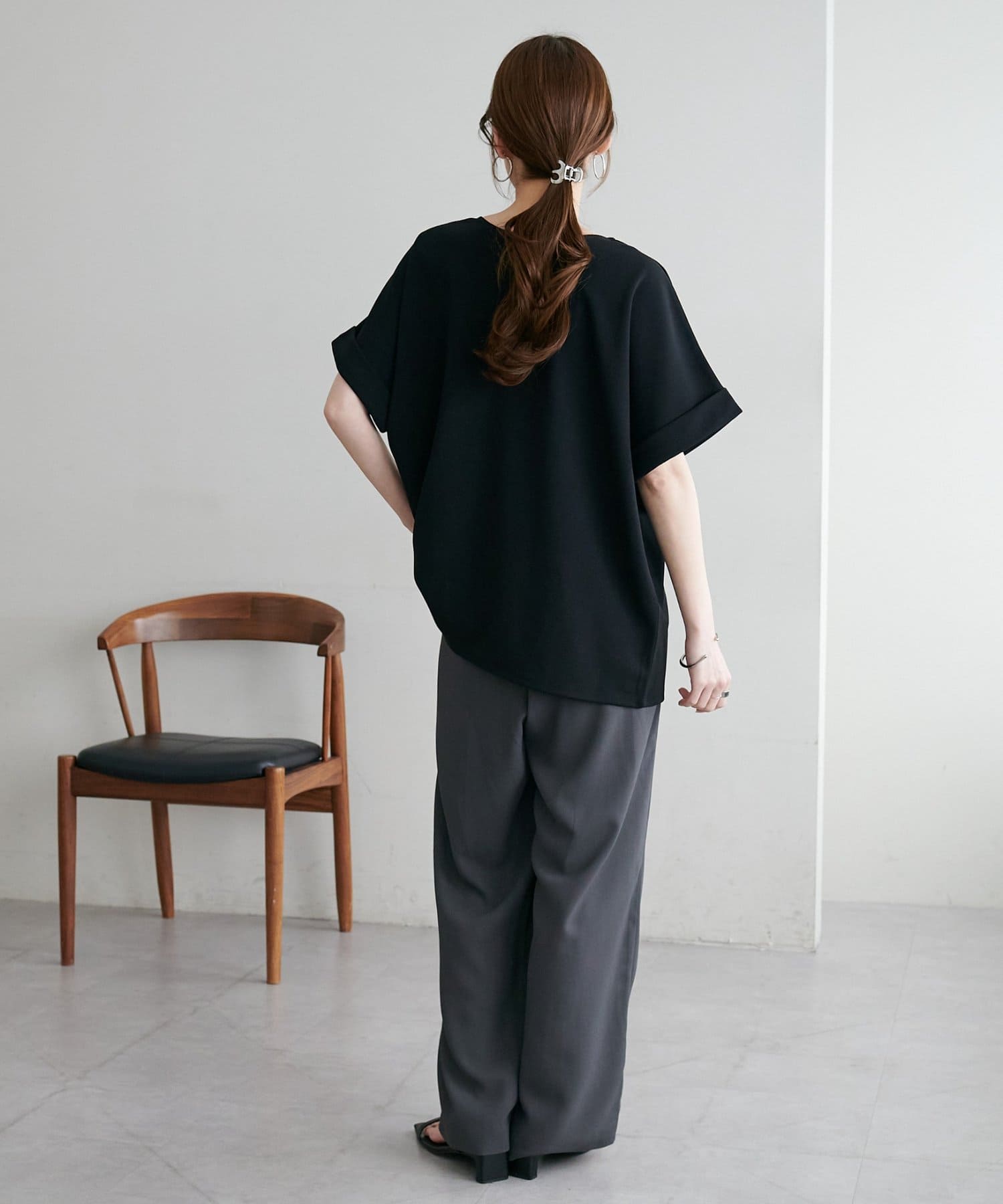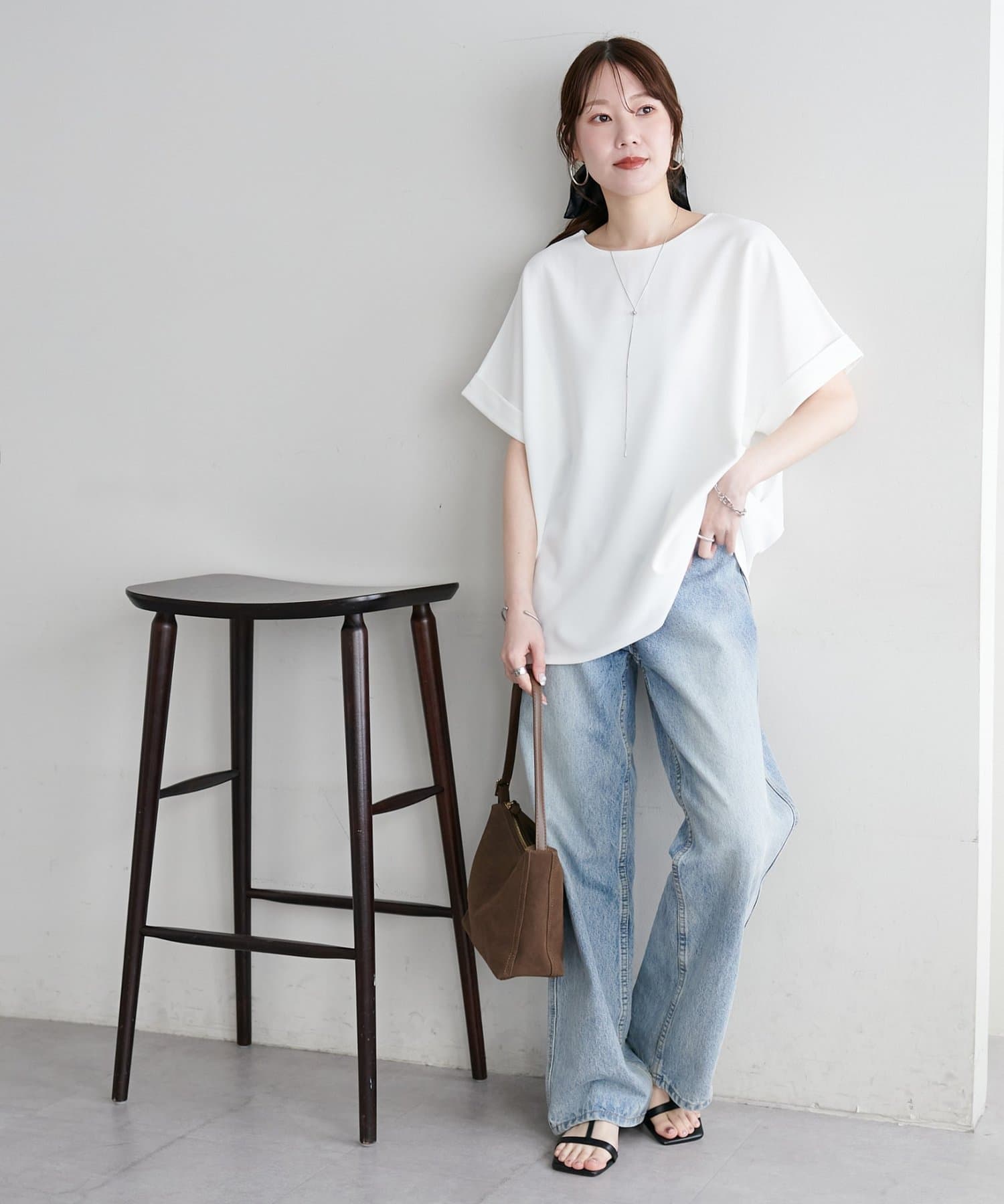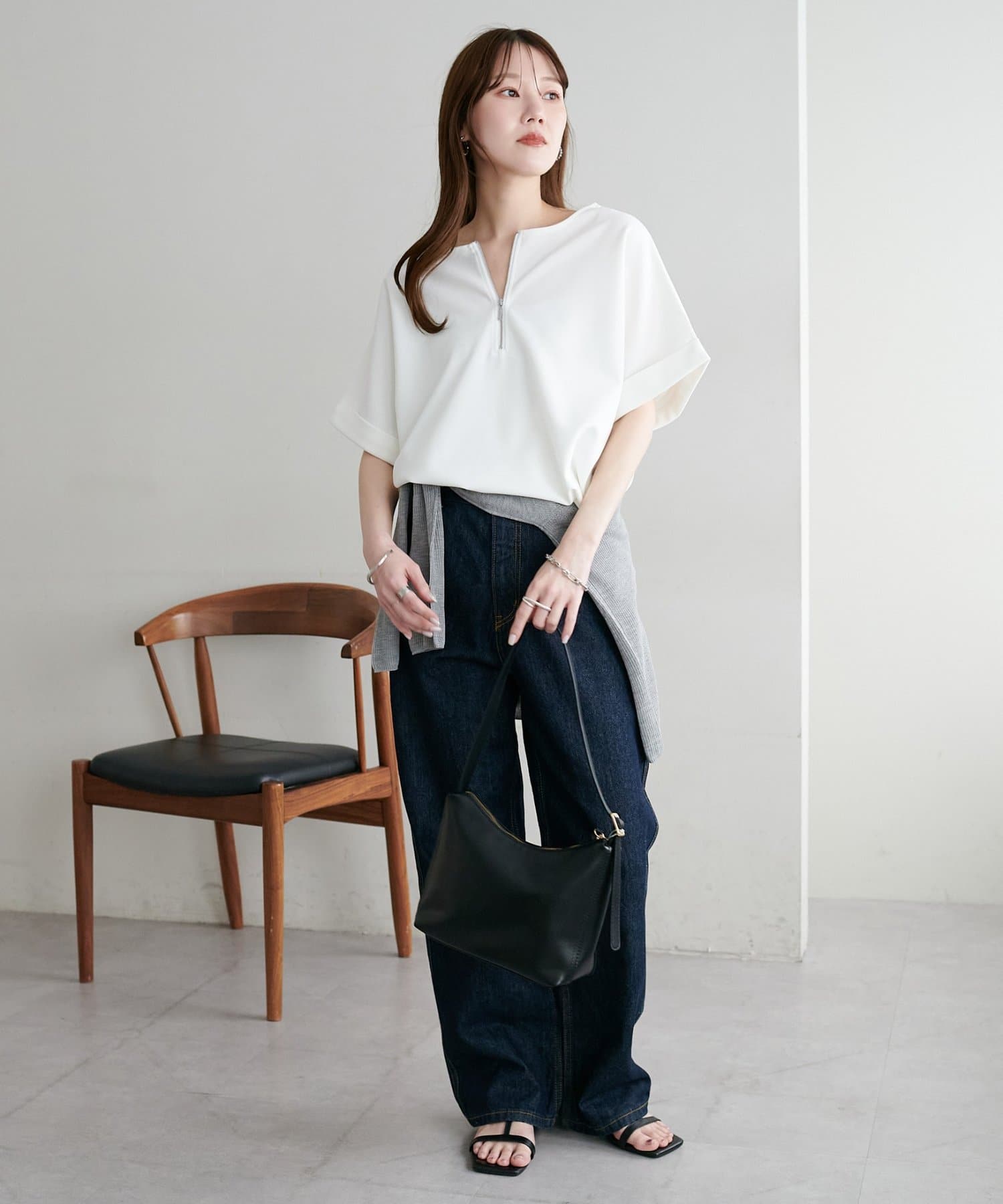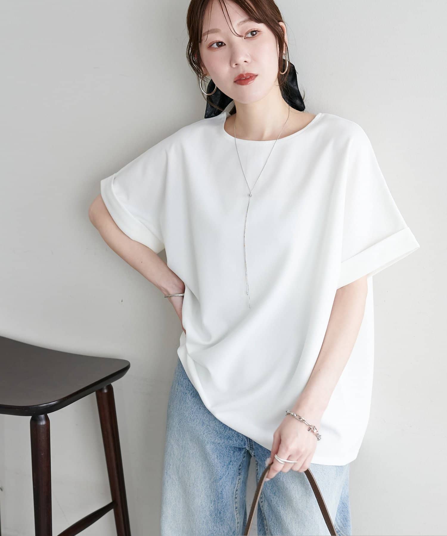 ・袖口はロールアップされており、こなれた雰囲気をプラス