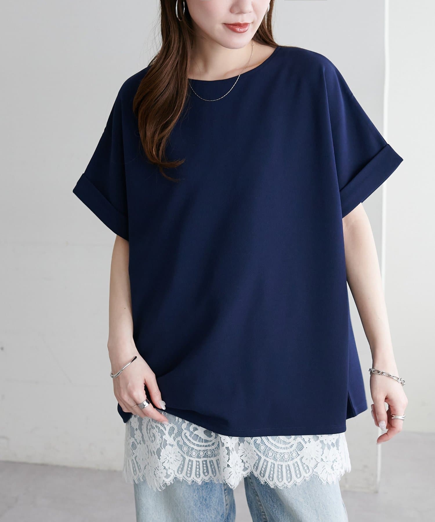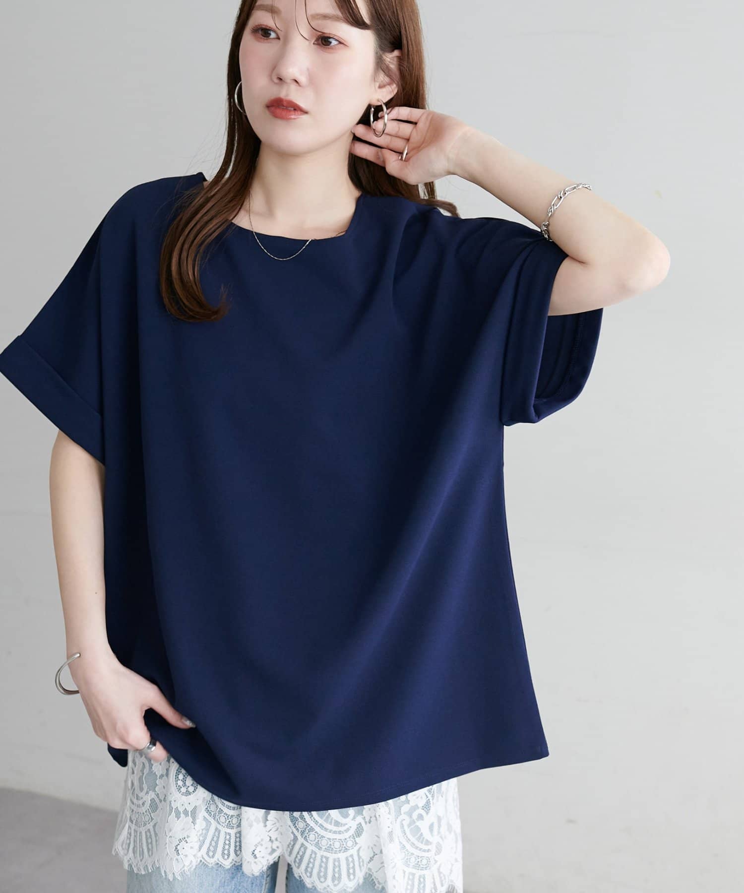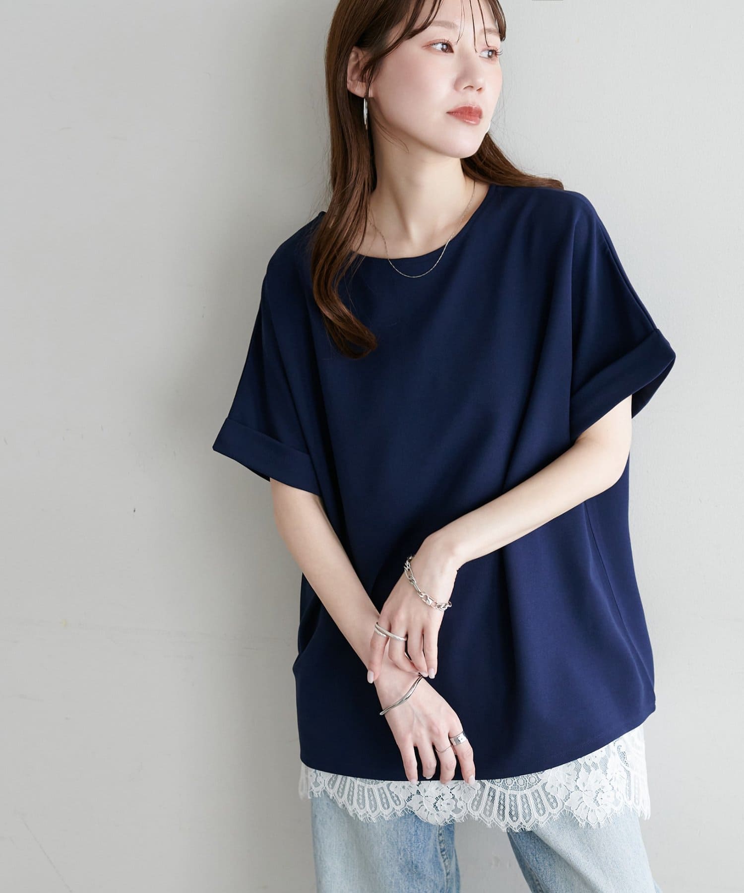 ・袖口はロールアップされており、こなれた雰囲気をプラス