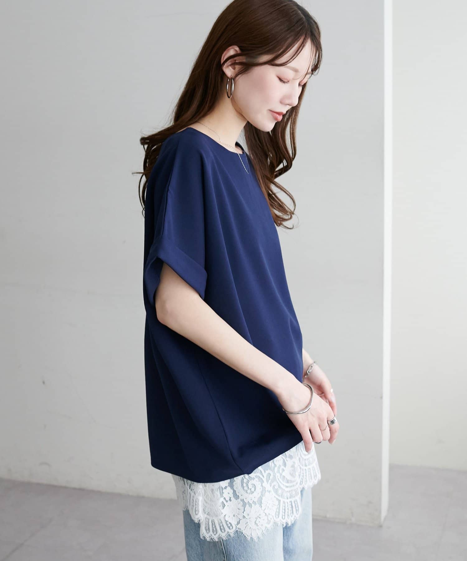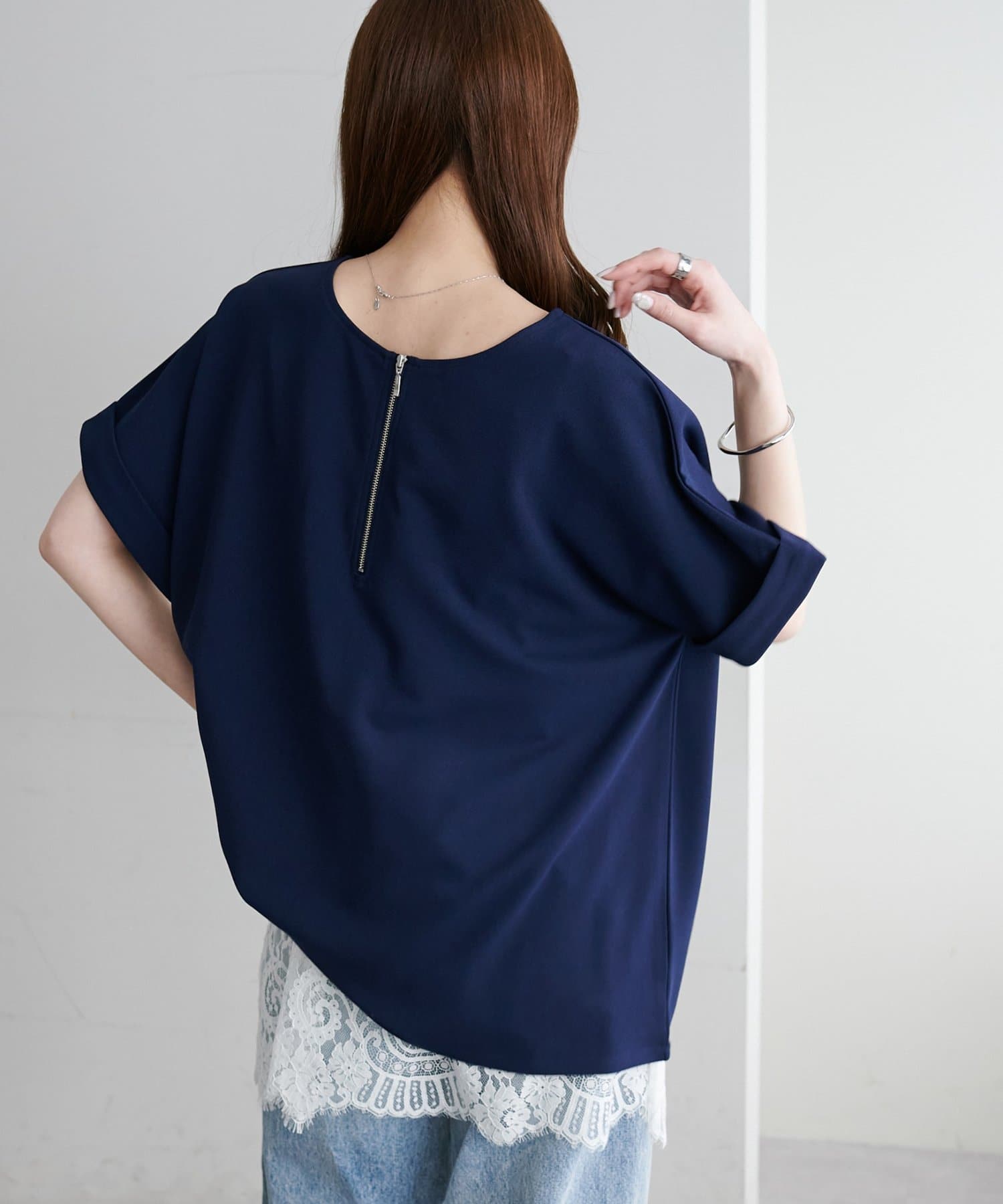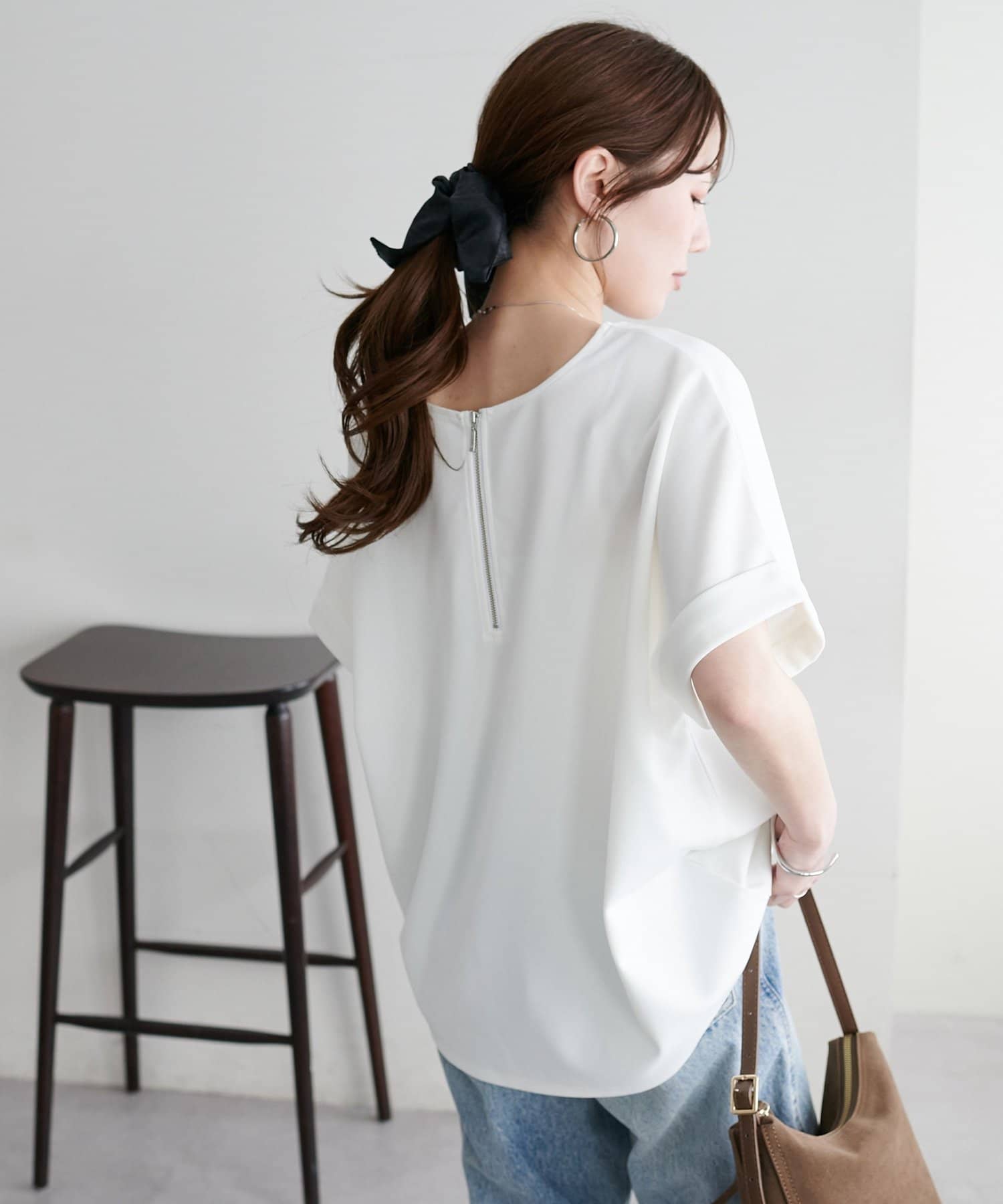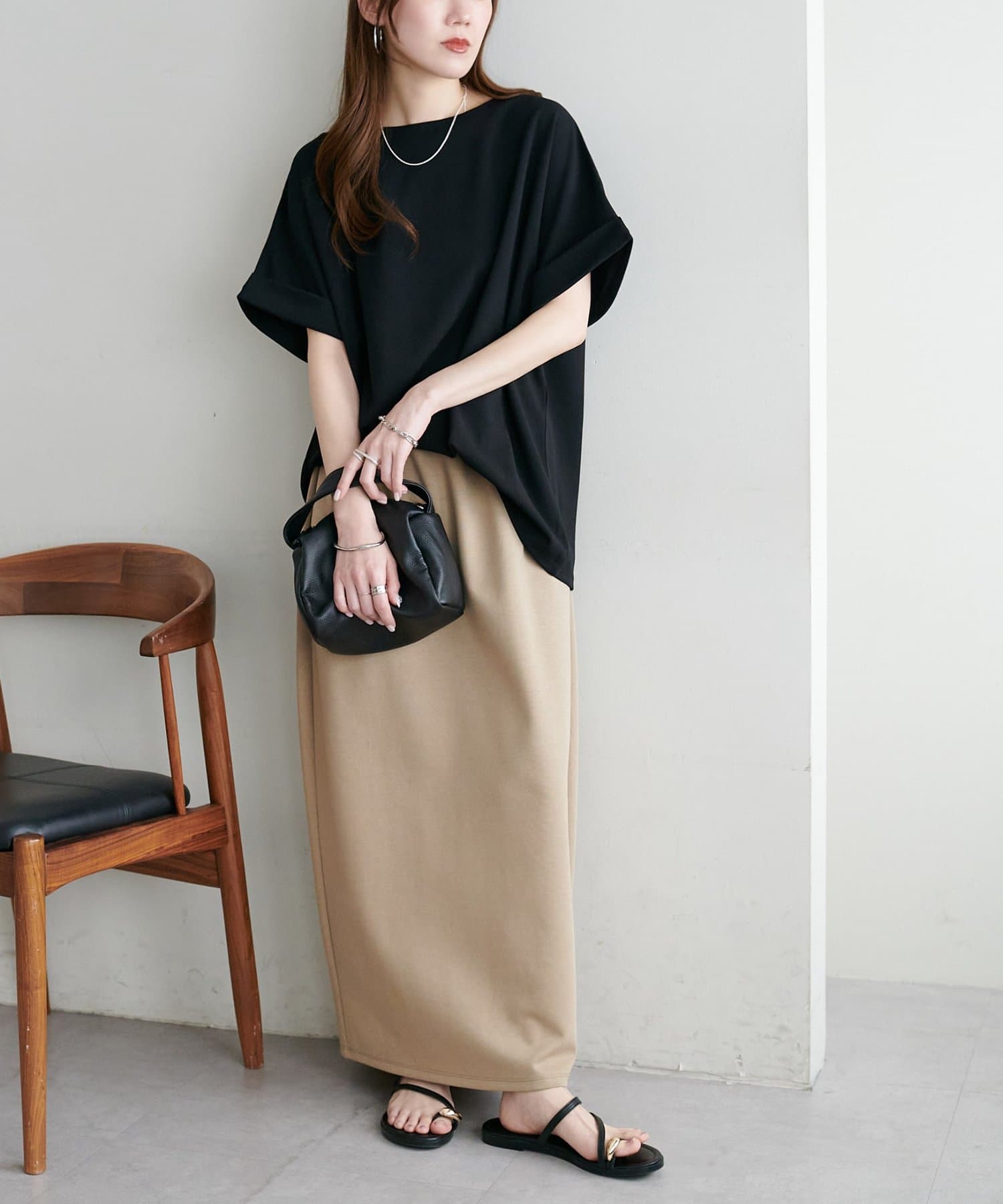 ・袖口はロールアップされており、こなれた雰囲気をプラス