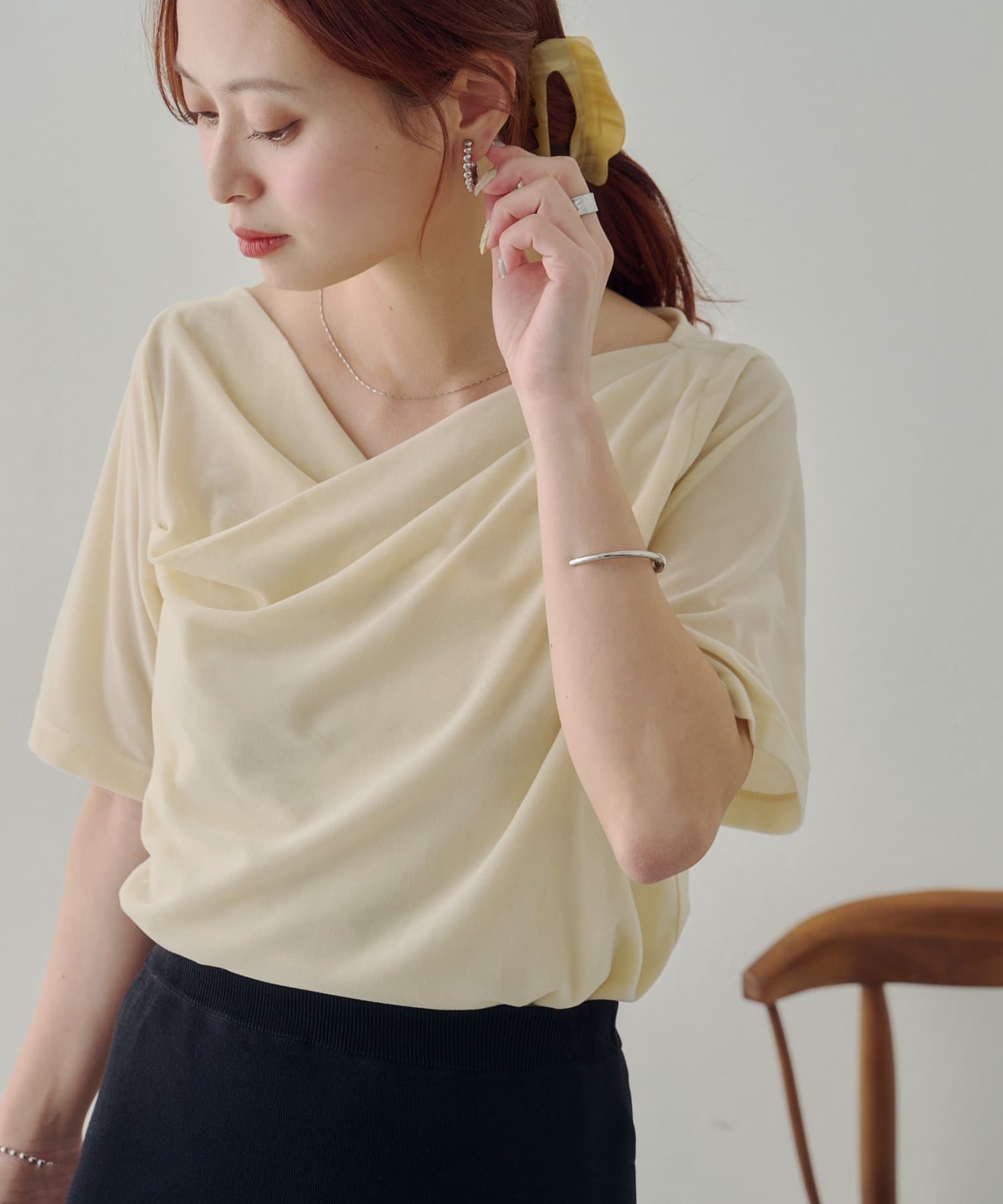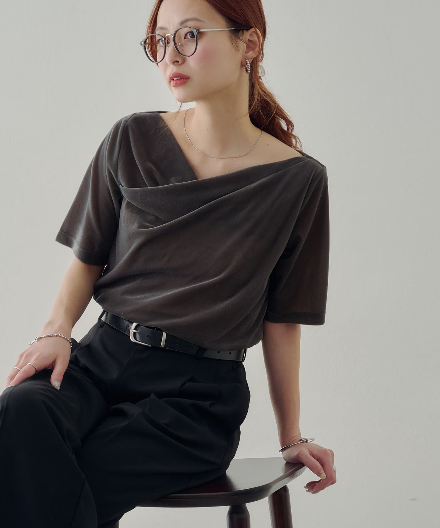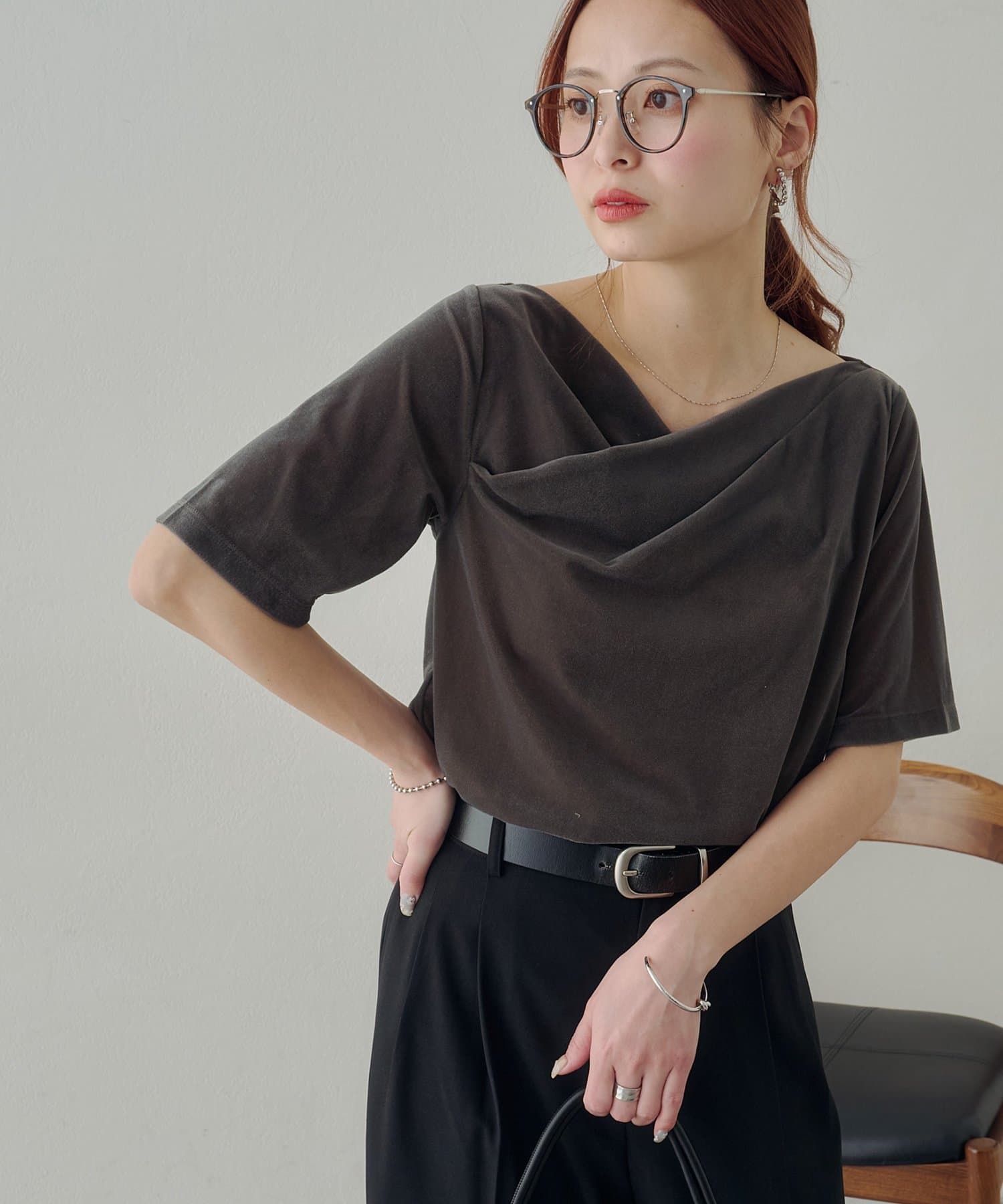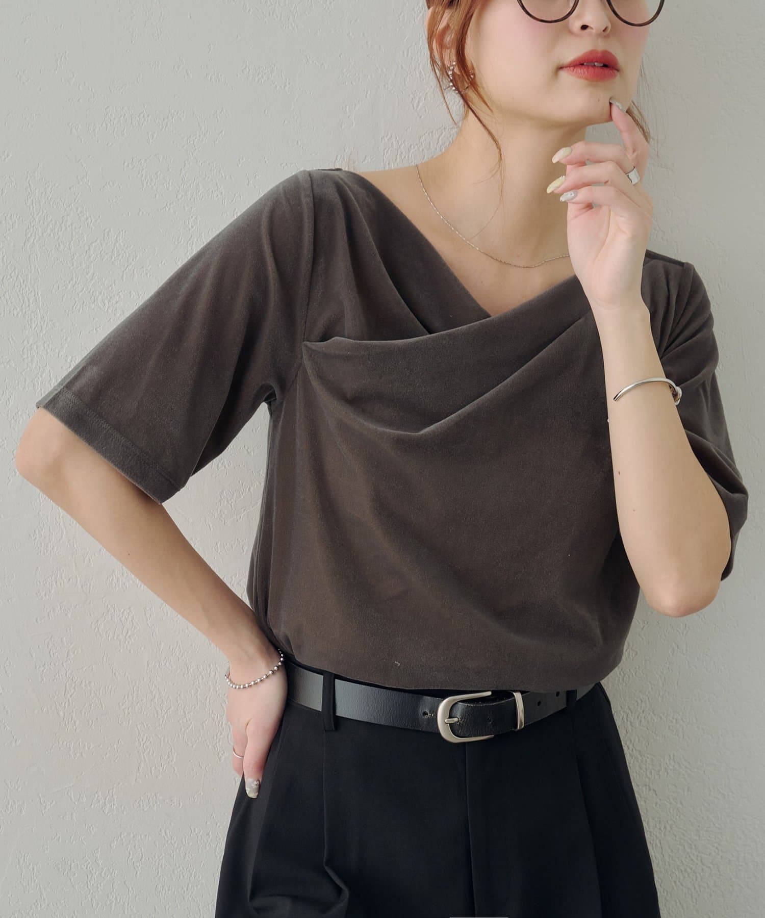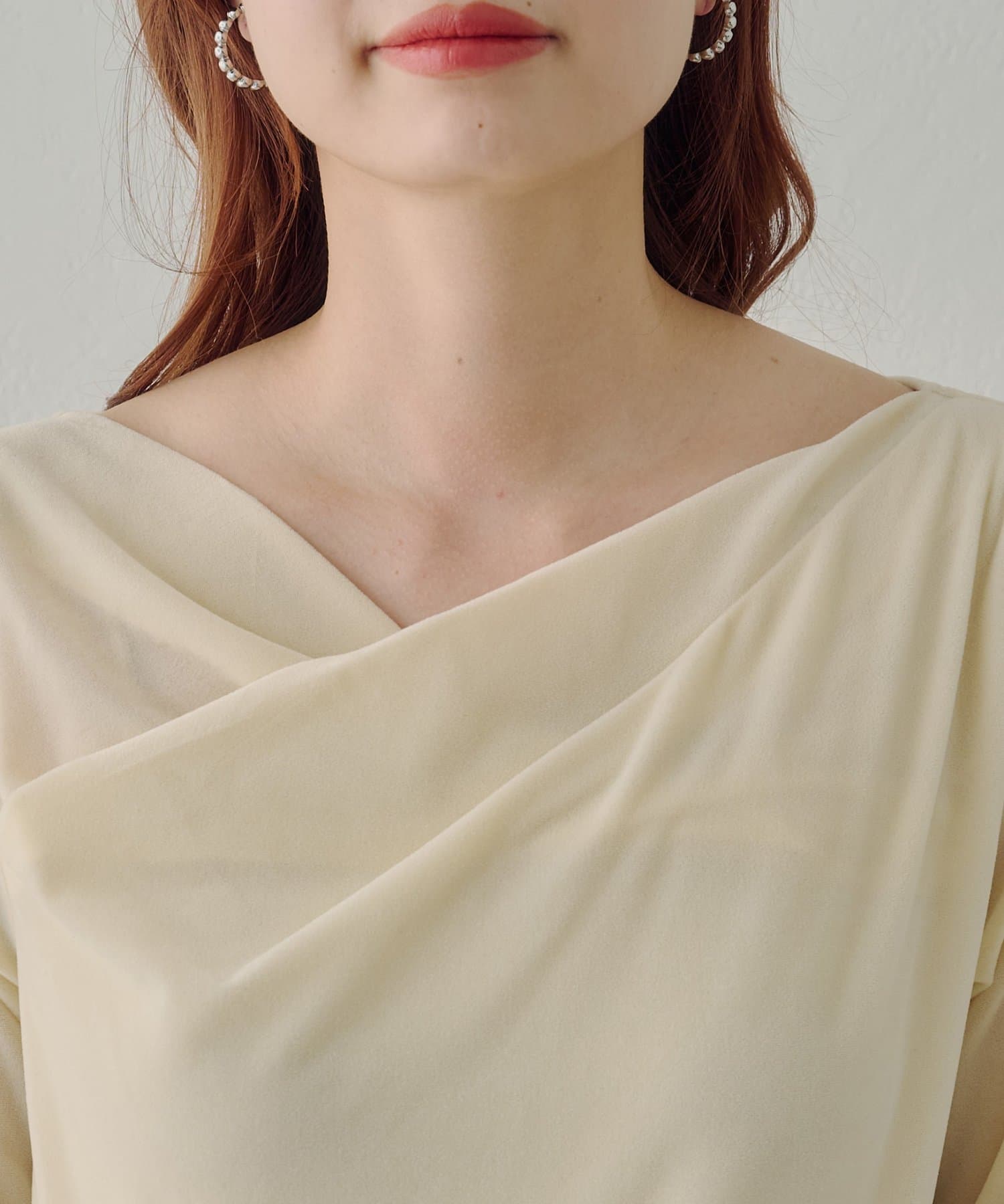 ・デコルテを美しく見せるアシンメトリーなドレープネック