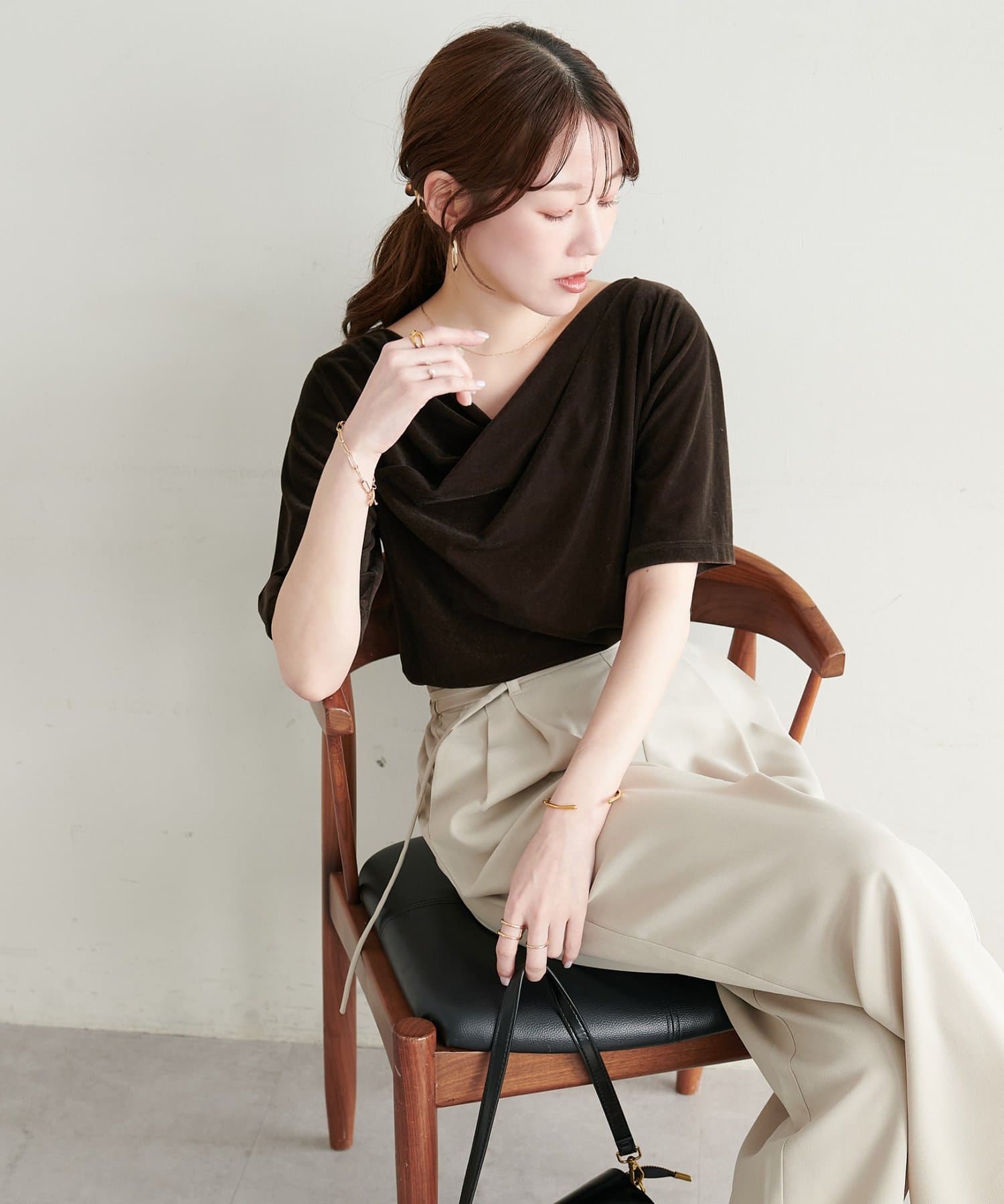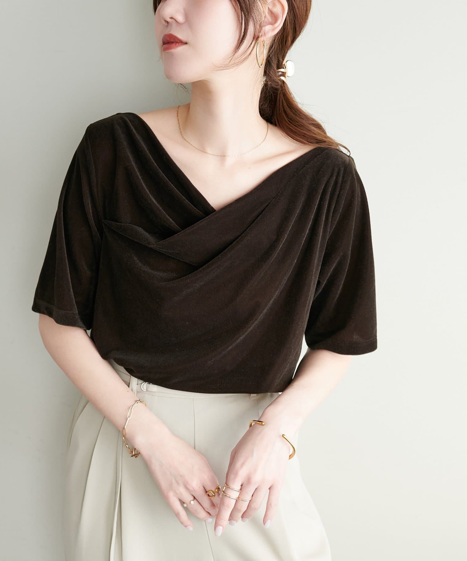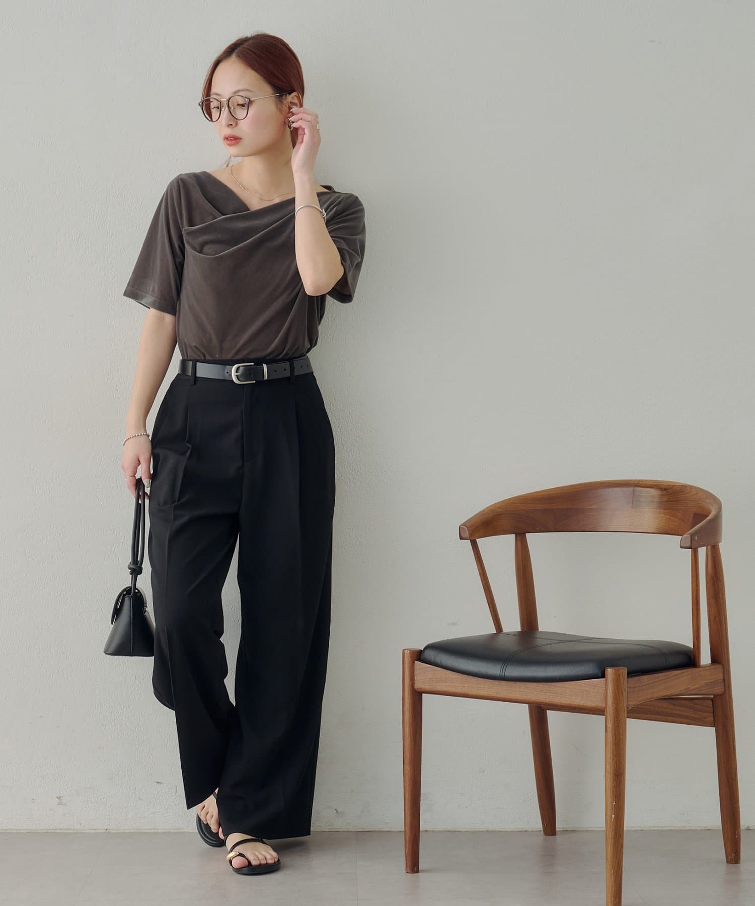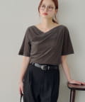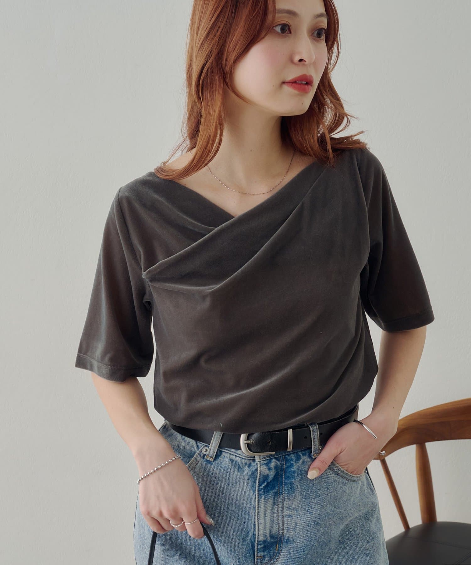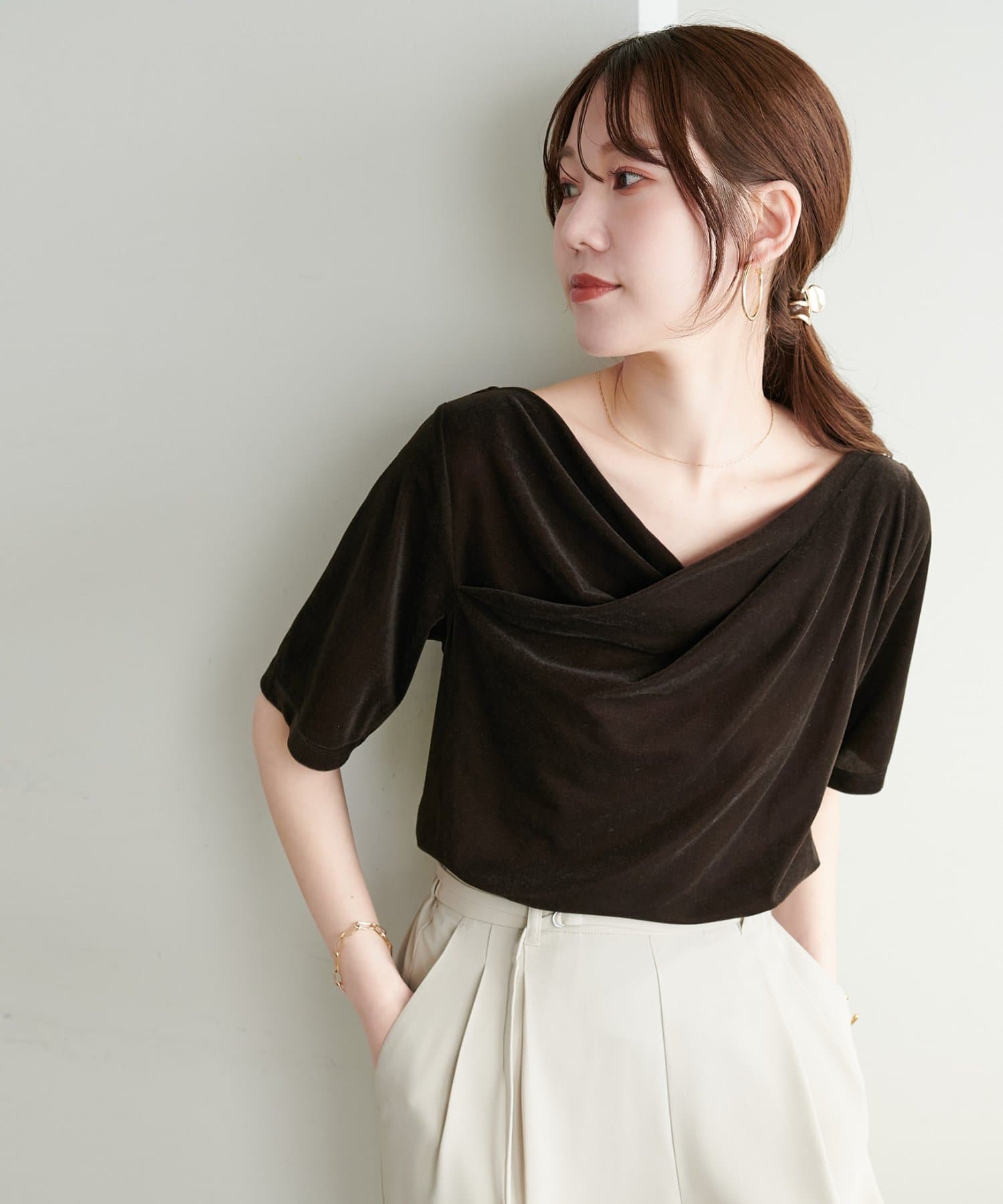 ・デコルテを美しく見せるアシンメトリーなドレープネック