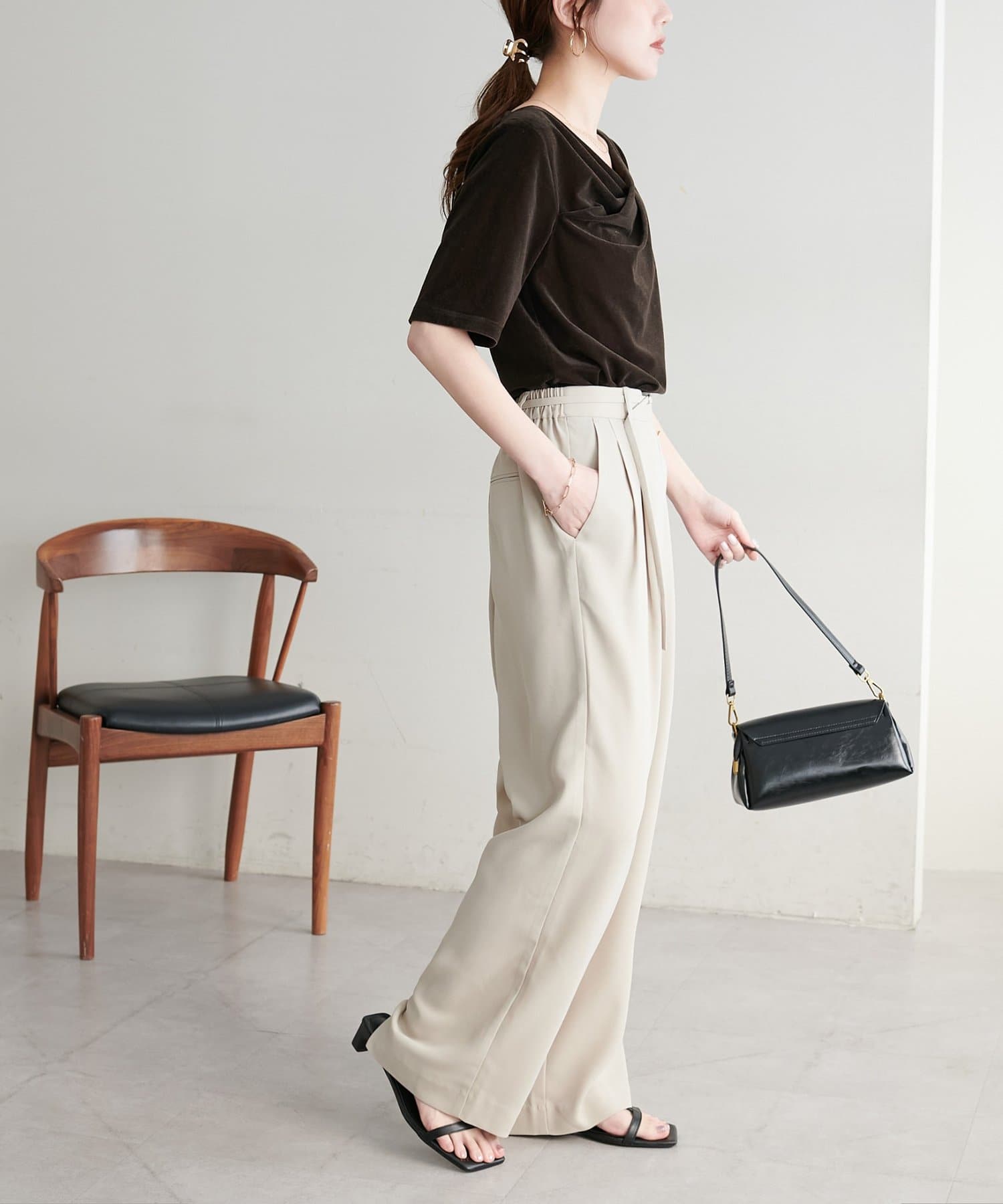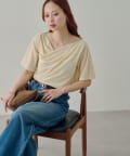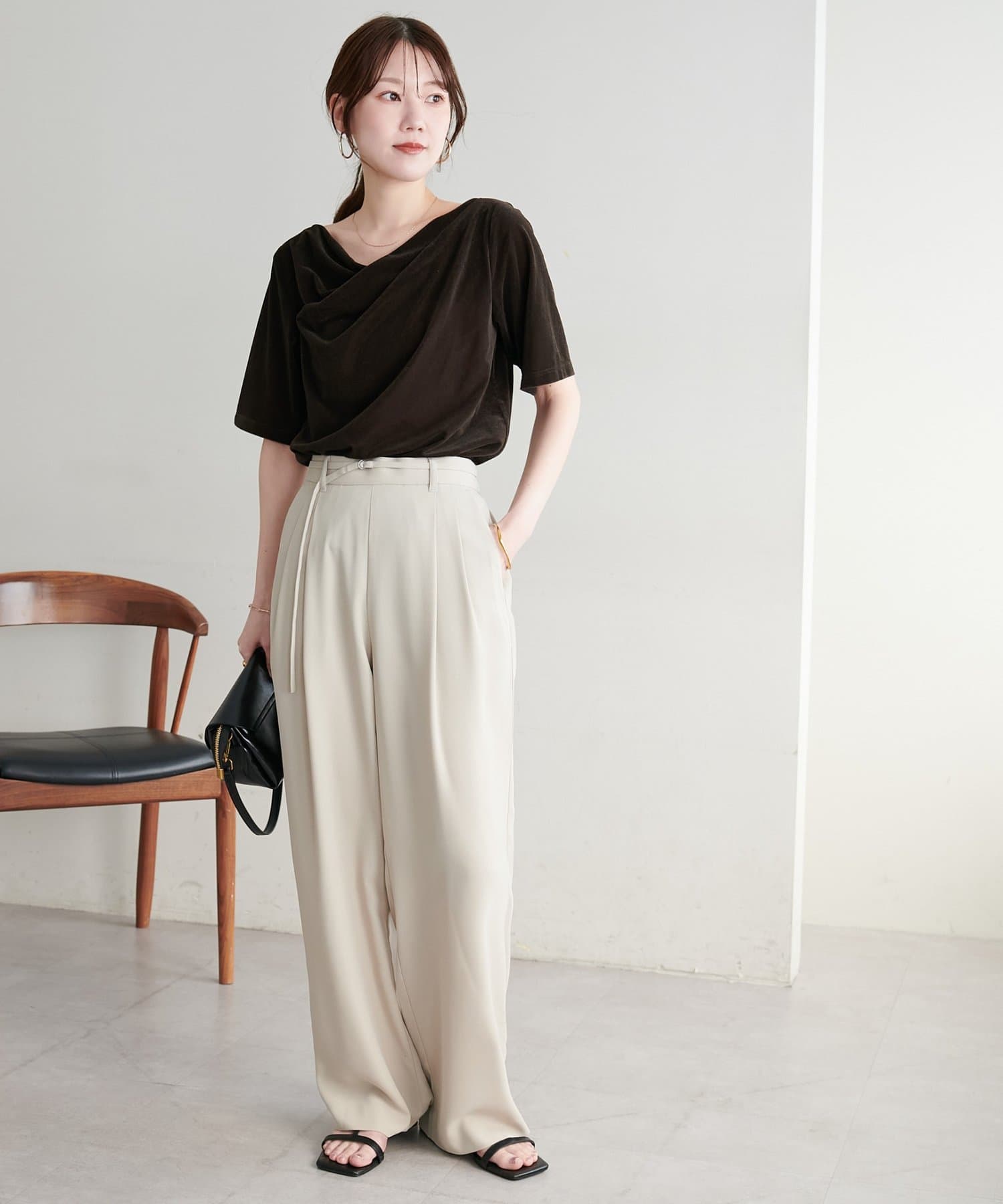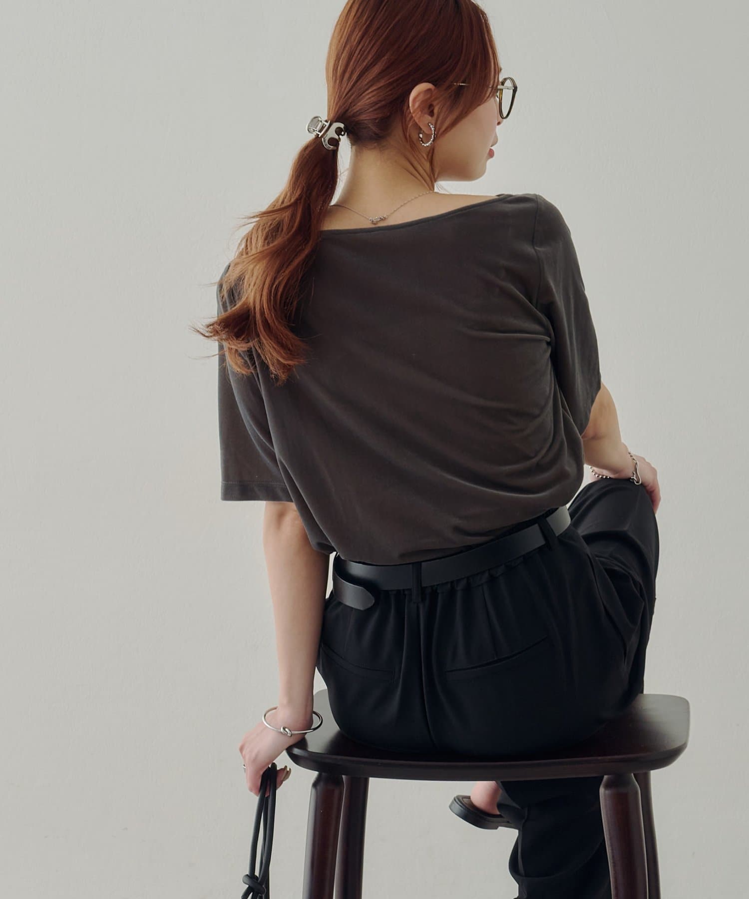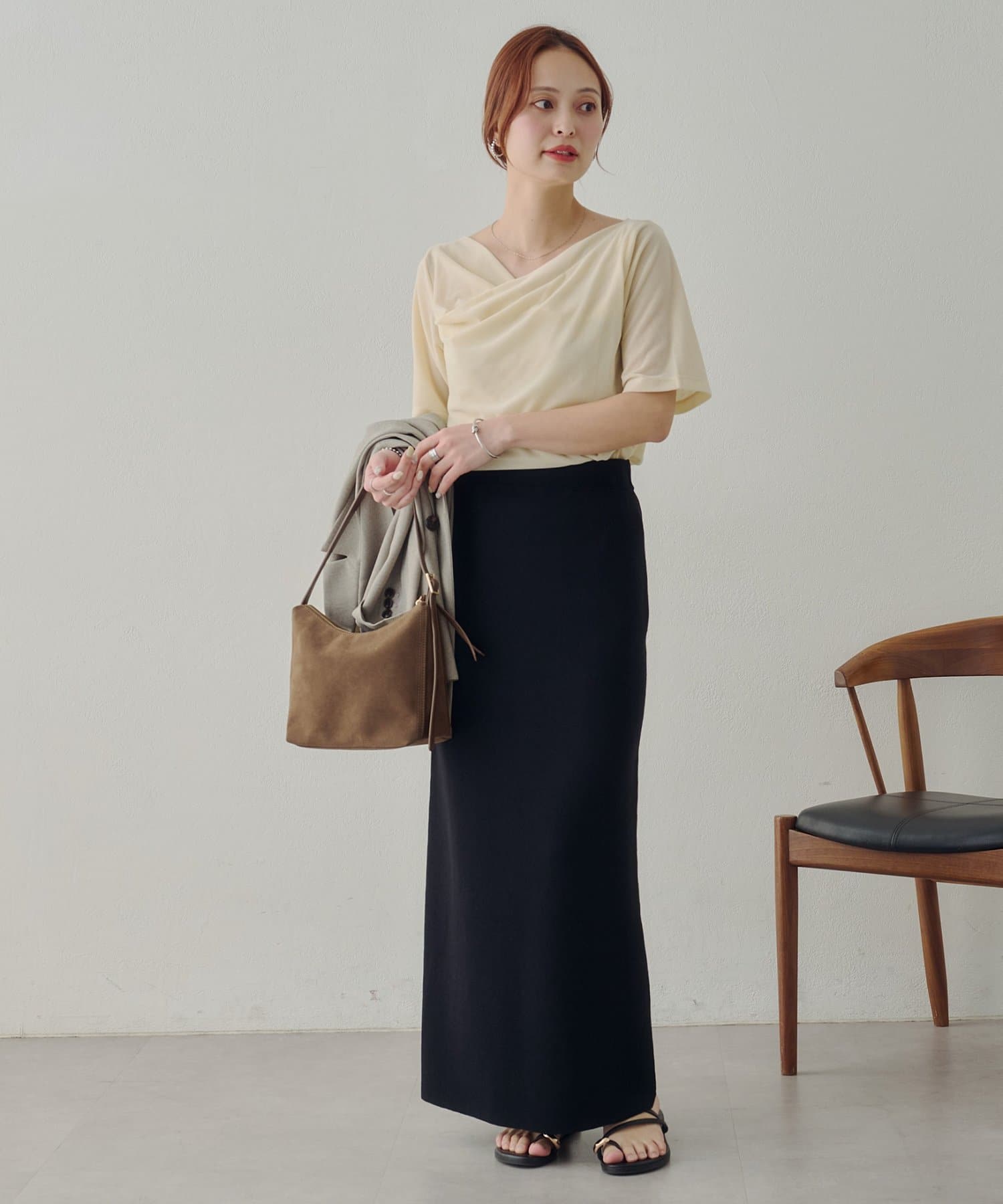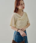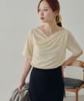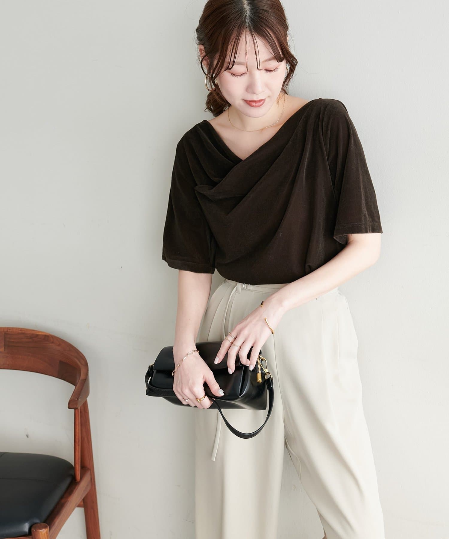 ・デコルテを美しく見せるアシンメトリーなドレープネック