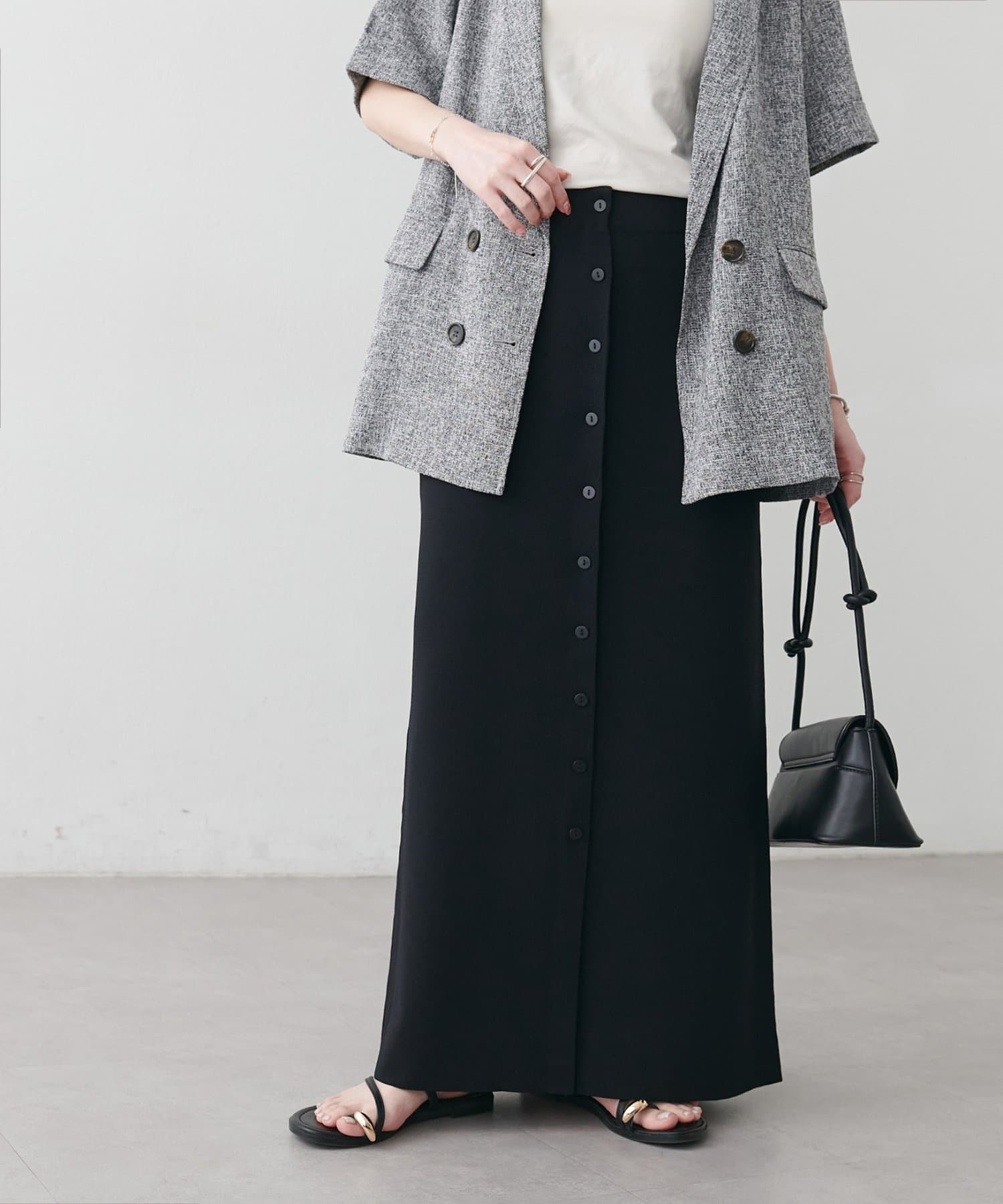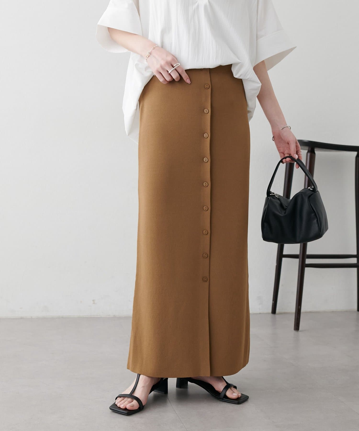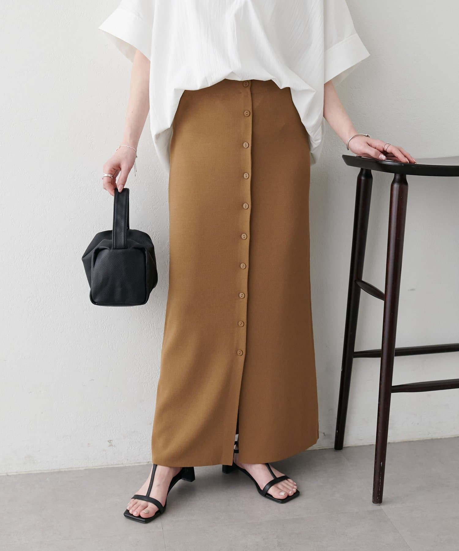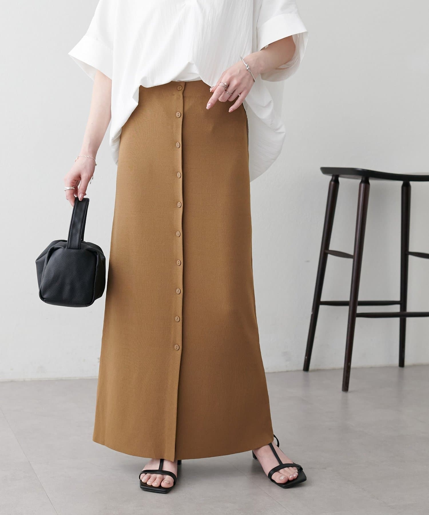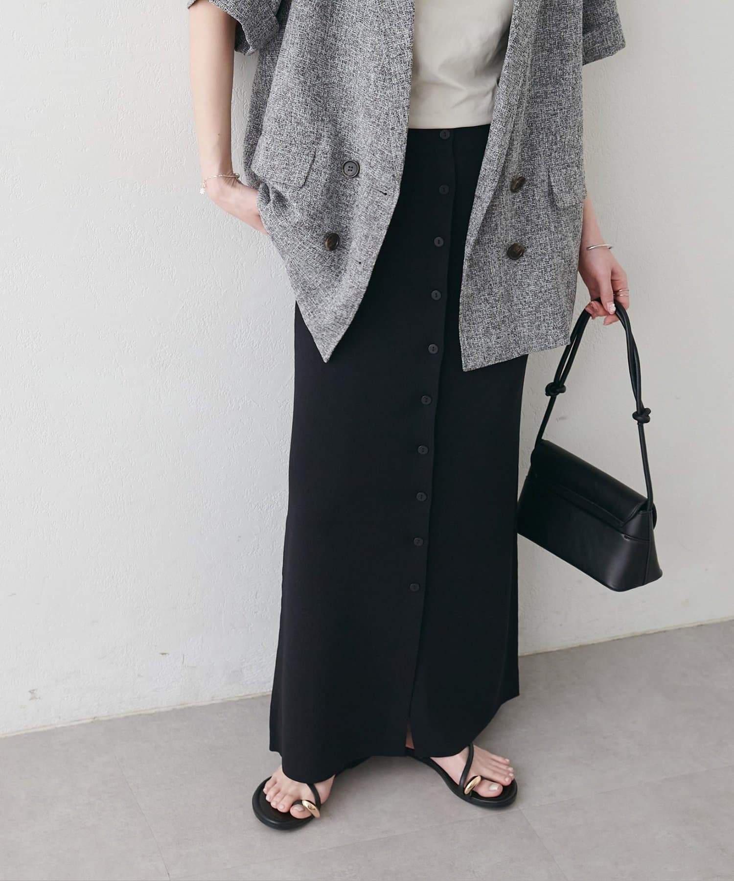 【Noka】接触冷感前ボタンニットナロースカート