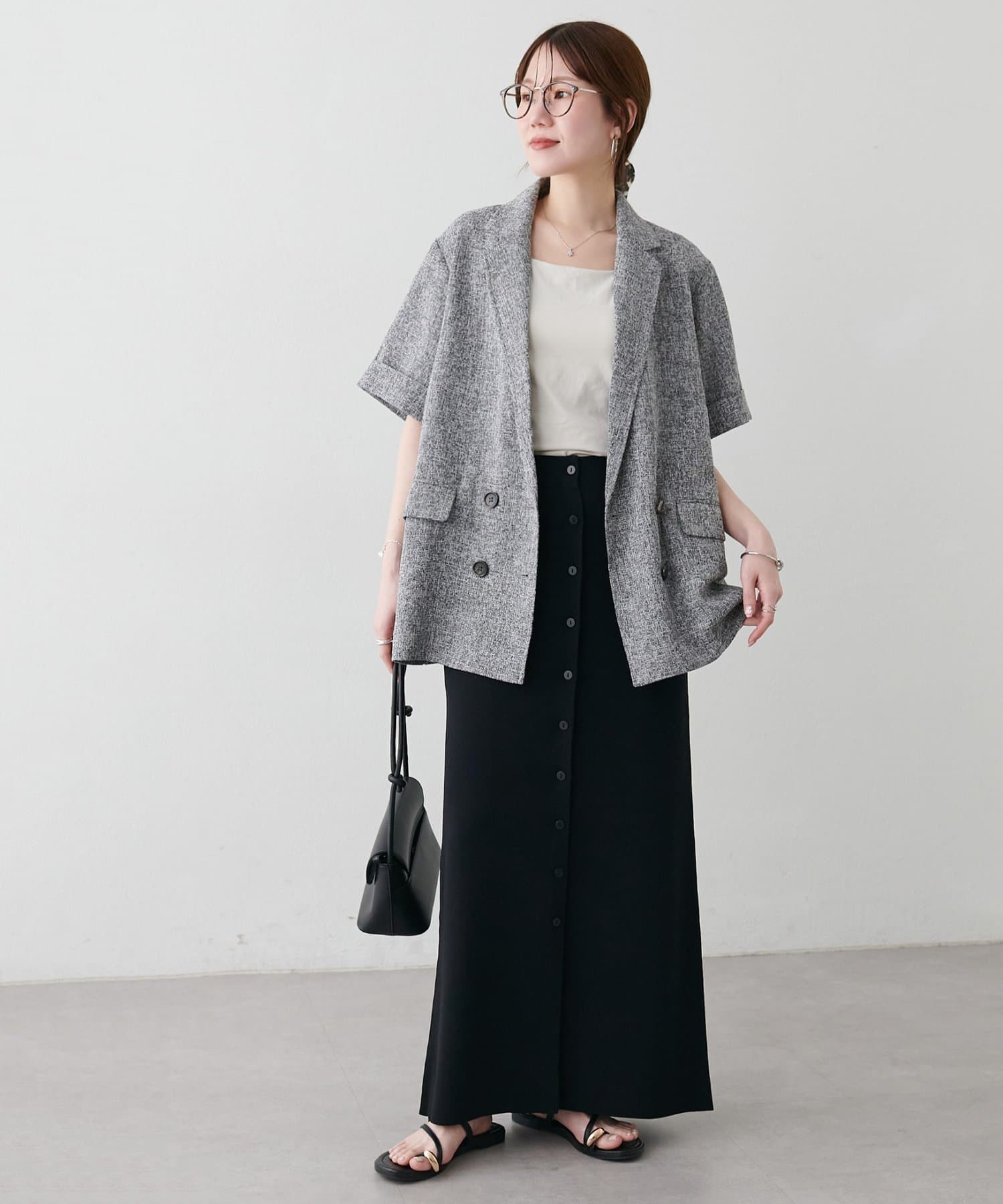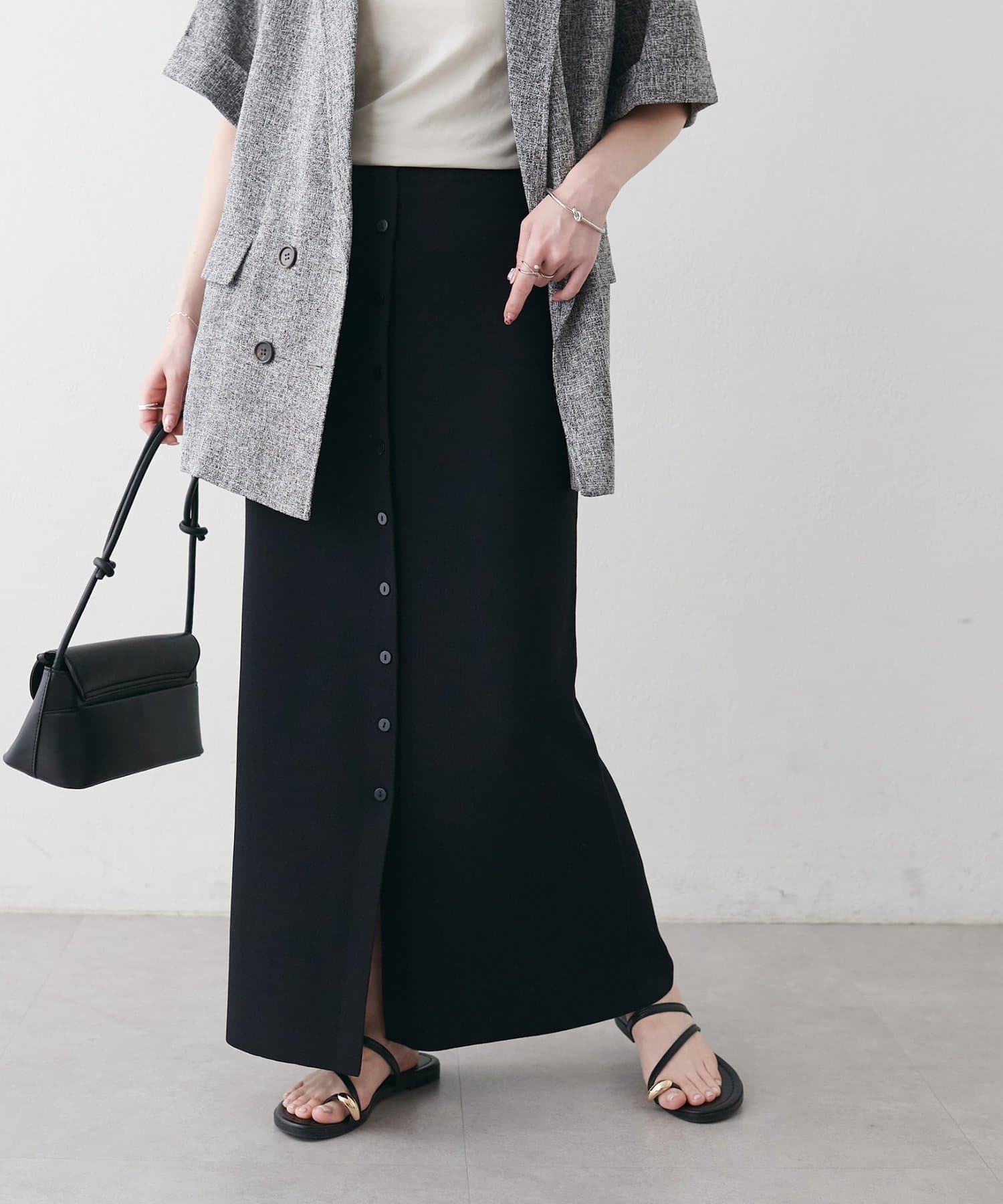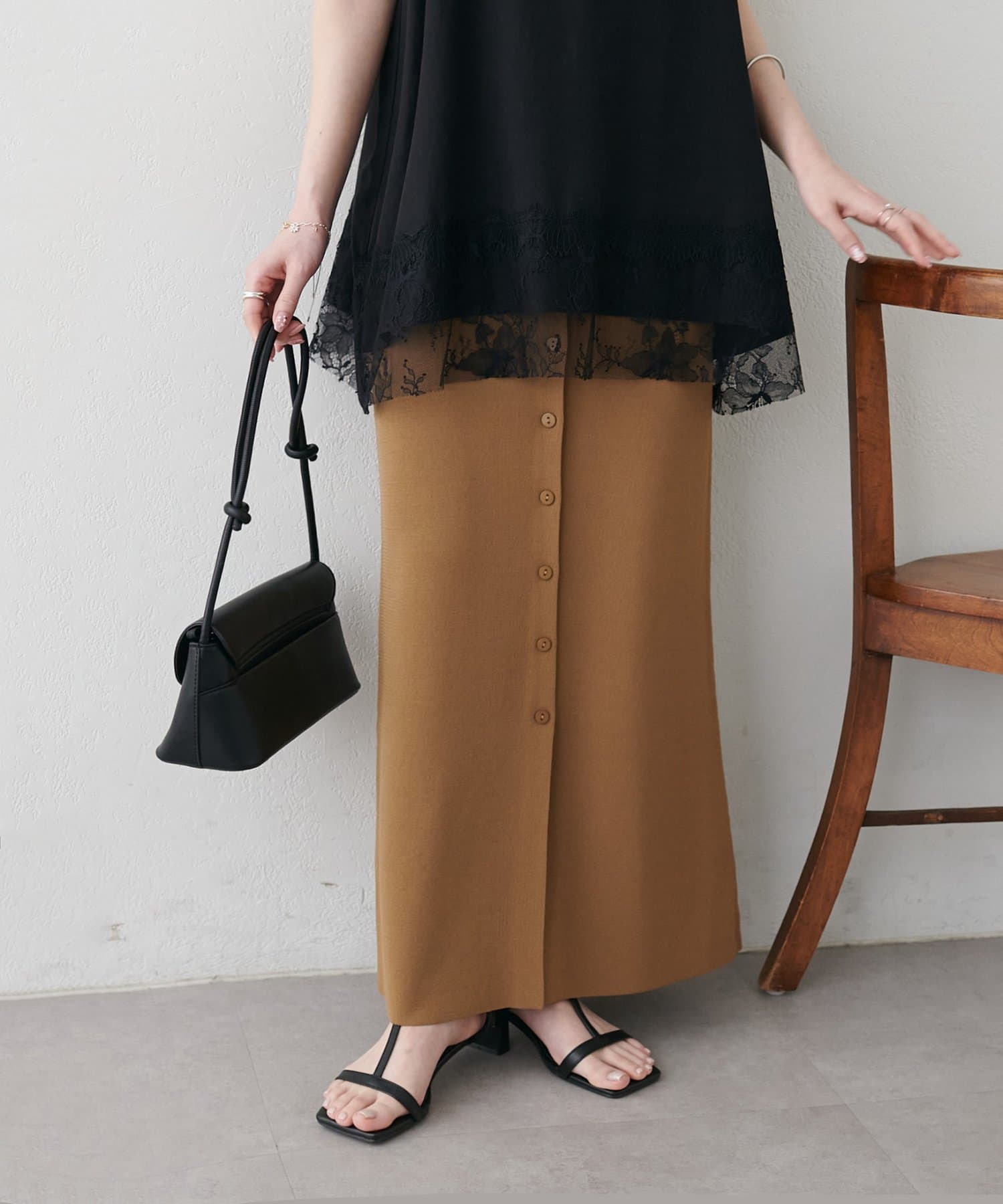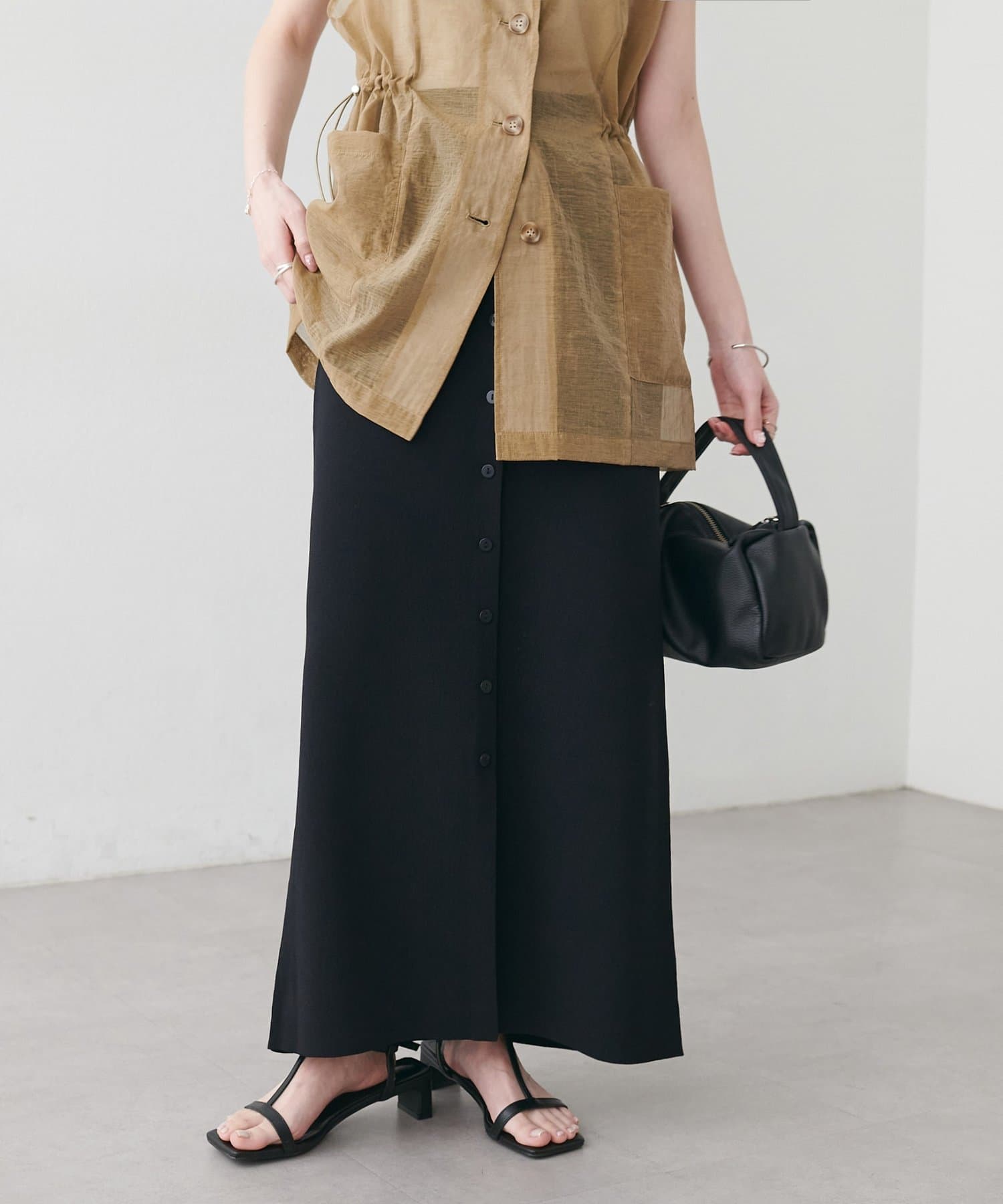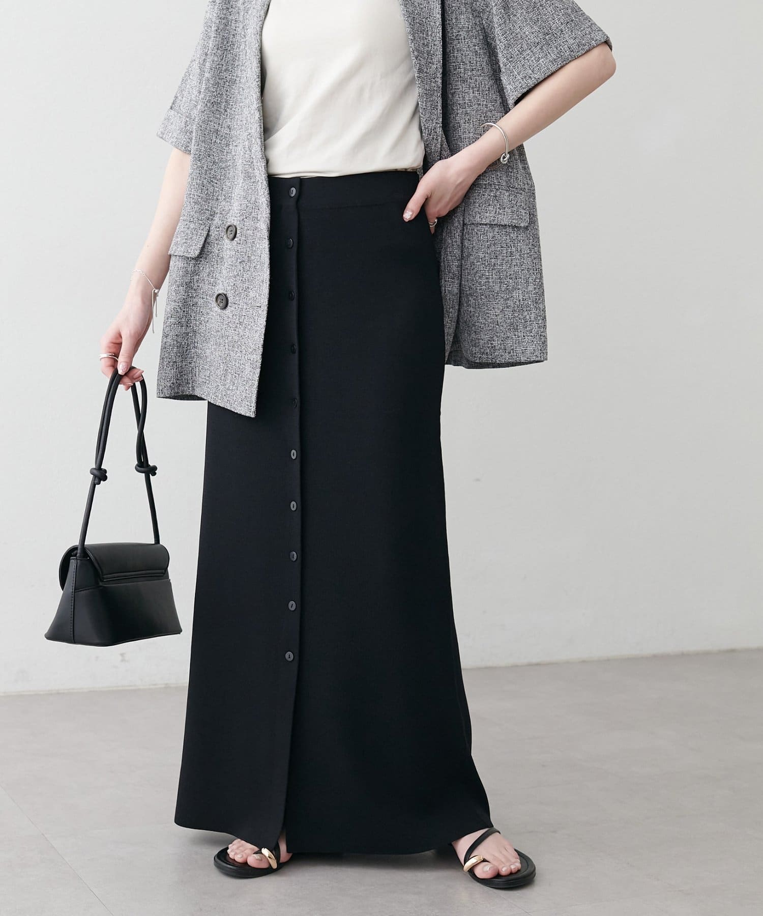 【Noka】接触冷感前ボタンニットナロースカート