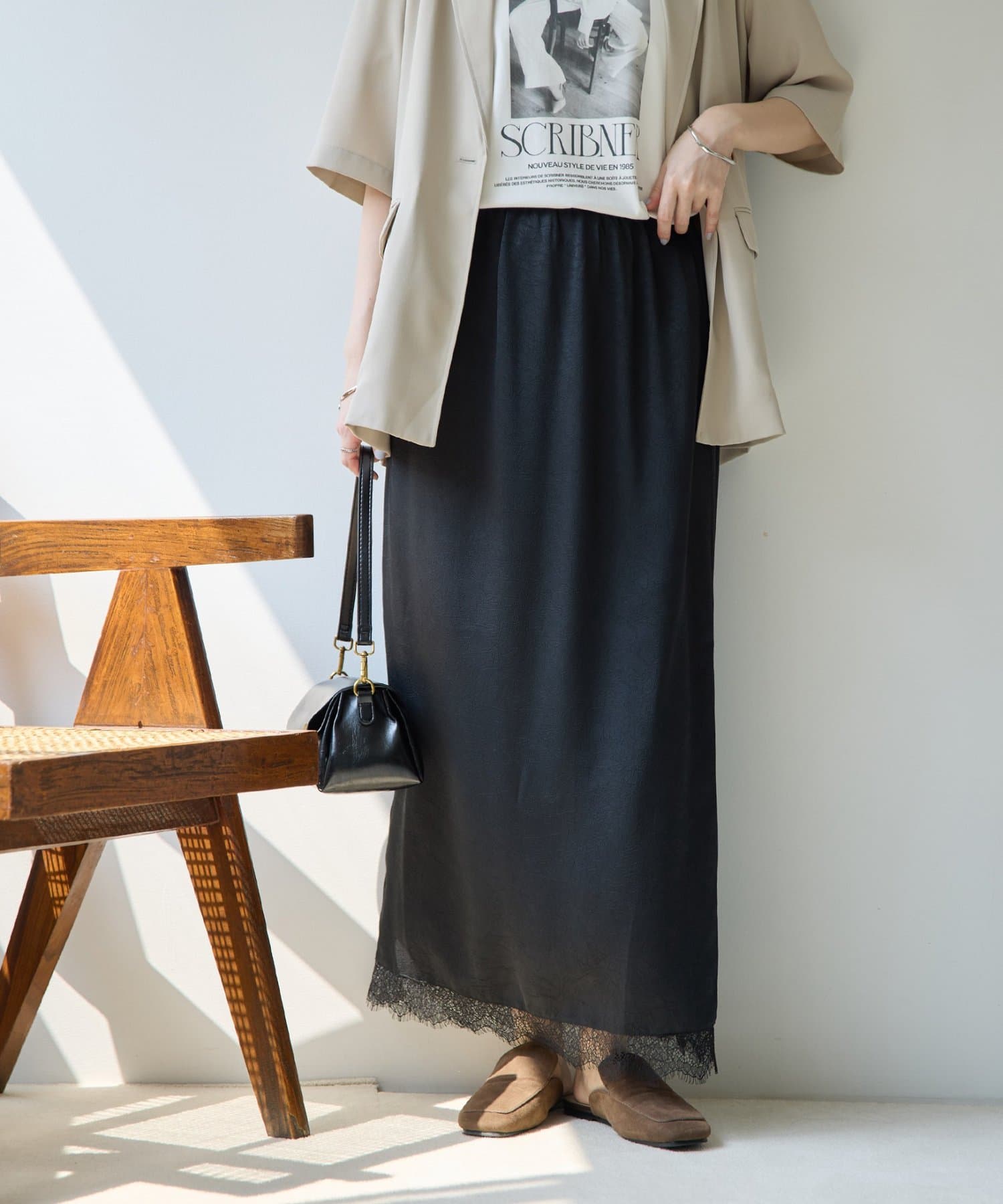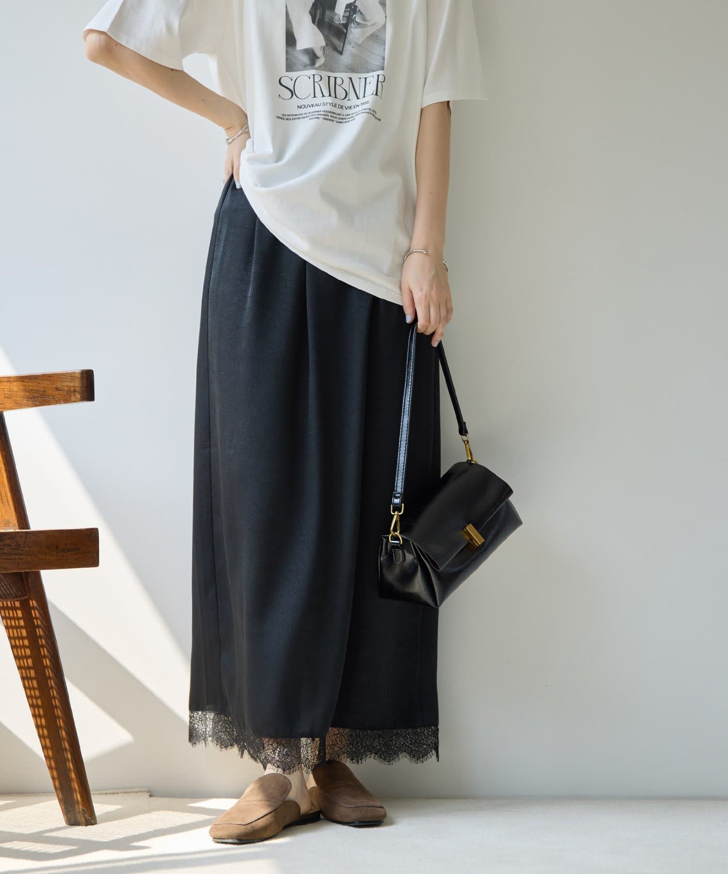 【Noka】裾レースセミフレアスカート