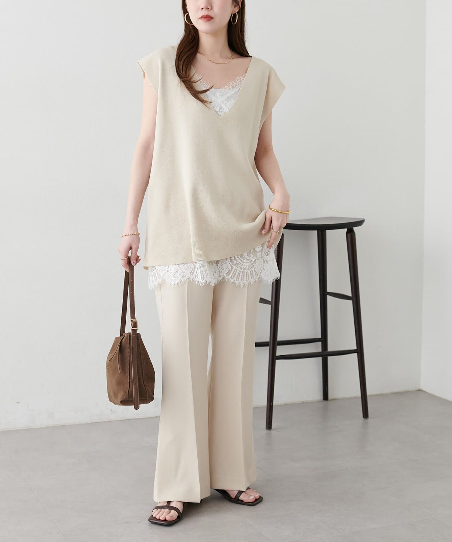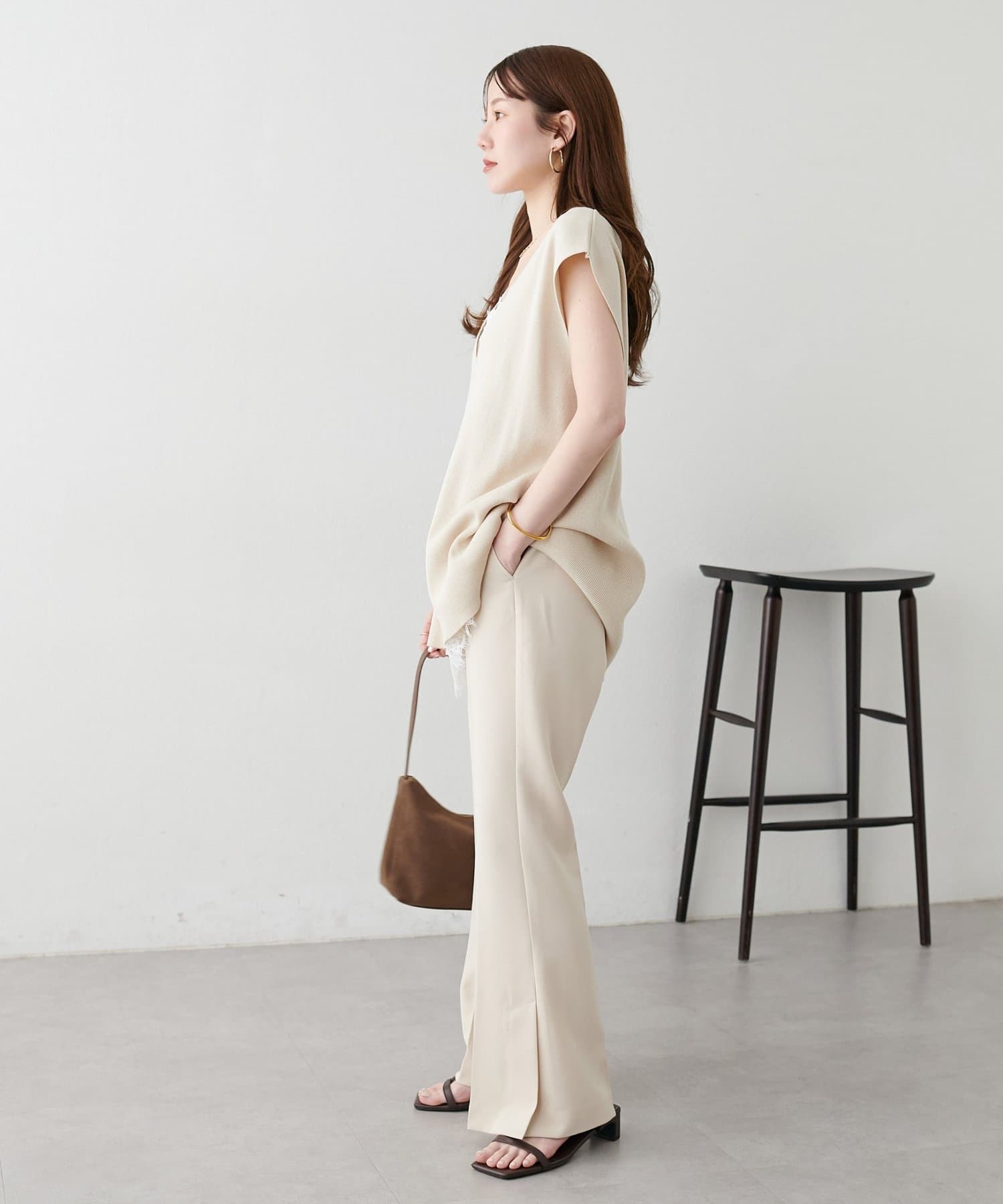 サイドスリットが着こなしに抜け感をプラスする、美シルエットパンツ