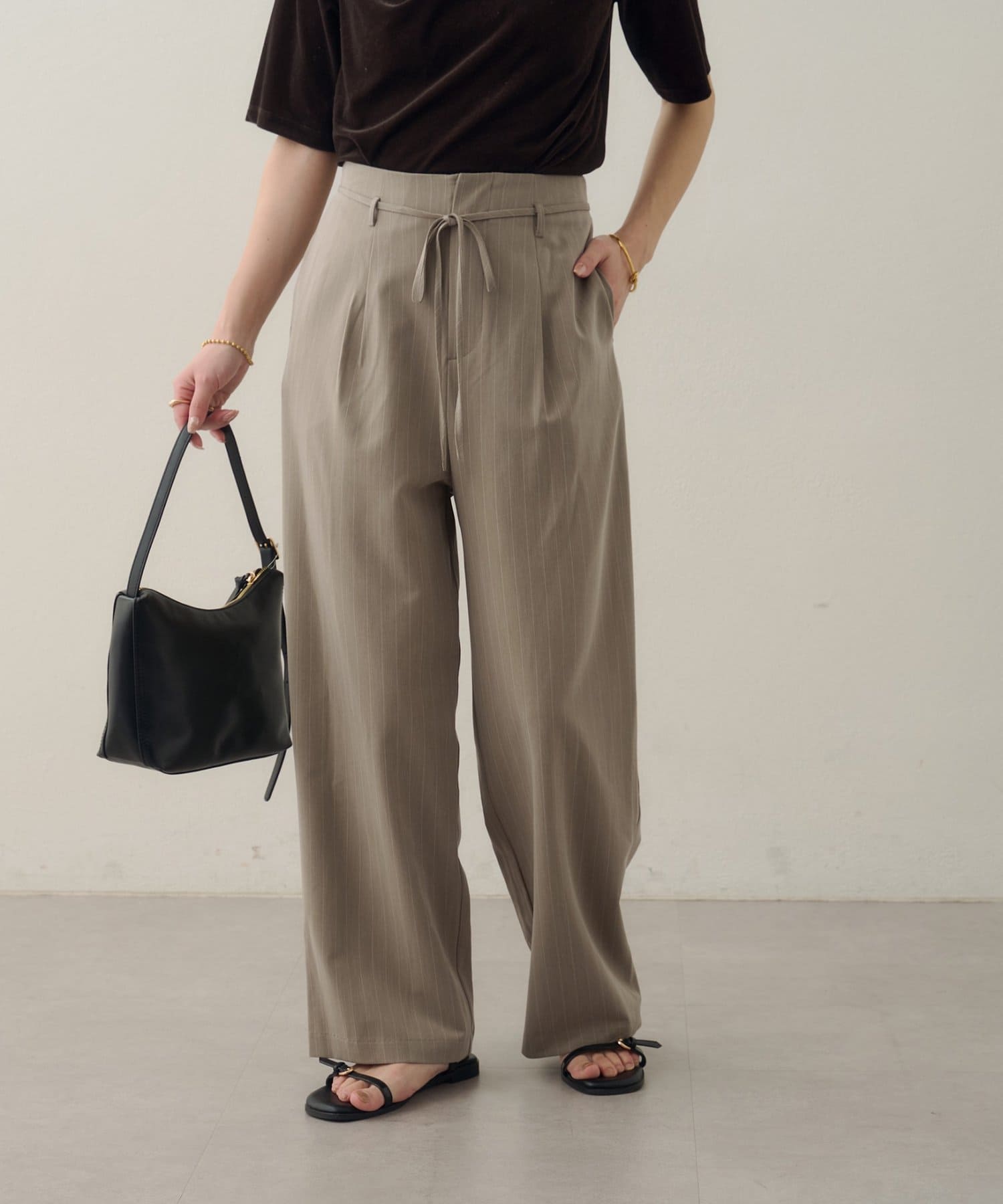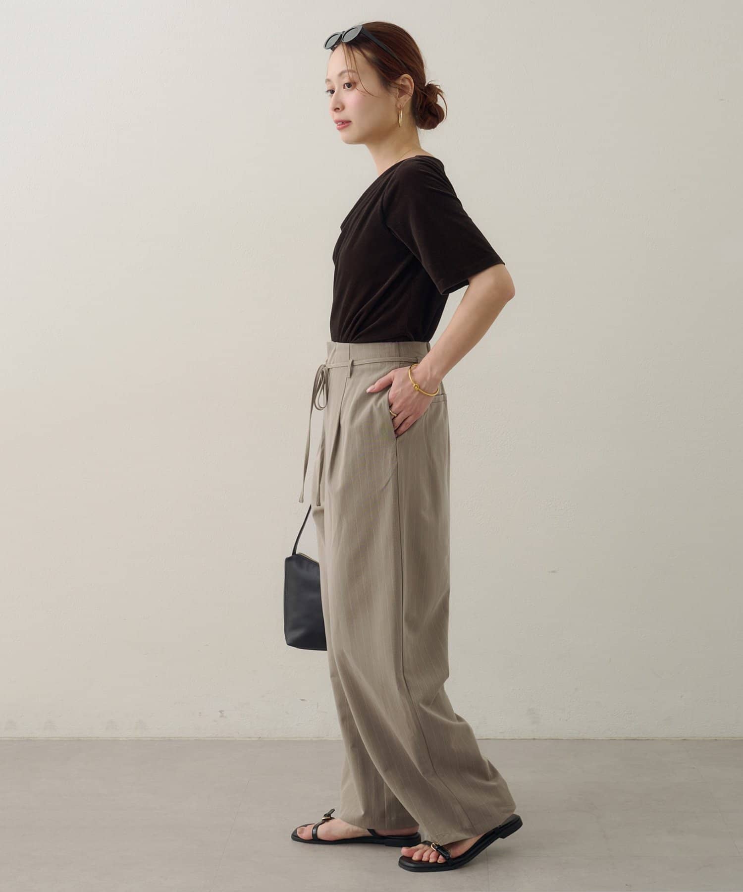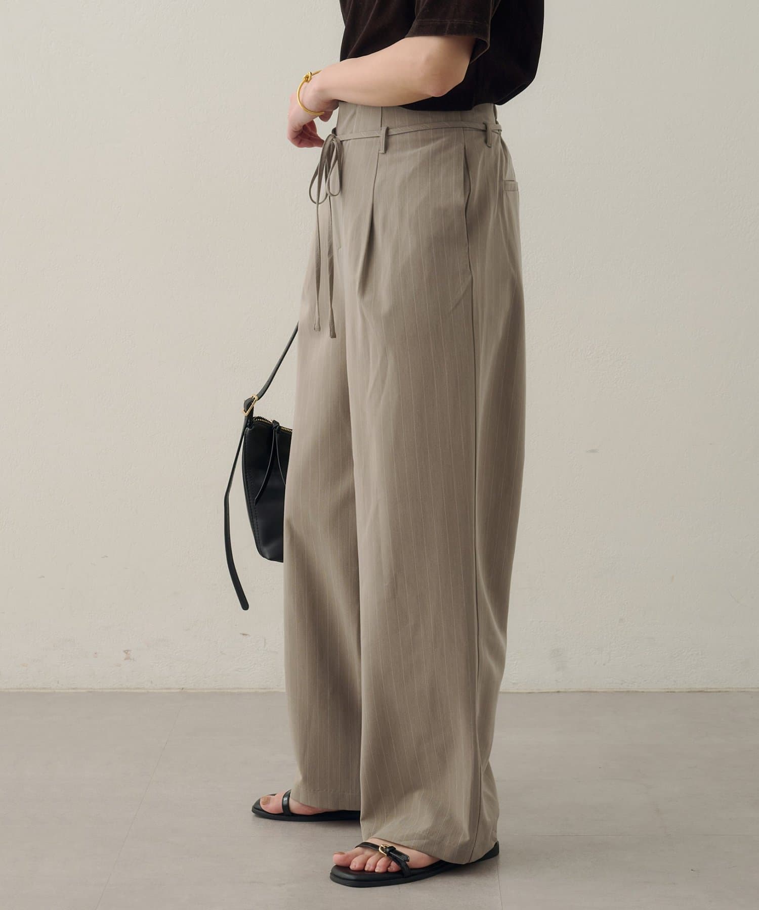【Noka】ハイウエストベルト付ワイドパンツ