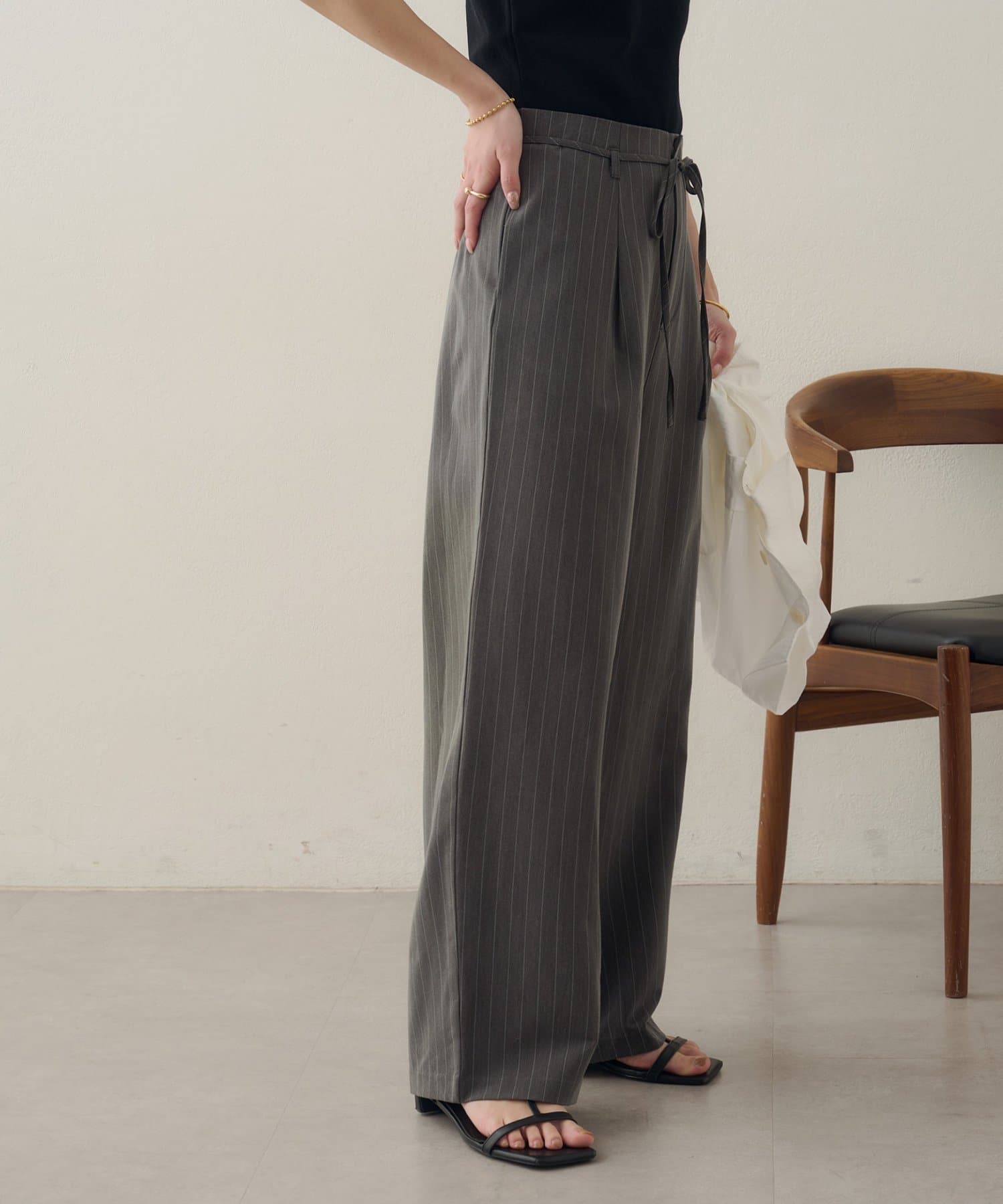 DISCOAT(ディスコート) 【Noka】ハイウエストベルト付ワイドパンツ